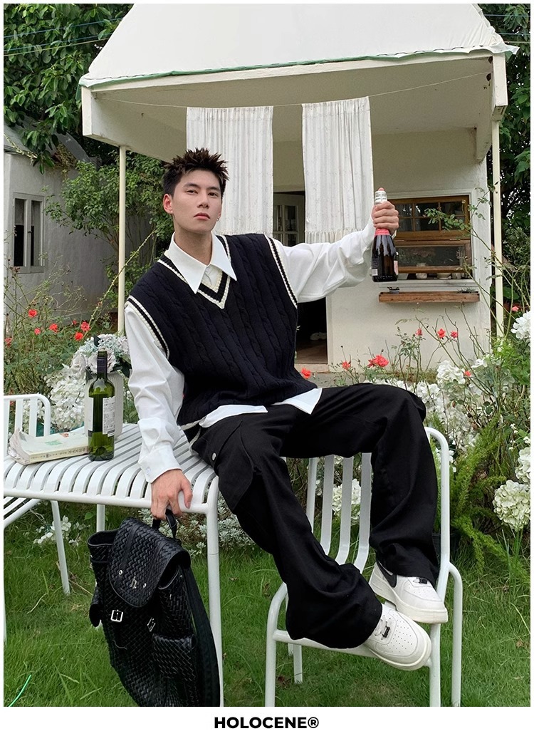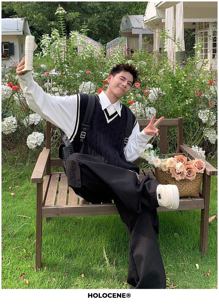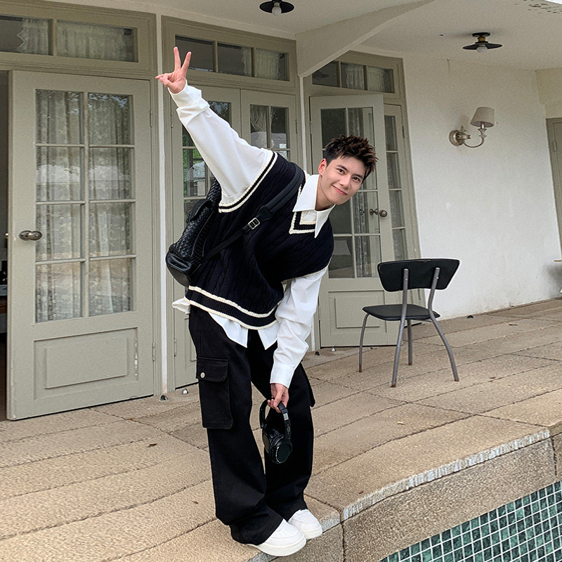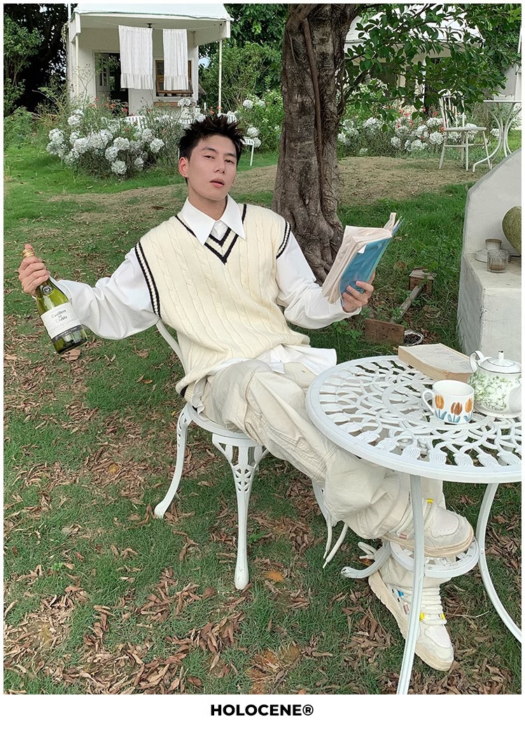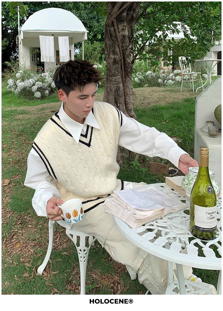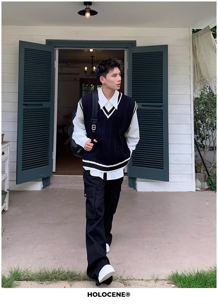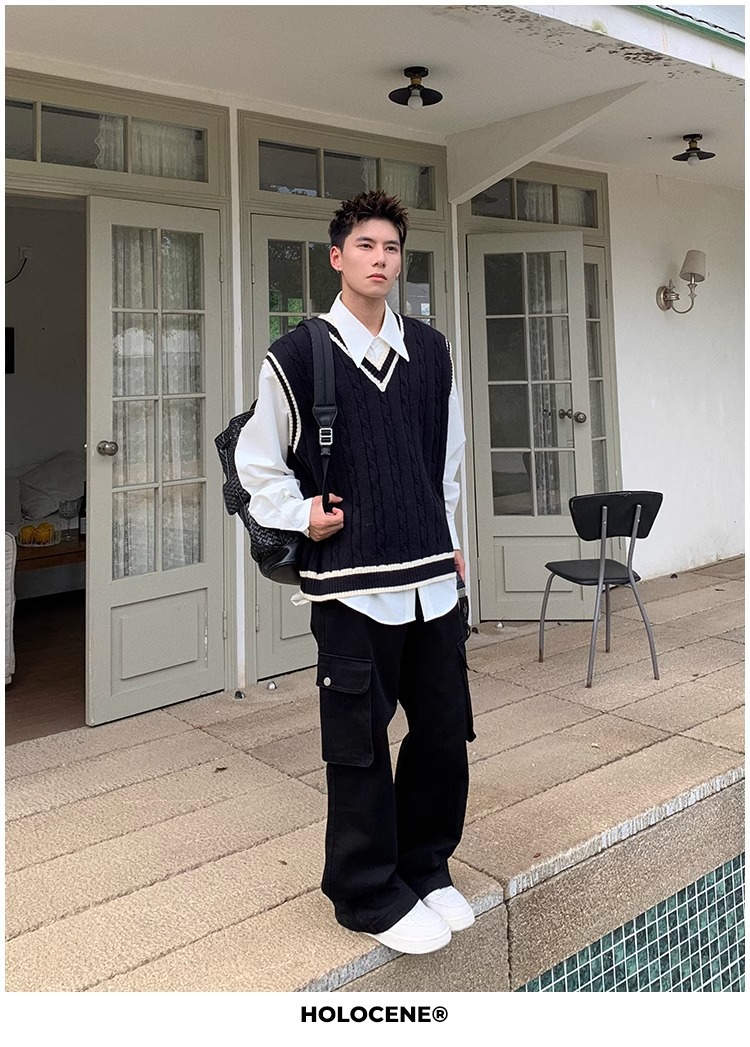 미국 스타일의 트렌디 한 브랜드 레트로 V 넥 칼리지 스타일 스웨터 조끼 가을과 겨울 새로운 트위스트 컬러 비틀 조끼 탑스토어 가기