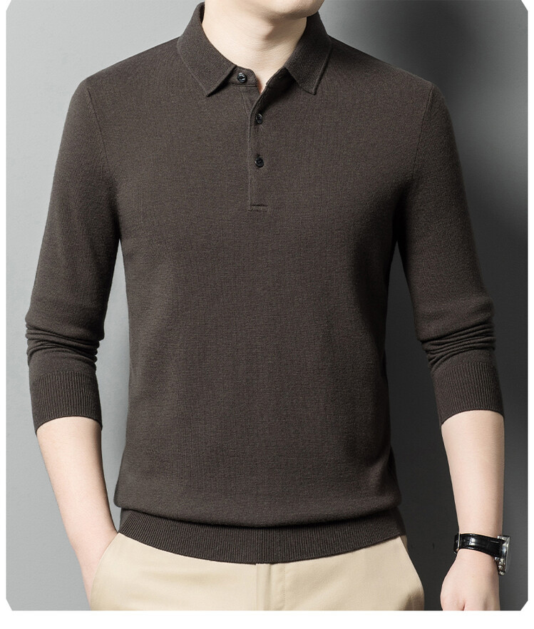 가을과 겨울 새로운 울 스웨터 남자 옷깃 긴 소매 중년 아빠 두꺼운 티셔츠 베이스 니트웨어