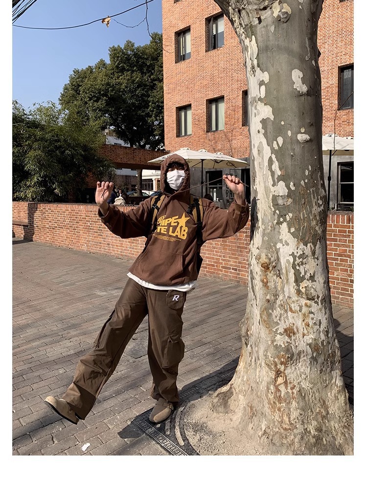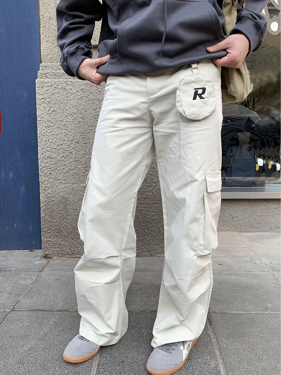 전국 패션 브랜드 레트로 허리 가방 작업복 낙하산 바지 남자 봄 2024 뉴 스트리트 루즈 캐주얼 올 매치 바지