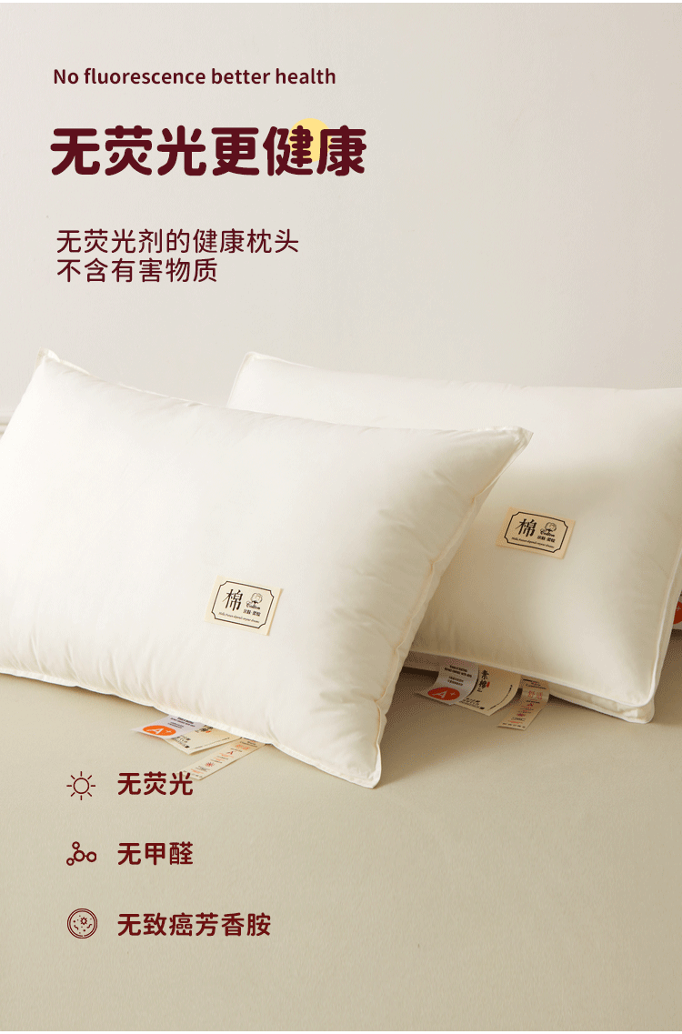 • 단면 [초저베개 한쌍] [A급 면 100% 항균, 진드기 방지] [표백 및 염색되지 않은 콩섬유 베개]