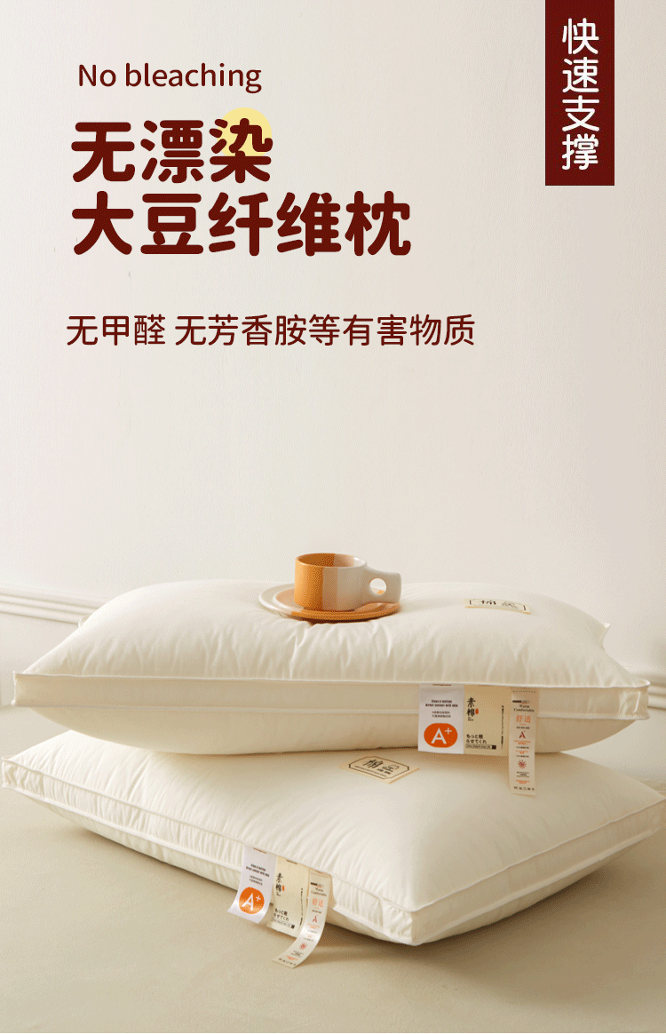 • 단면 [하이베개 1개] [A급 면 100% 항균, 진드기 방지] [표백 및 염색되지 않은 콩섬유 베개]