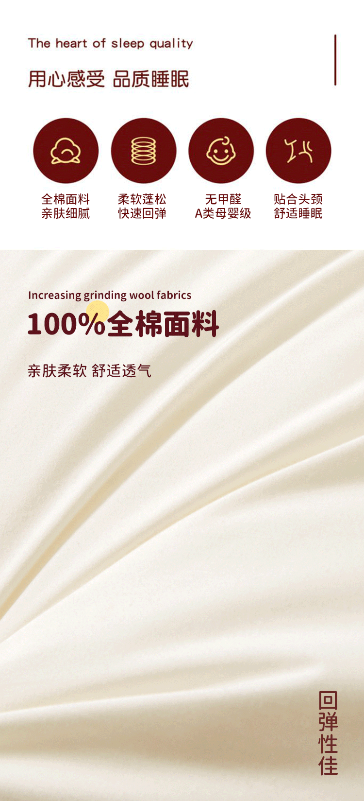 • 단면 [낮은 베개 1개] [A급 면 100% 항균, 진드기 방지] [표백 및 염색되지 않은 콩섬유 베개]