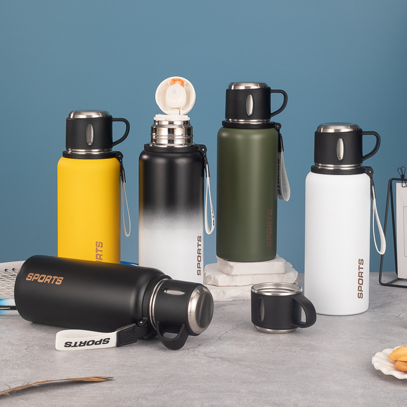 316 스테인리스 대용량 야외 스포츠 물병 편리한 스트랩 휴대용 차컵 진공 등산병 도매스토어 가기