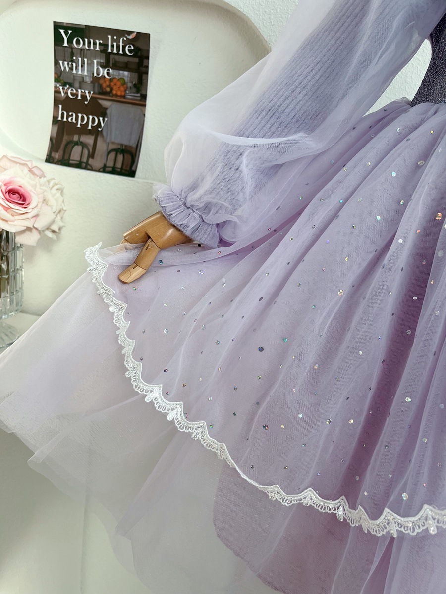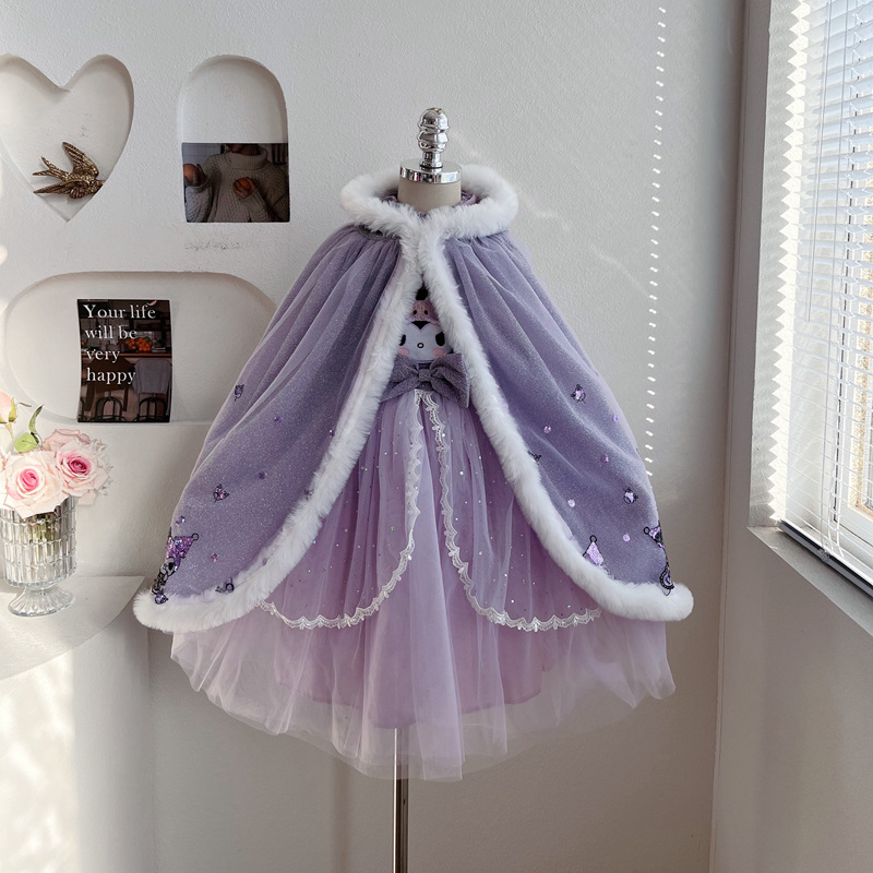 2025 가을 겨울 여아 쿠로미 니트 스웨터와 메쉬 공주 드레스 아기 생일 망토 퍼프 스커트스토어 가기