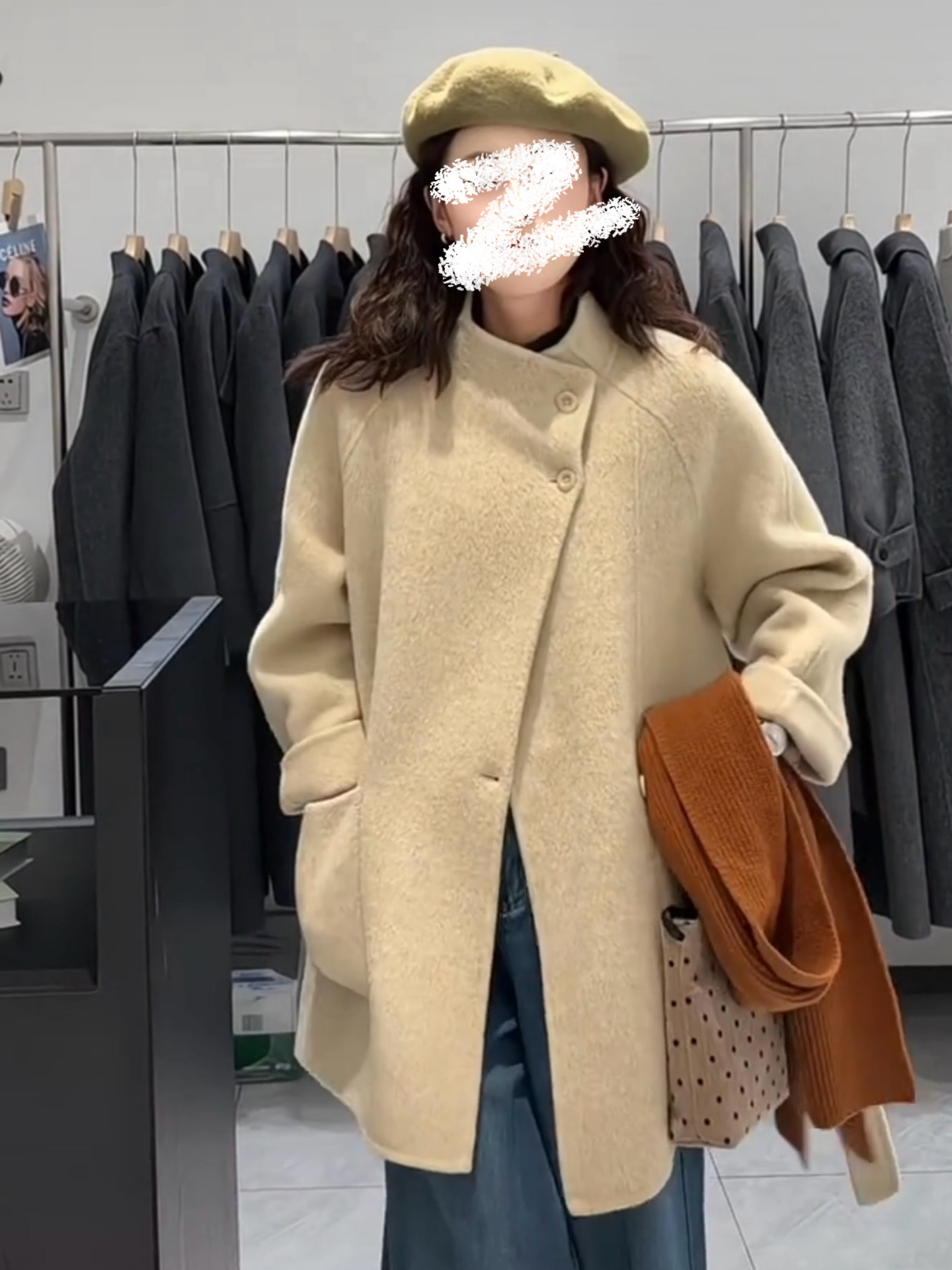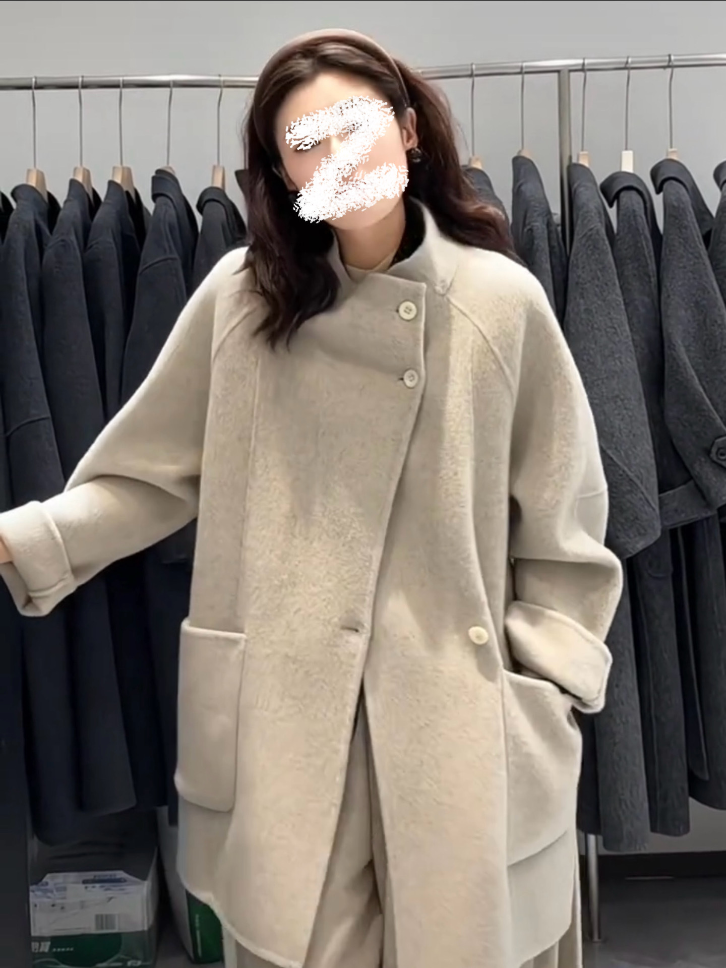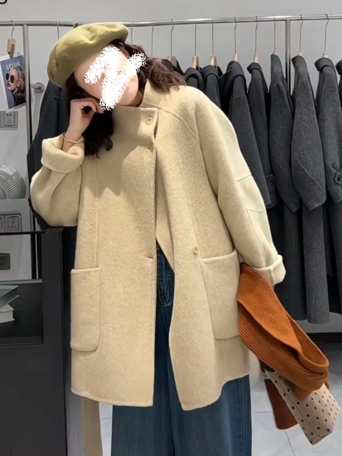2025 새로운 양면 모직 가을 겨울 신상 한국 스타일 스탠드 칼라 중간 길이 울 여성 코트 패션 재킷스토어 가기