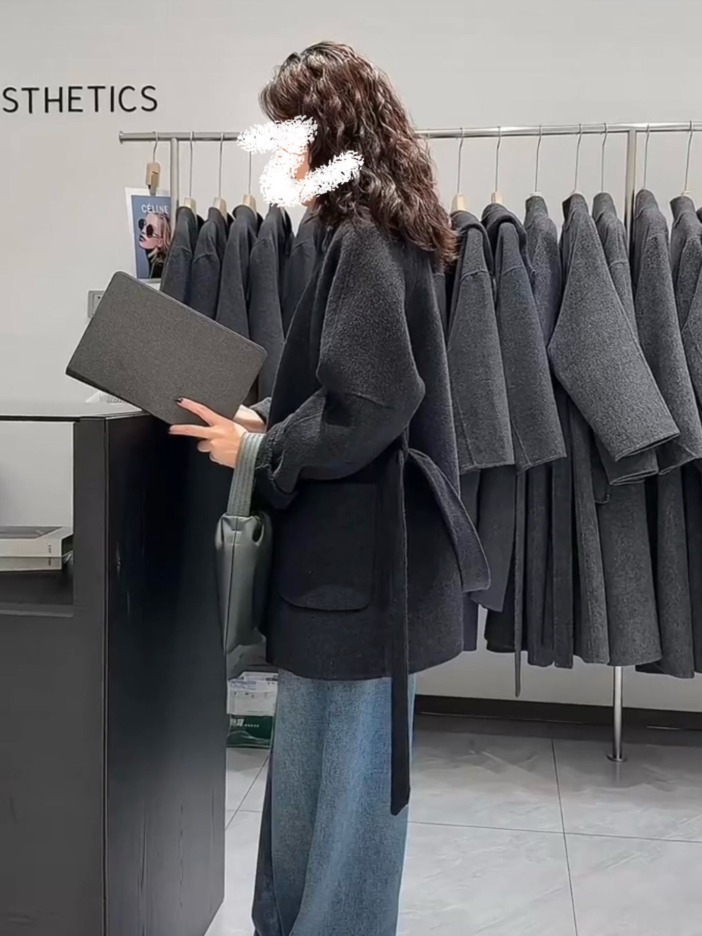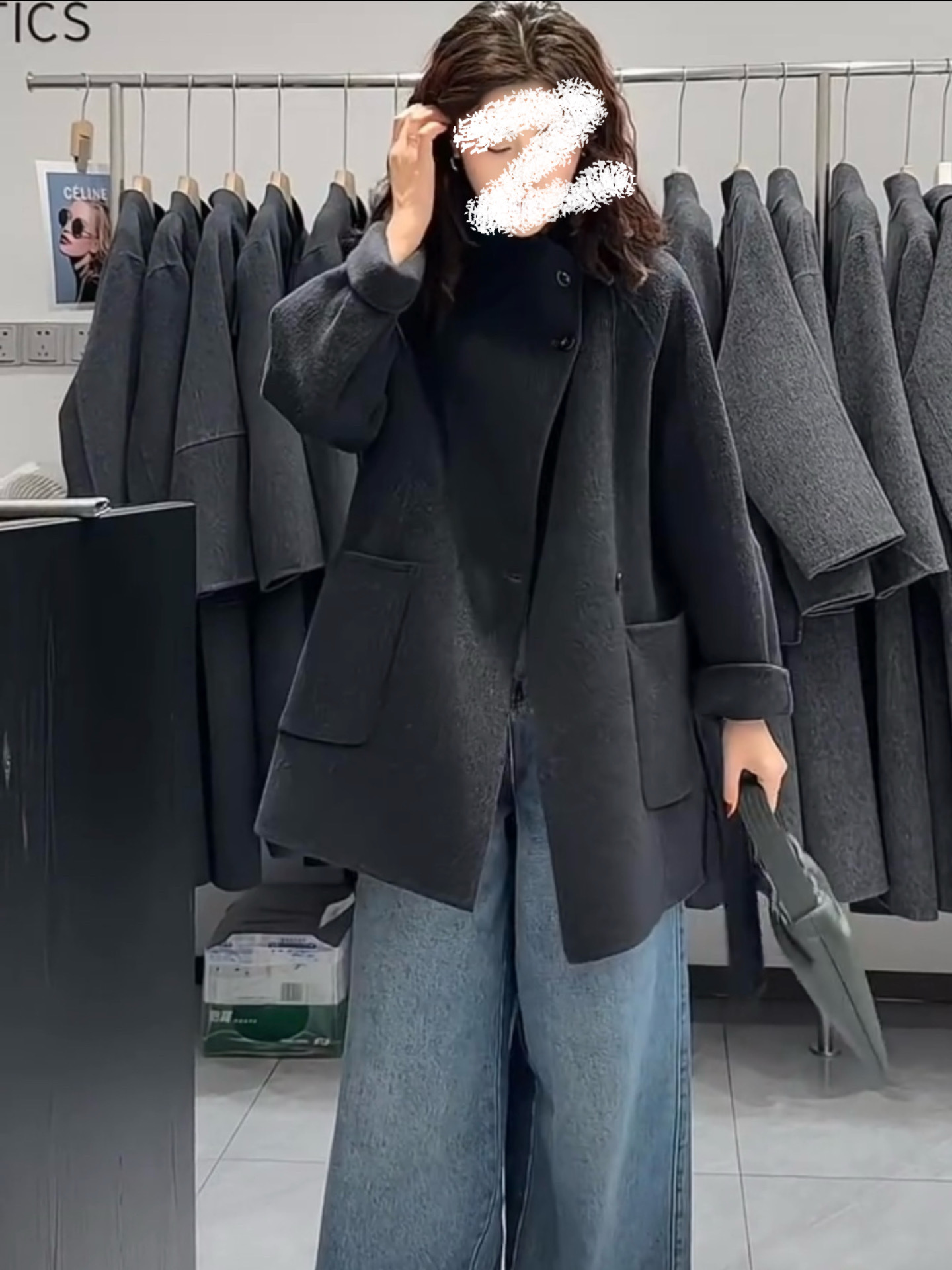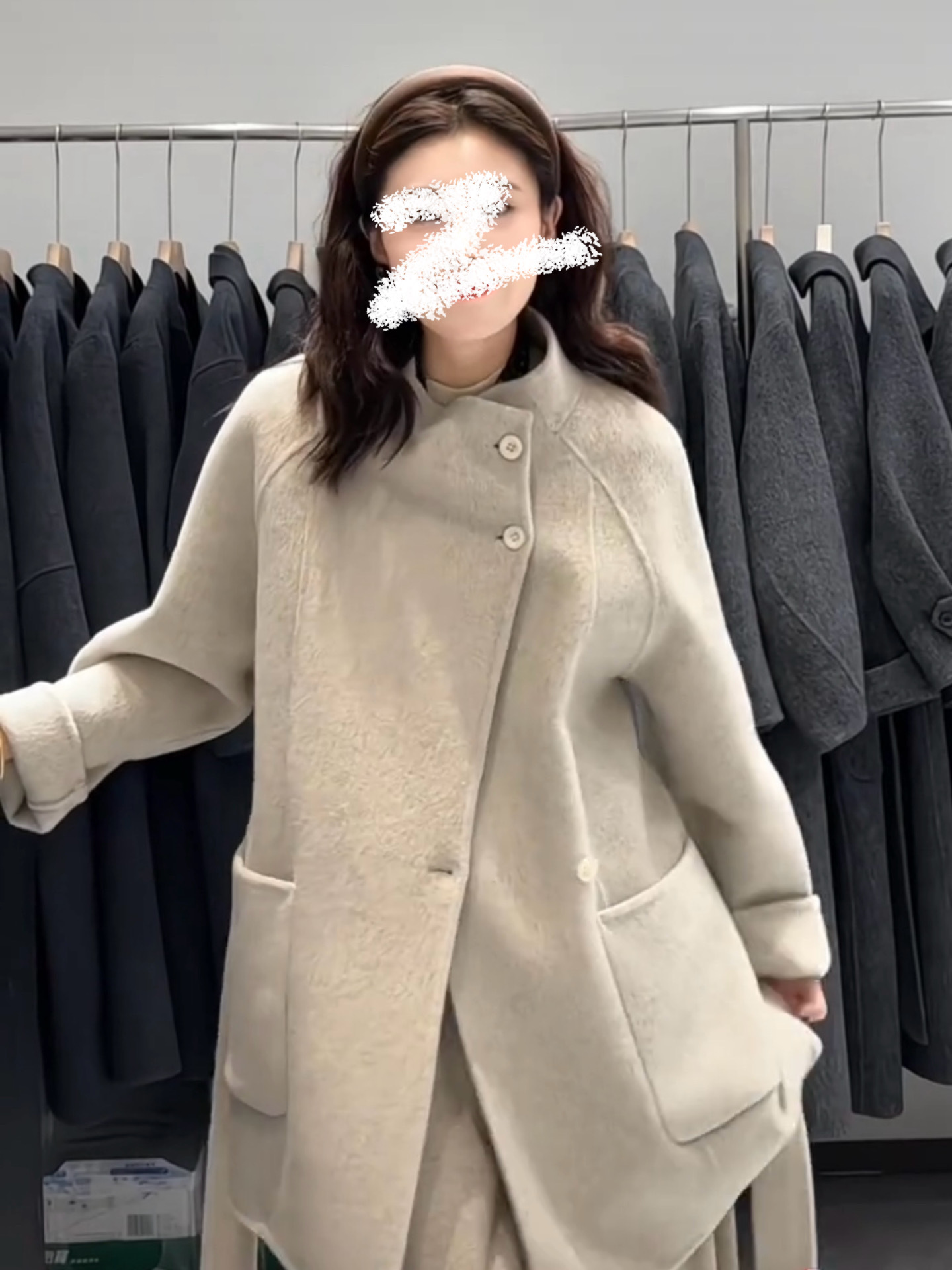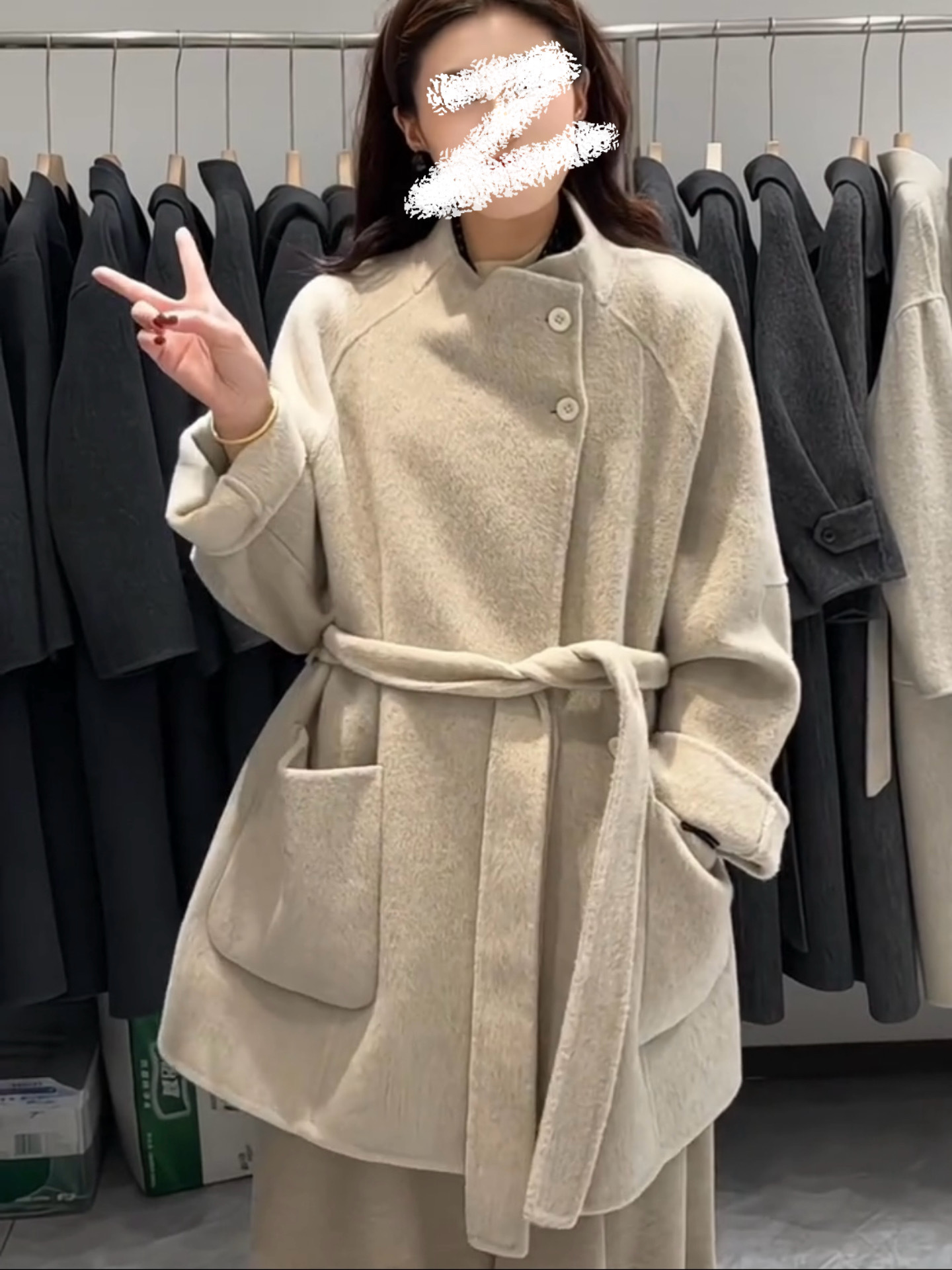 2025 새로운 양면 모직 가을 겨울 신상 한국 스타일 스탠드 칼라 중간 길이 울 여성 코트 패션 재킷스토어 가기