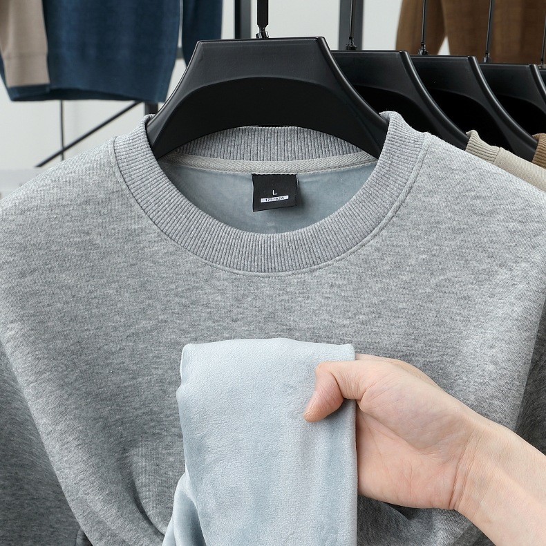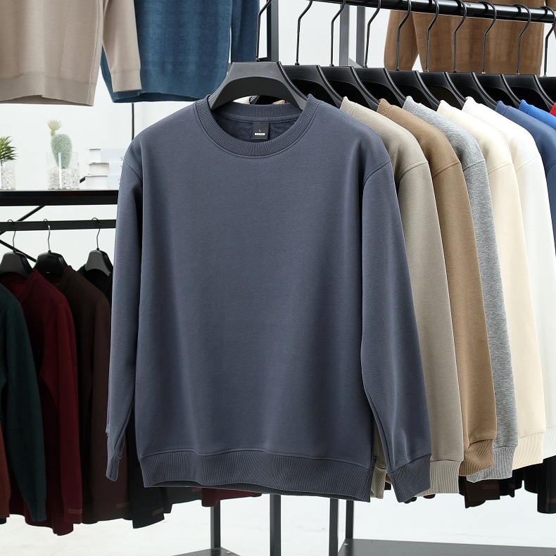 신장 장섬유 순면 단색 스웨트셔츠 남성용 순면 가을 라운드넥 긴팔 티셔츠 남성용 스웨트셔츠 루즈핏 베이스웨어스토어 가기