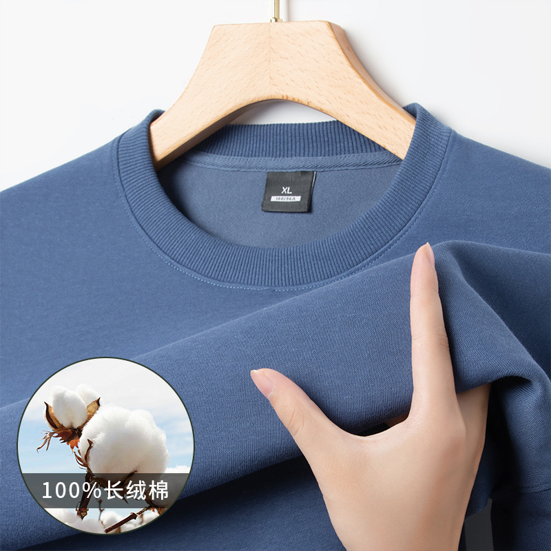 신장 장섬유 순면 단색 스웨트셔츠 남성용 순면 가을 라운드넥 긴팔 티셔츠 남성용 스웨트셔츠 루즈핏 베이스웨어