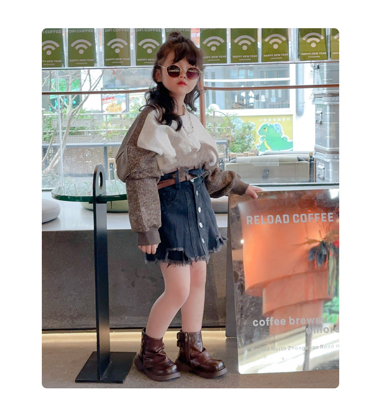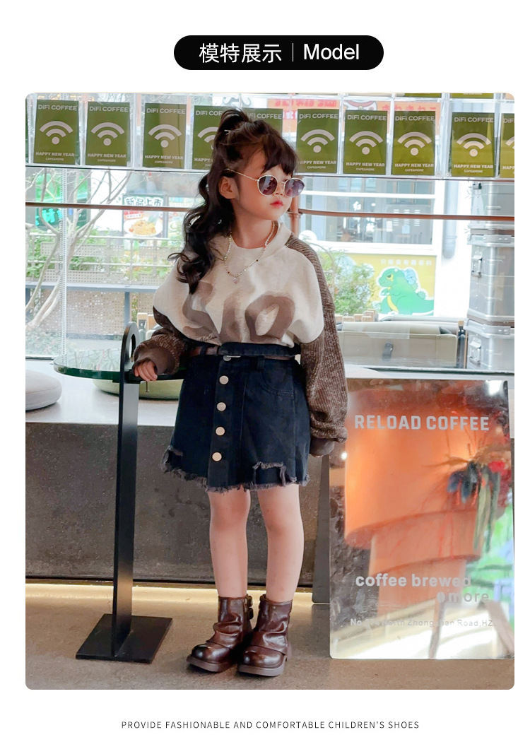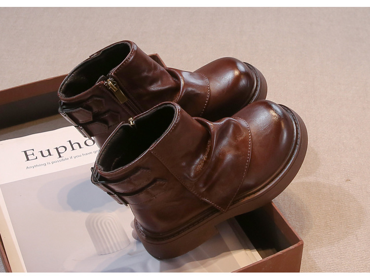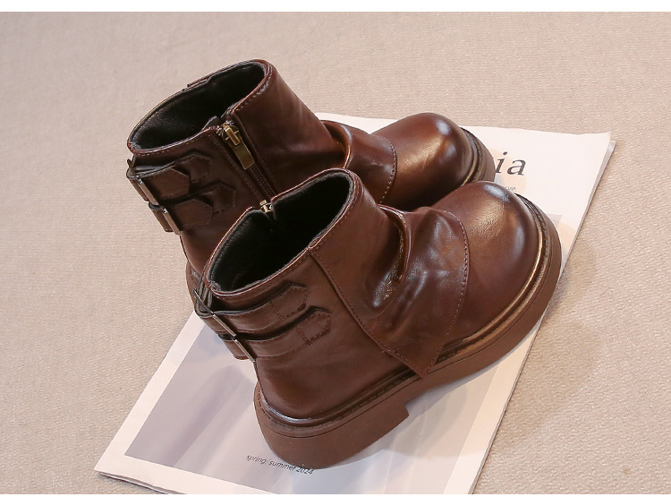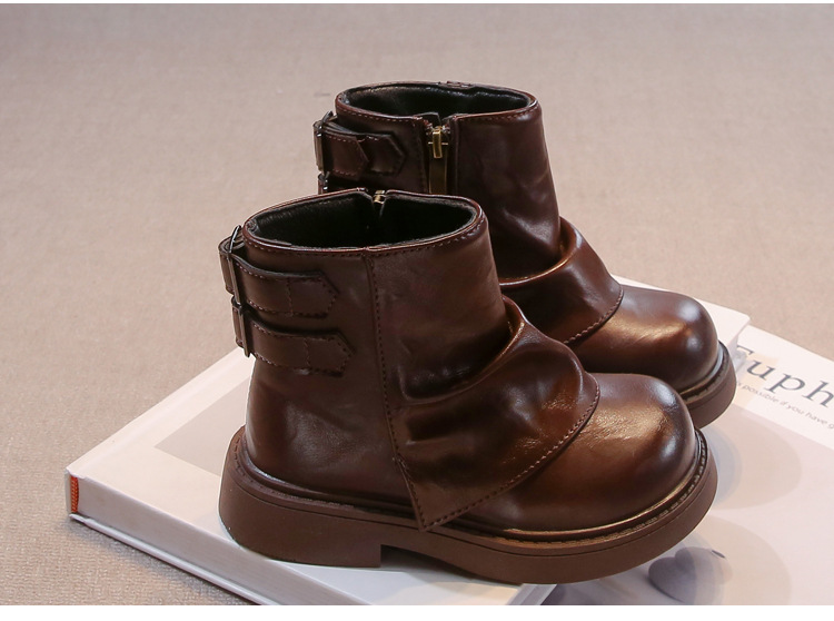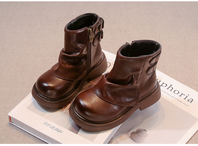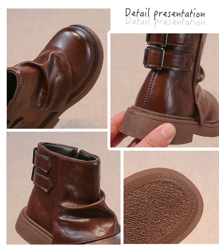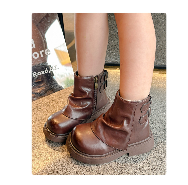 소녀 부츠 영국 스타일 발목 부츠 큰 아이 공주 기사 부츠 2024 봄과 가을 새로운 두꺼운 바닥 다크 브라운 바지 부츠스토어 가기