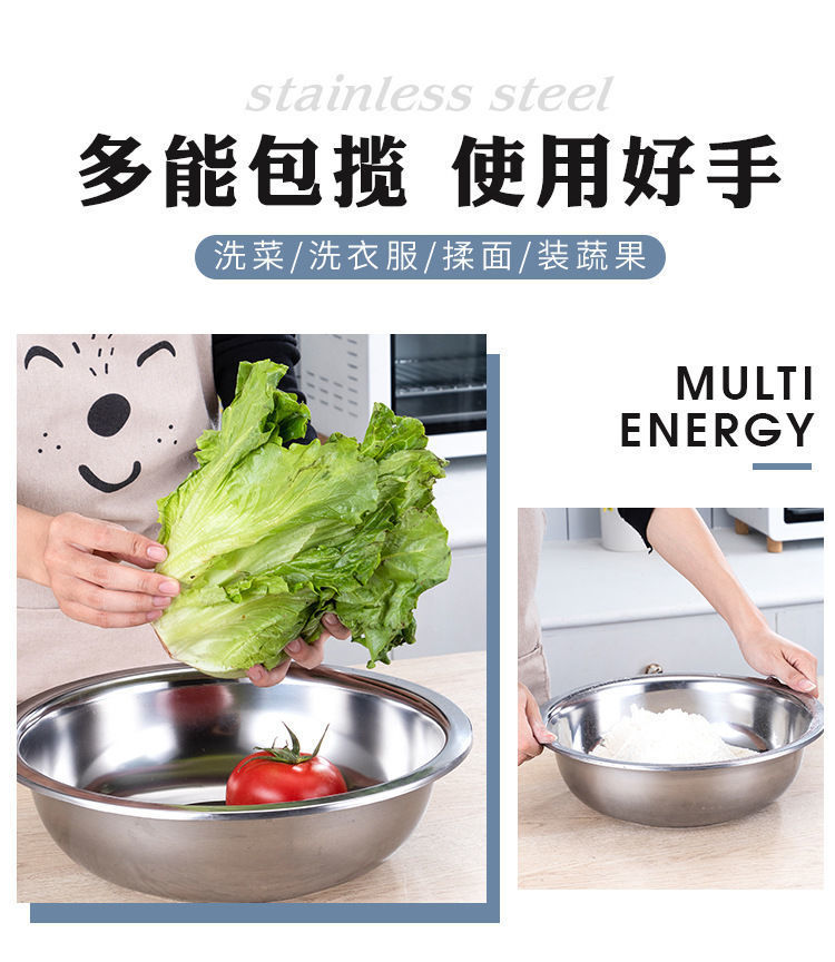 식품 등급 304 스테인레스 스틸 분지 가정용 주방 계란 및 세척 야채 굽기 초대형 분지 추가 두꺼운 수프 분지스토어 가기