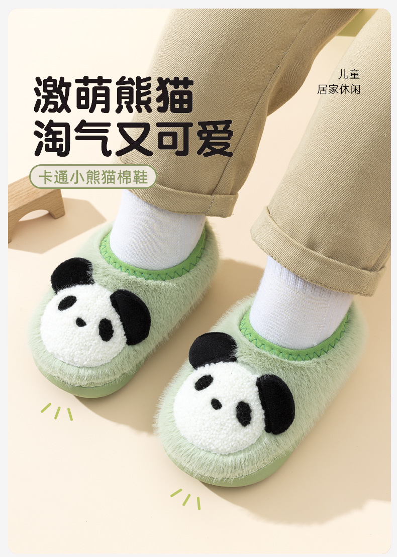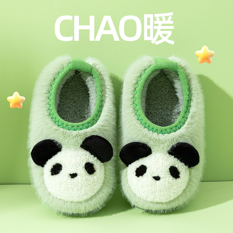 만화 팬더 어린이 코튼 신발 가을과 겨울 소녀 귀여운 실내 미끄럼 방지 부드러운 바닥 따뜻한 소년 플러시 코튼 신발스토어 가기