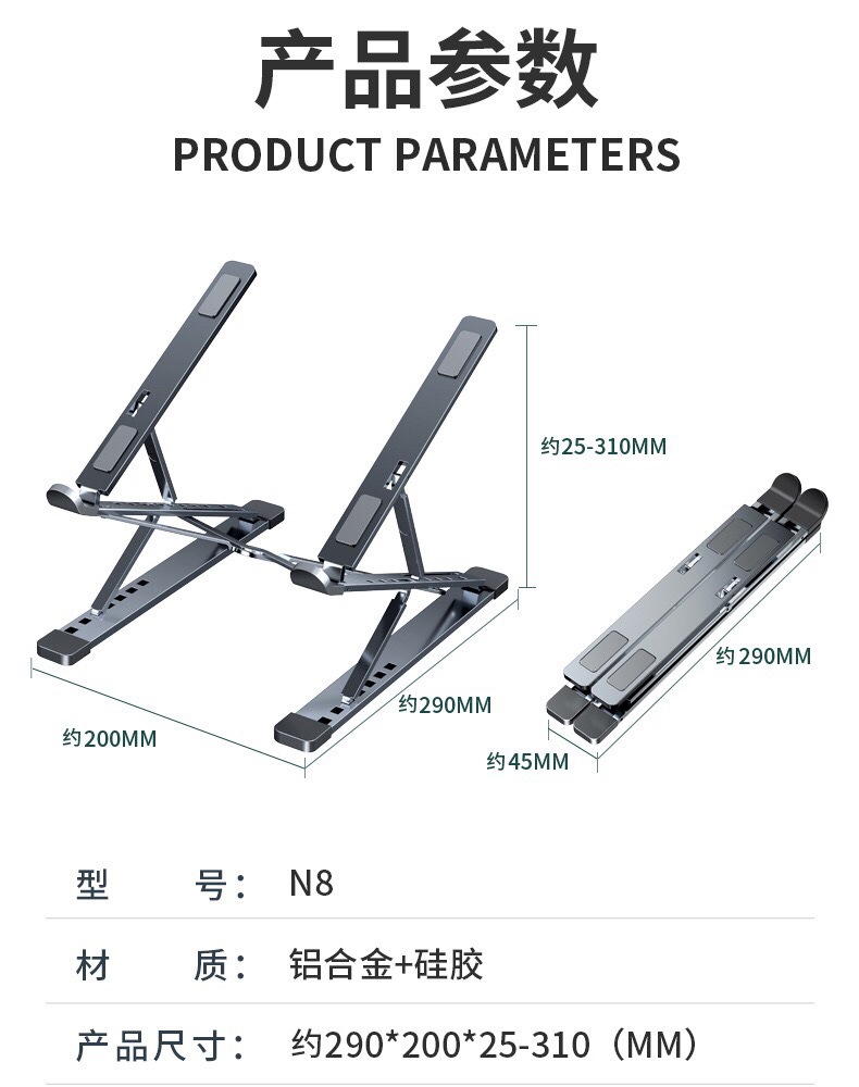 亚马逊爆款N8笔记本电脑支架双层桌面铝合金支架折叠散热支架升降