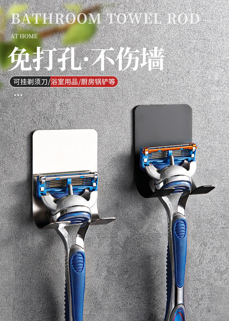 국경 스테인레스 스틸 비 천공 면도 블레이드 홀더 주방 욕실 거실 벽걸이 고정 다기능 스티커 후크 도매