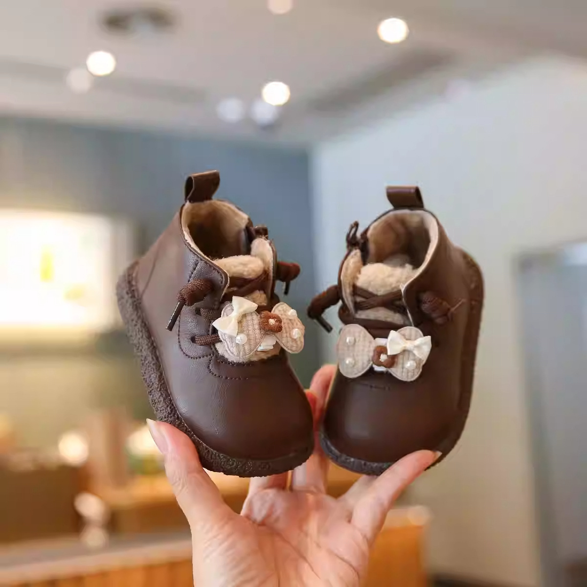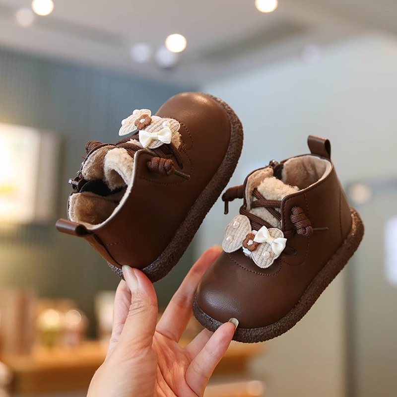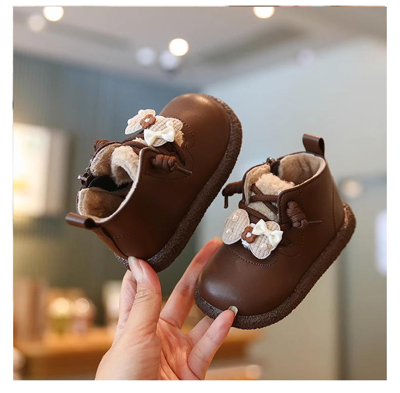 아기 부츠 만화 예쁜 작은 가죽 부츠 소녀 높은 발목 부츠 겨울 아기 코튼 신발 0-1-3 년 된 공주 신발
