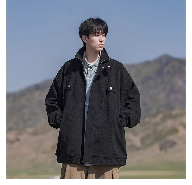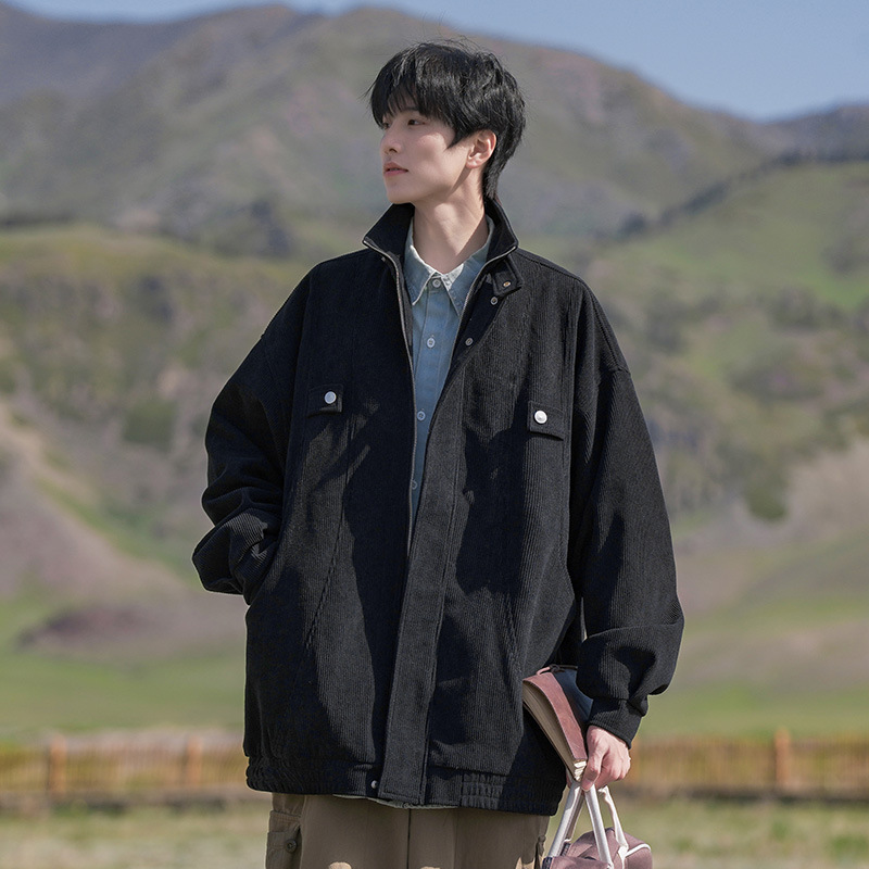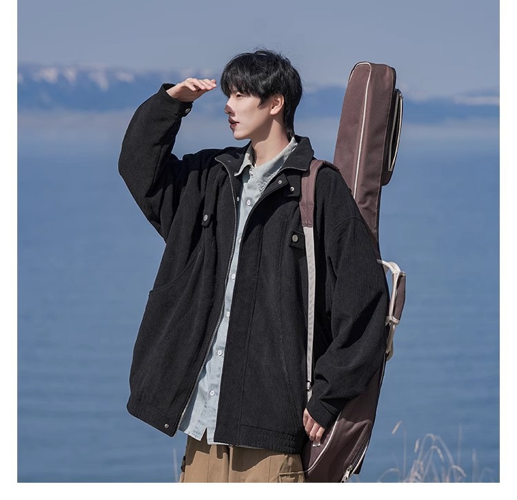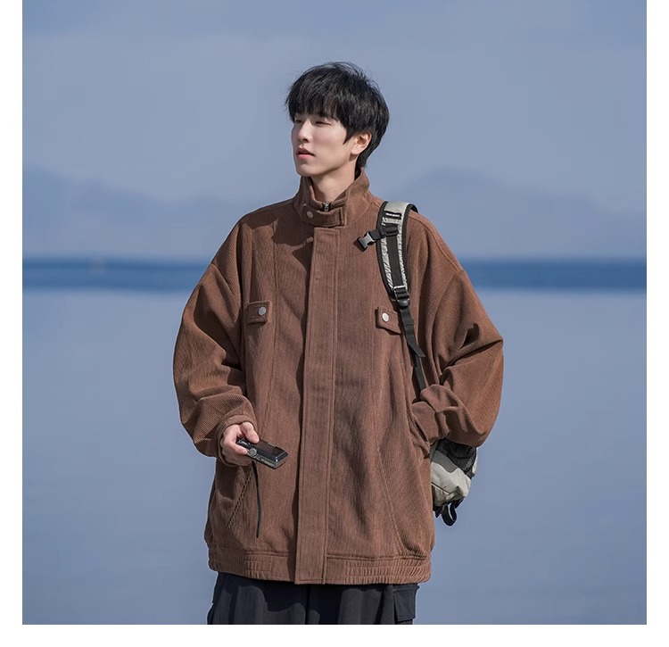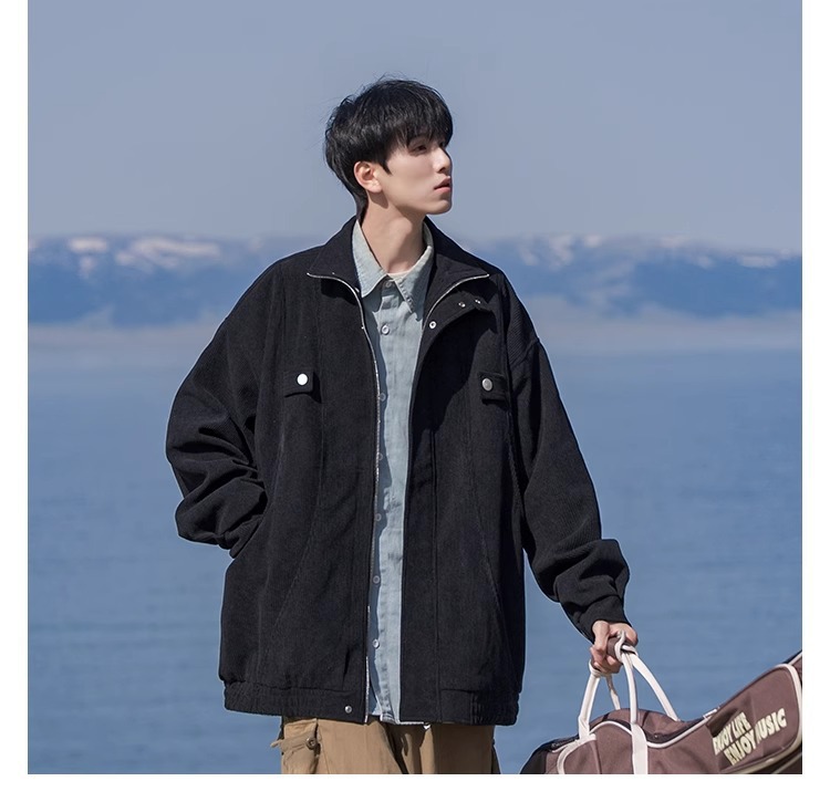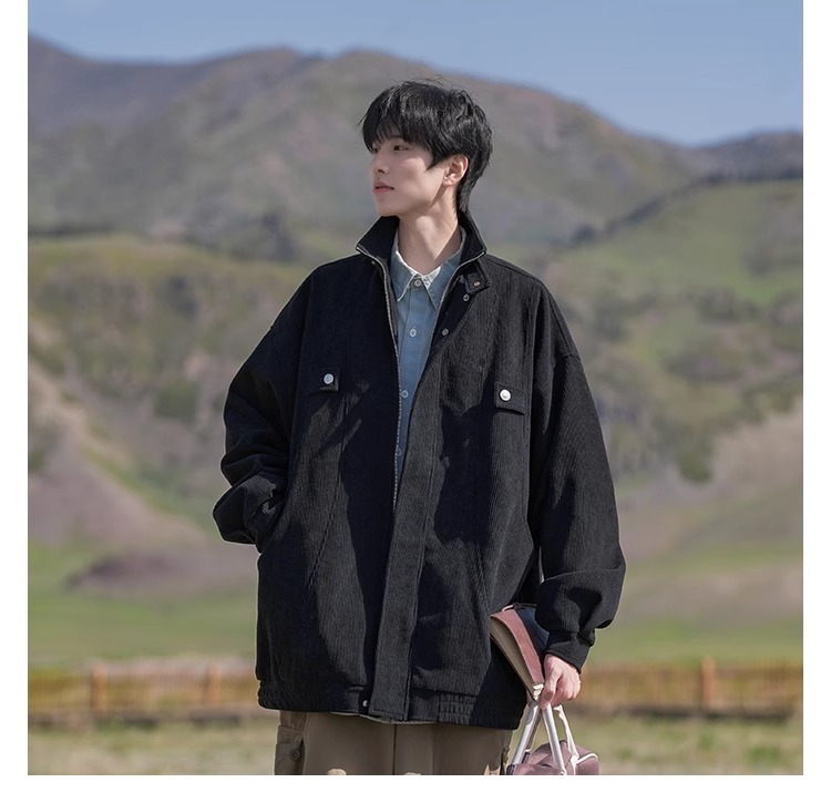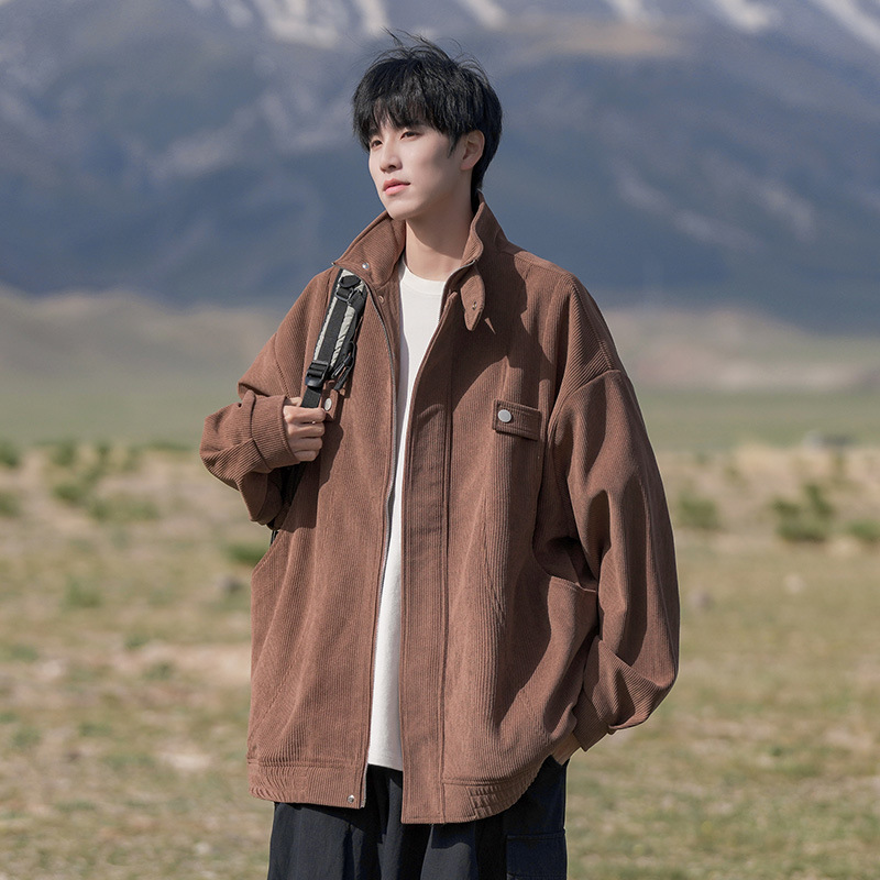 코듀로이 재킷 남자의 봄과 가을 툴링 재킷 2024 새로운 스타일 소년 느슨한 캐주얼 남성 패션 브랜드 옷스토어 가기