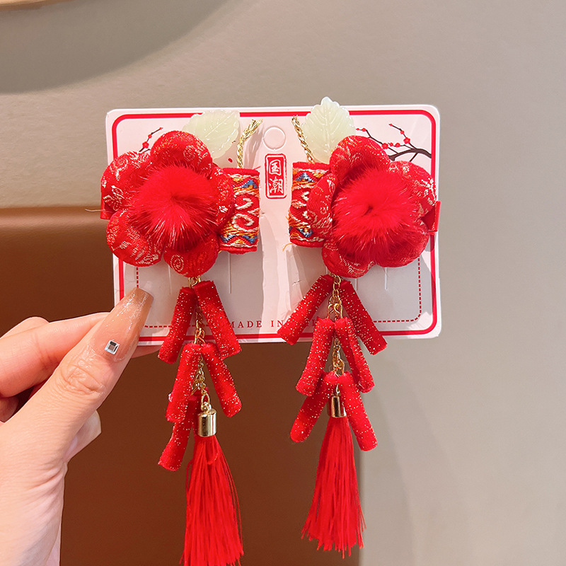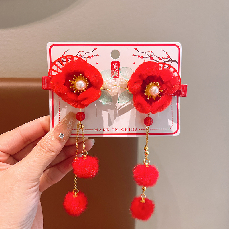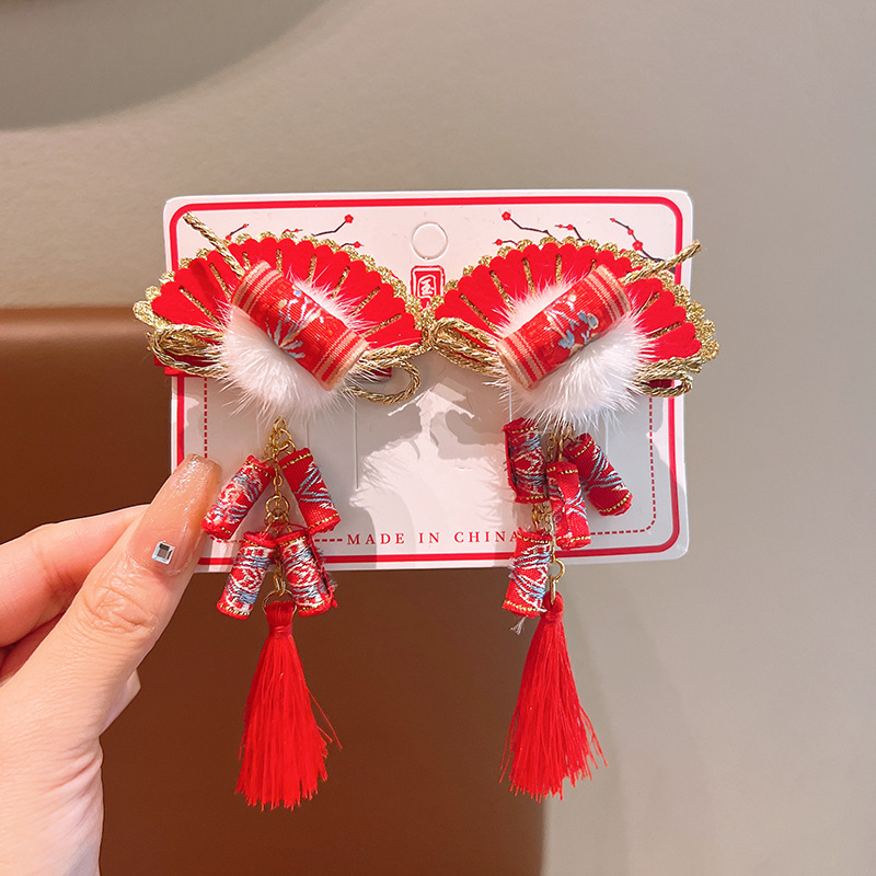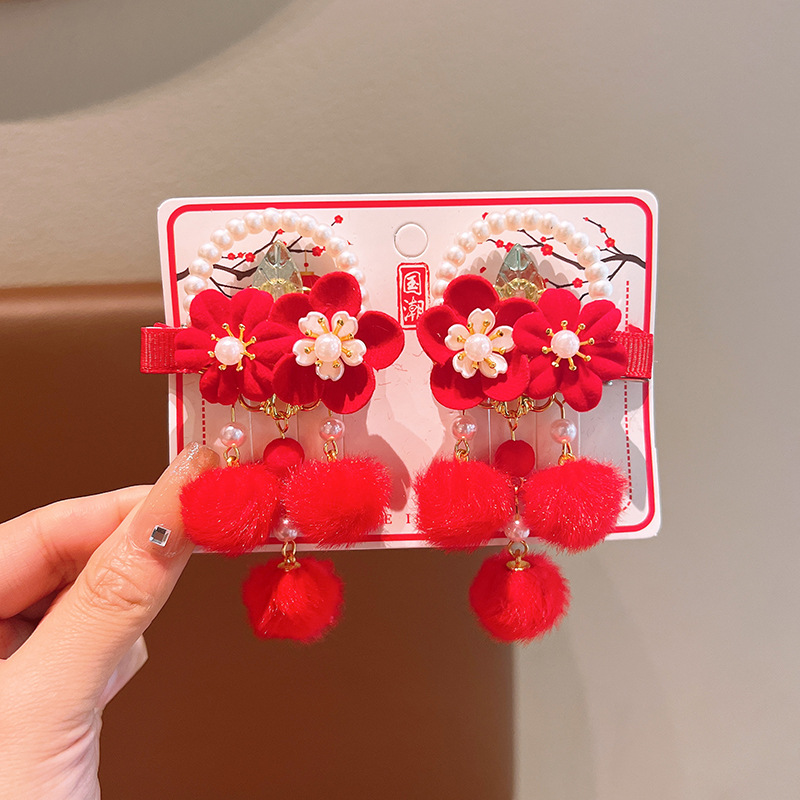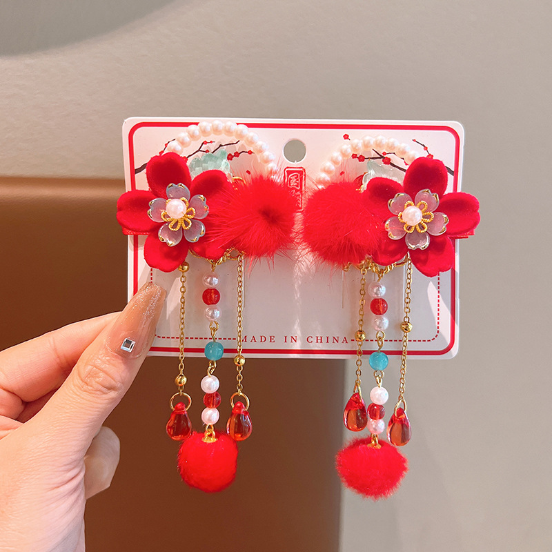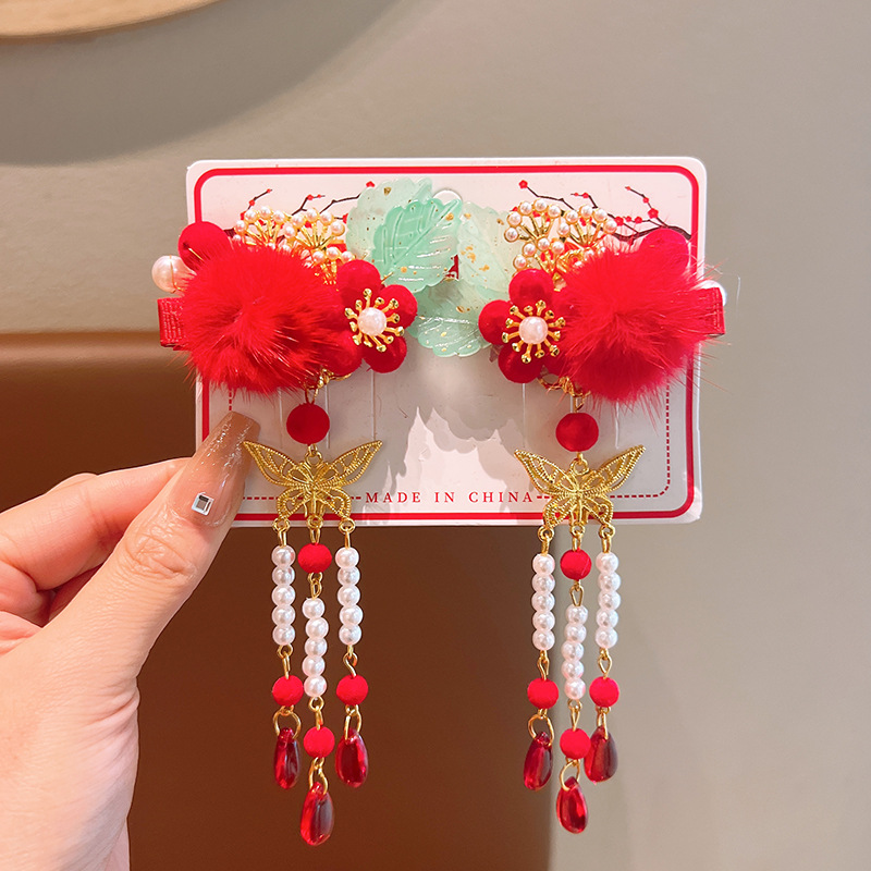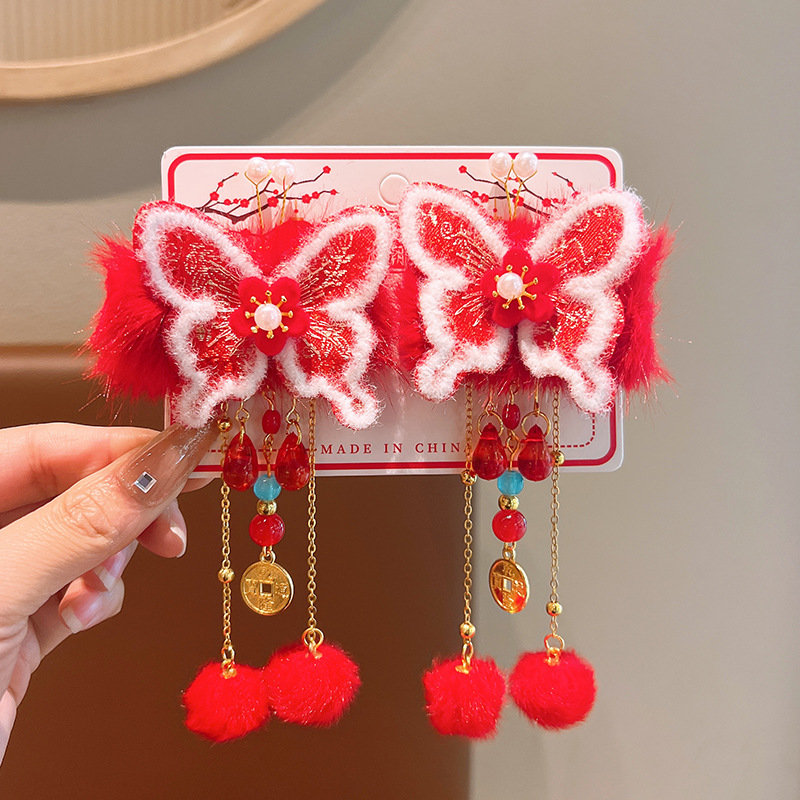 새해 머리핀 어린이 헤어 액세서리 한푸 골동품 술 나비 머리핀 소녀 아기 가발 머리 액세서리 도매