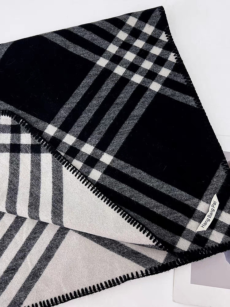 양면 체크 무늬 블랙 캐시미어 스카프 2024 남성과 여성을위한 소프트 패션 롱 스카프 Quan Zhixian스토어 가기
