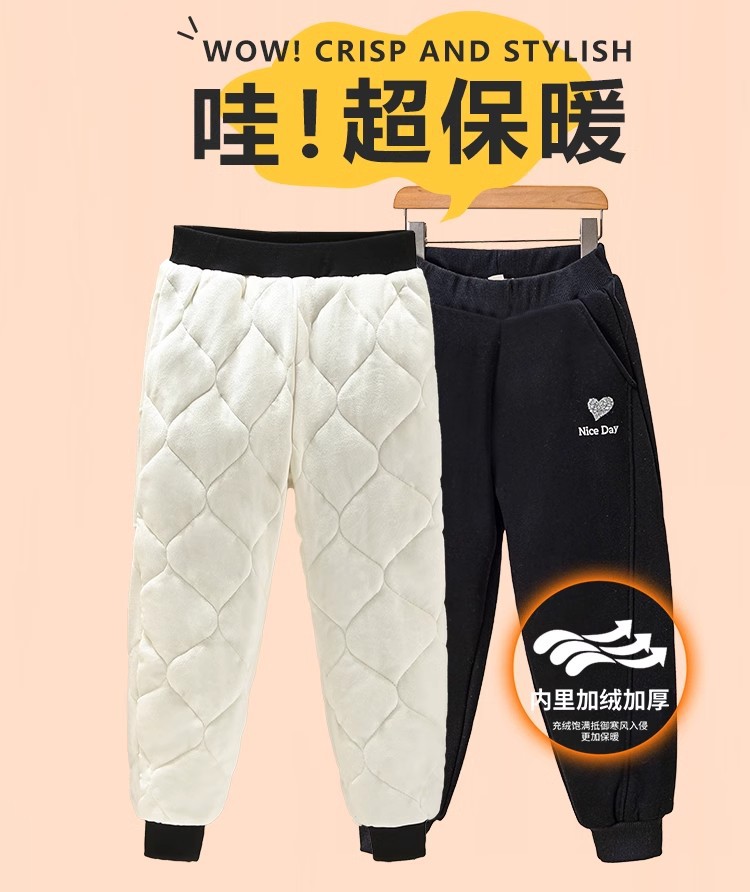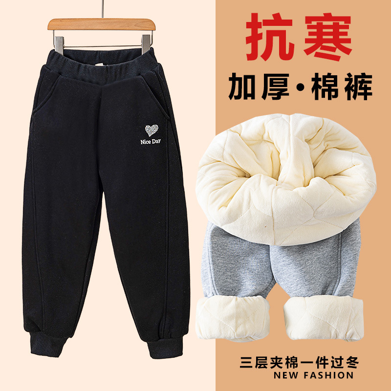 어린이 캐주얼 겨울 면화 바지 2024 겨울 어린이 따뜻한 바지 따뜻한 바지 외면 바지 기모 두꺼운 스웨터 바지스토어 가기