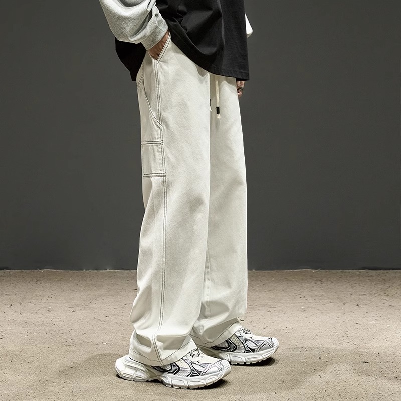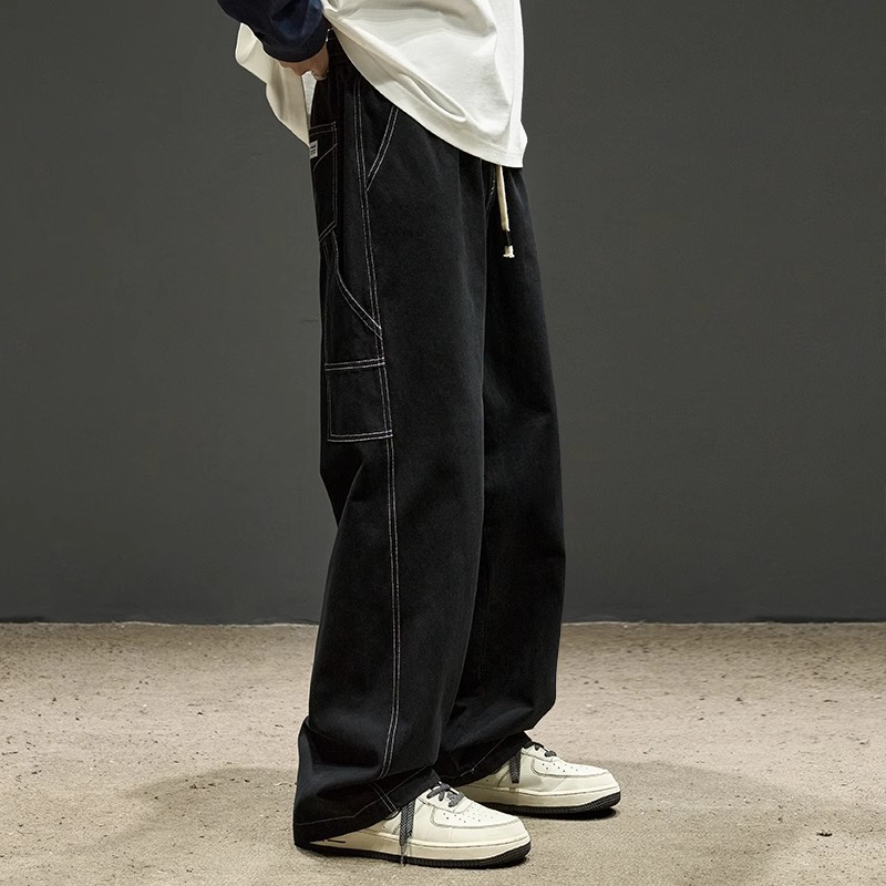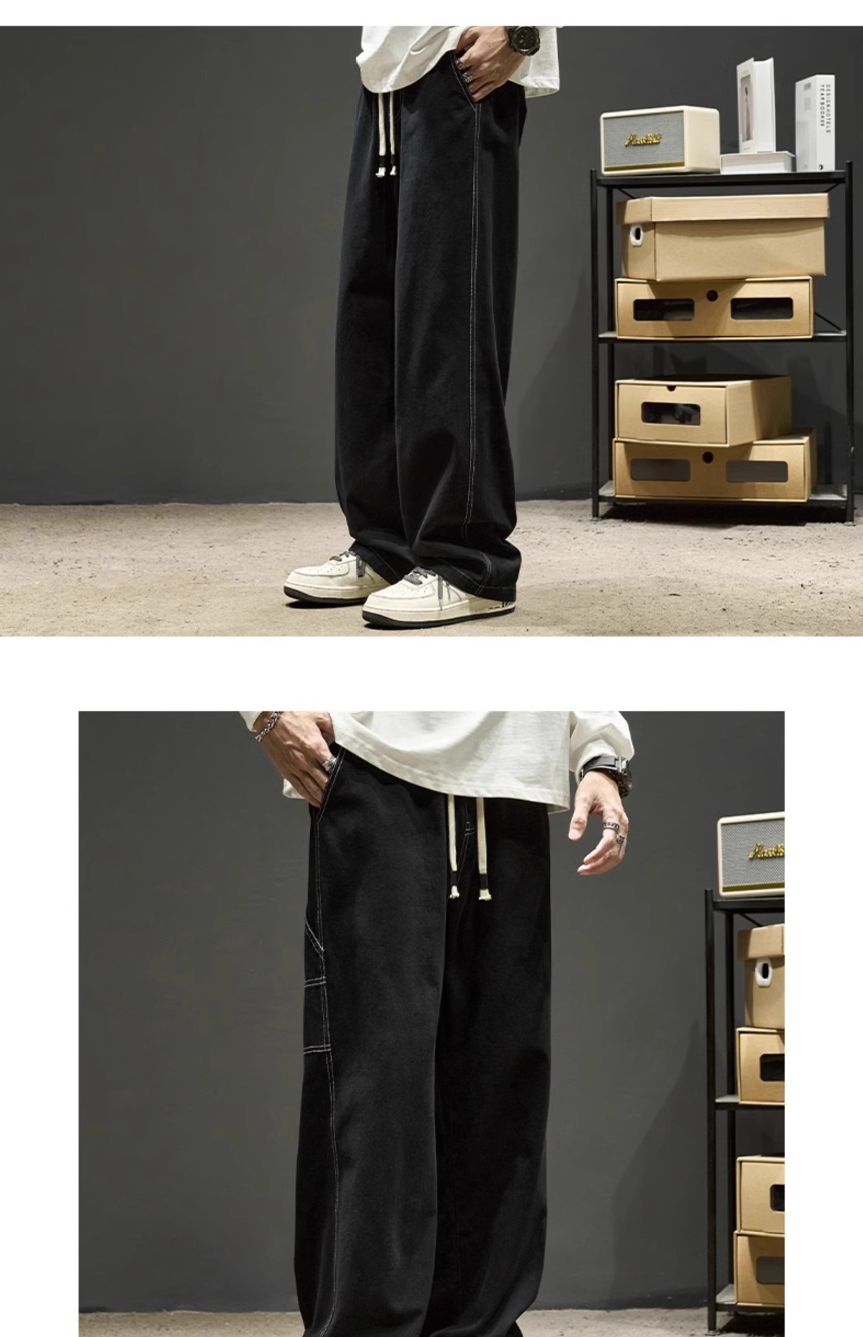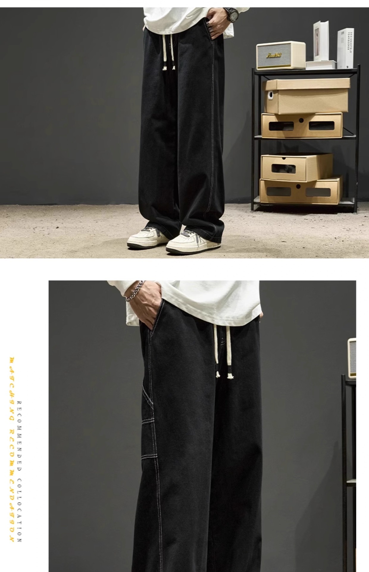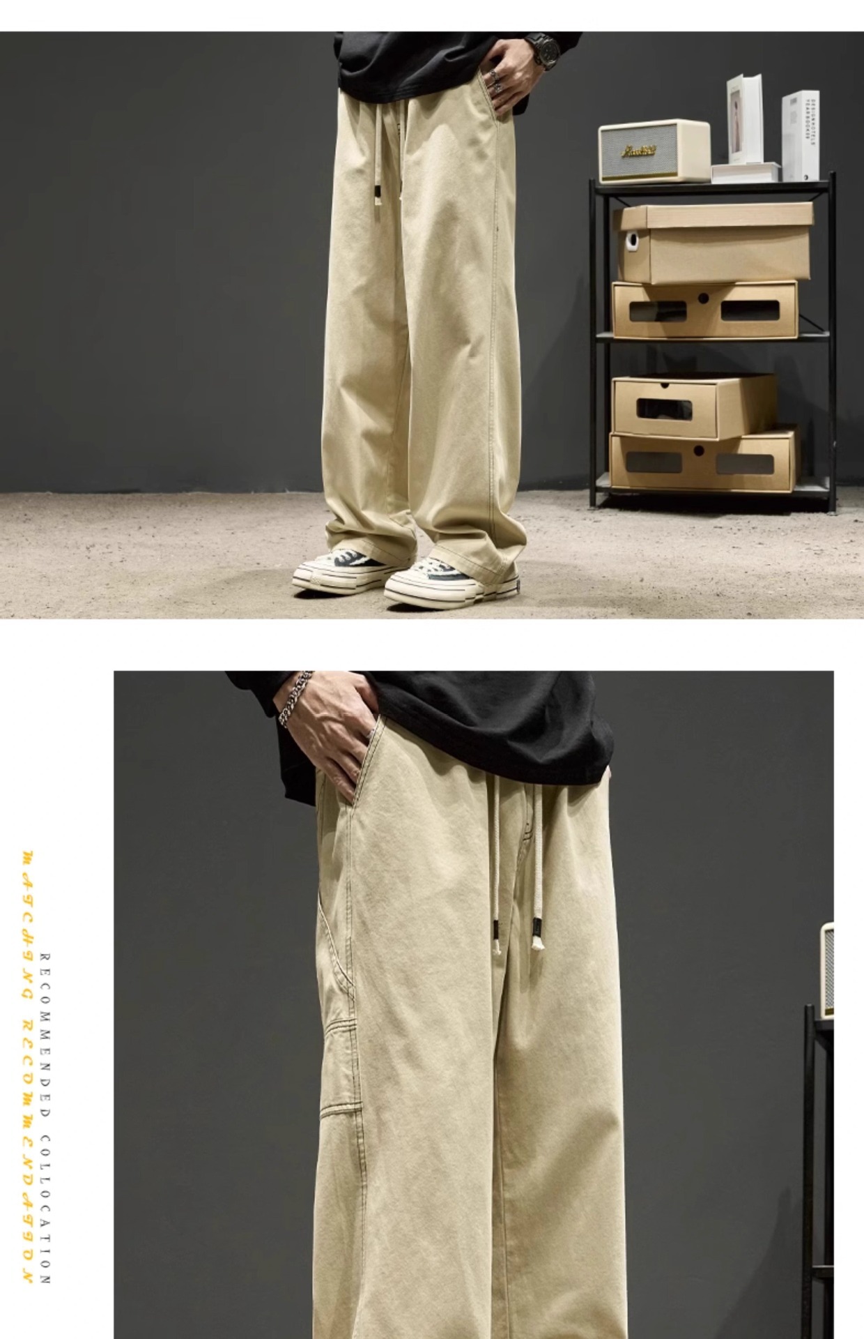 미국 스타일 게으른 디자인 센스 캐주얼 바지 남자 2024 봄과 가을 새로운 느슨한 유행 스트레이트 다리 긴 바지스토어 가기