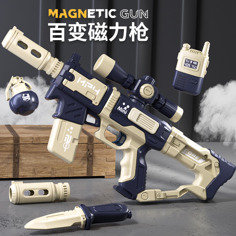어린이 장난감 총 전기 소리와 빛 가변 조립 자기 총 시뮬레이션 샷건 기관단총 모델 소년 3-6 세