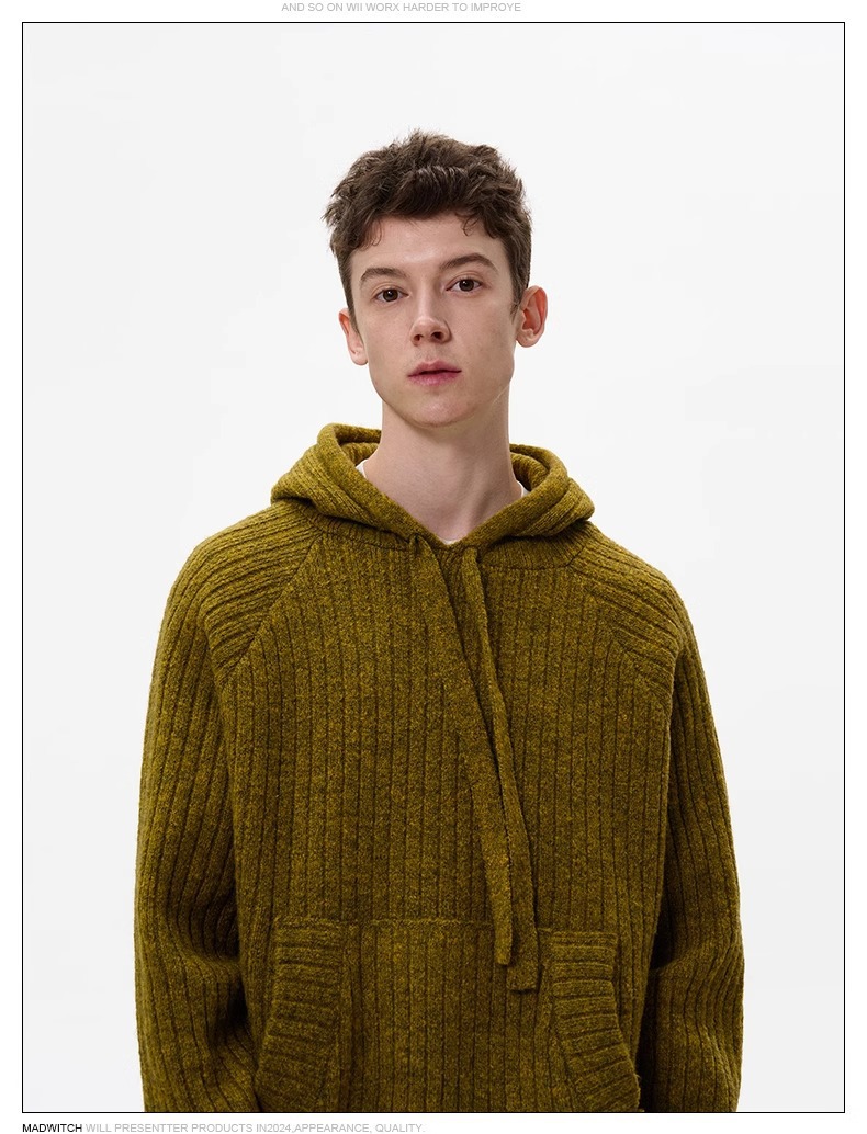 2024 가을 겨울 새로운 한국 스타일 레트로 틈새 유행 후드 스웨터 남자 느슨한 게으른 캐주얼 스웨터 탑