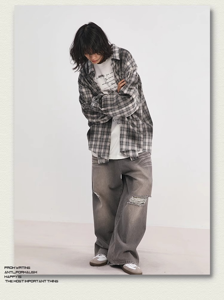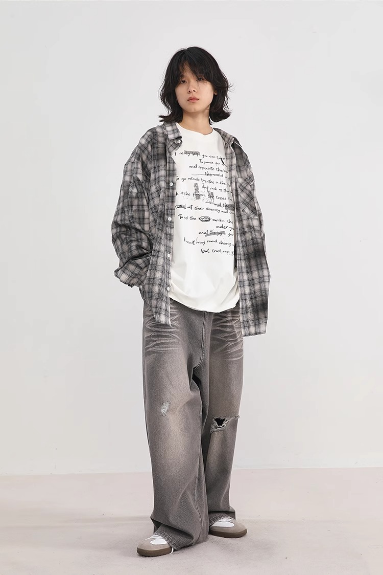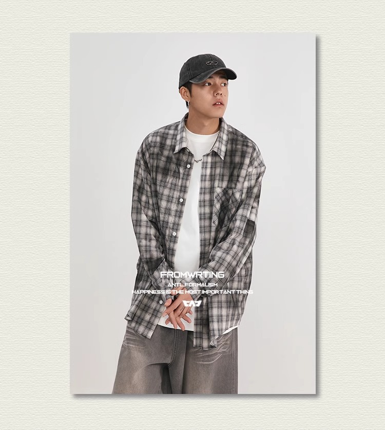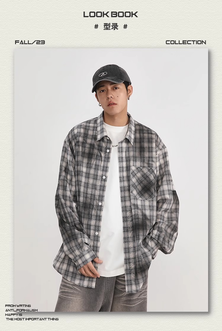 트렌디 한 브랜드 기본 더러운 염료 무늬 셔츠 남자의 봄과 가을 2024 새로운 느슨한 캐주얼 올 매치 코트 탑스토어 가기