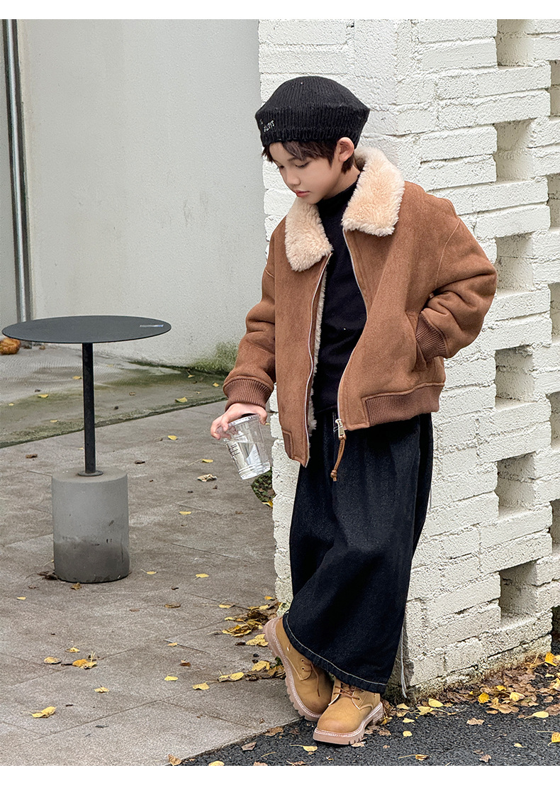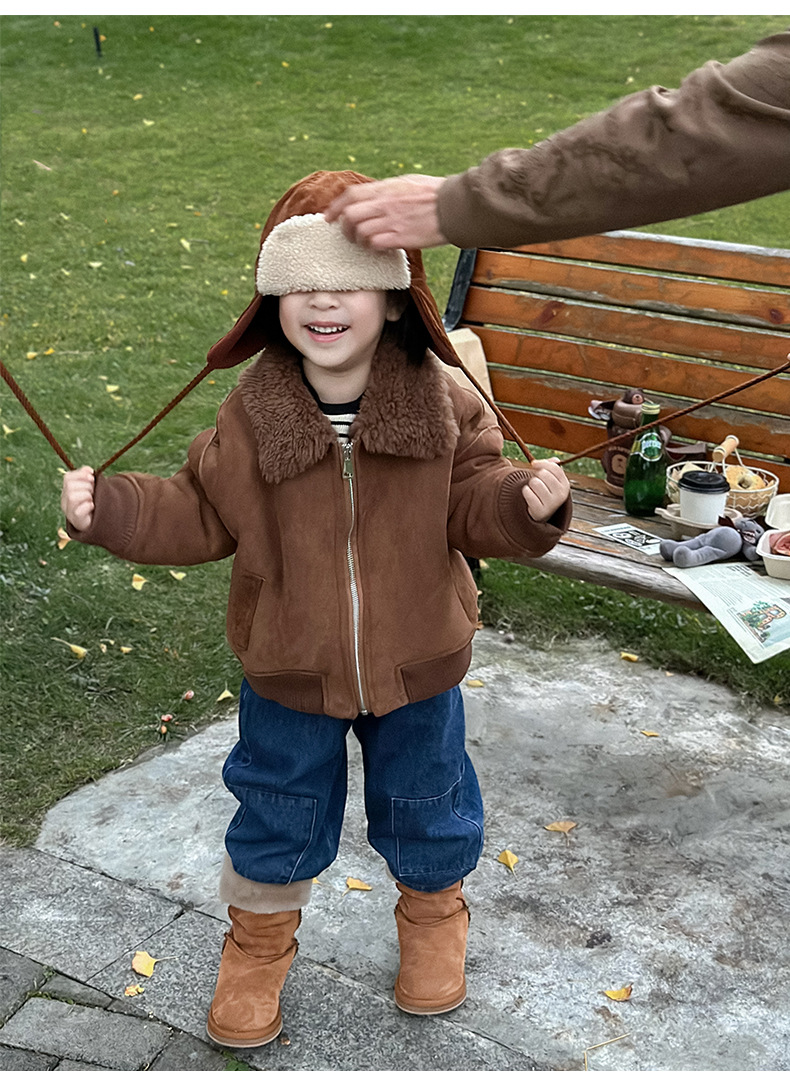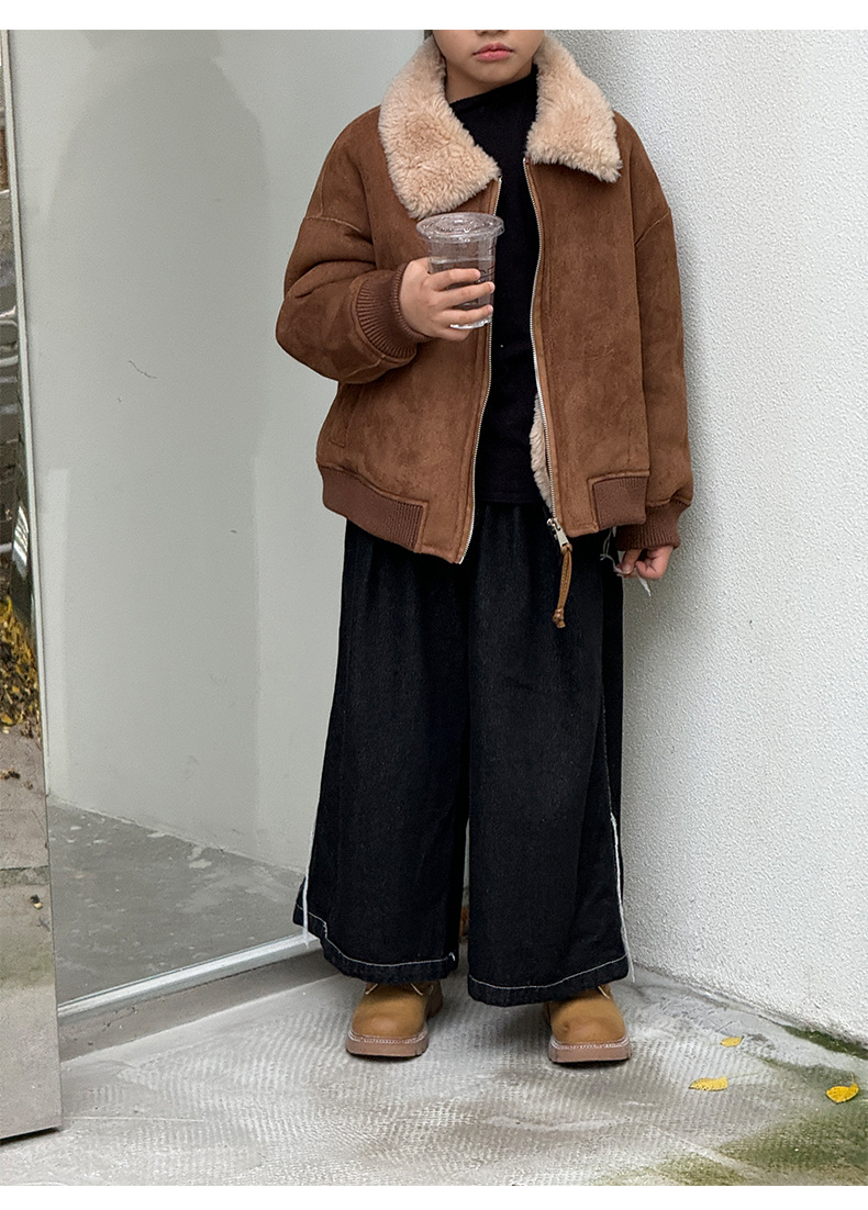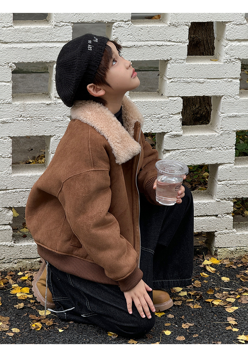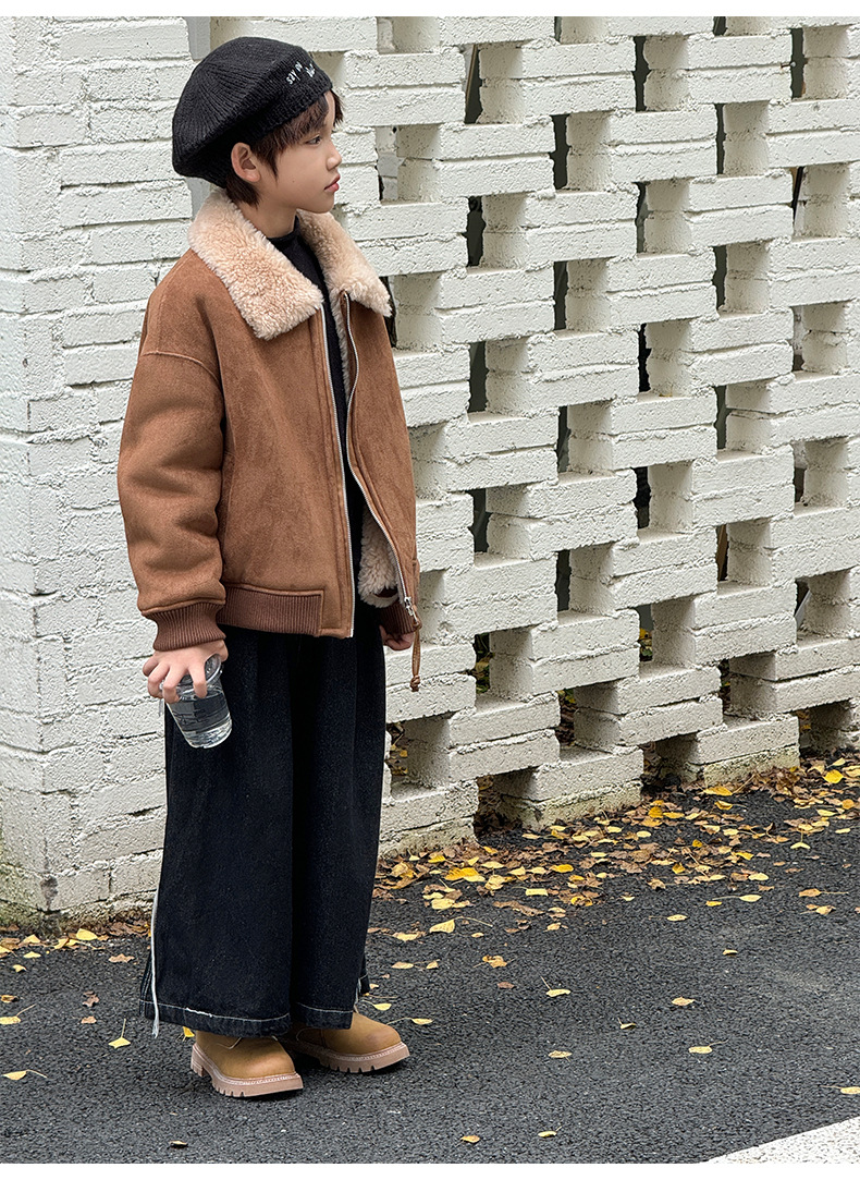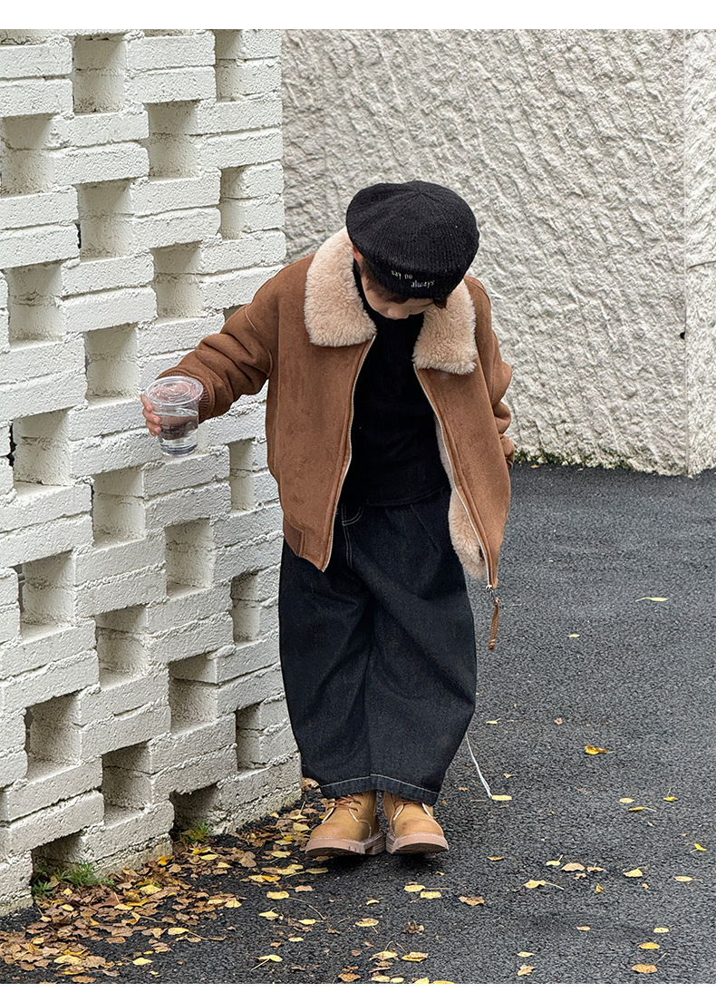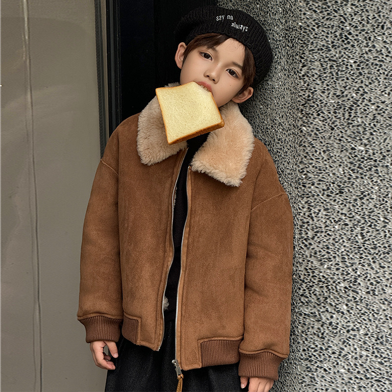 소년 코트 캐주얼 느슨한 양고기 플러시 모피 원피스 재킷 코트 겨울 소녀 어린이 모피