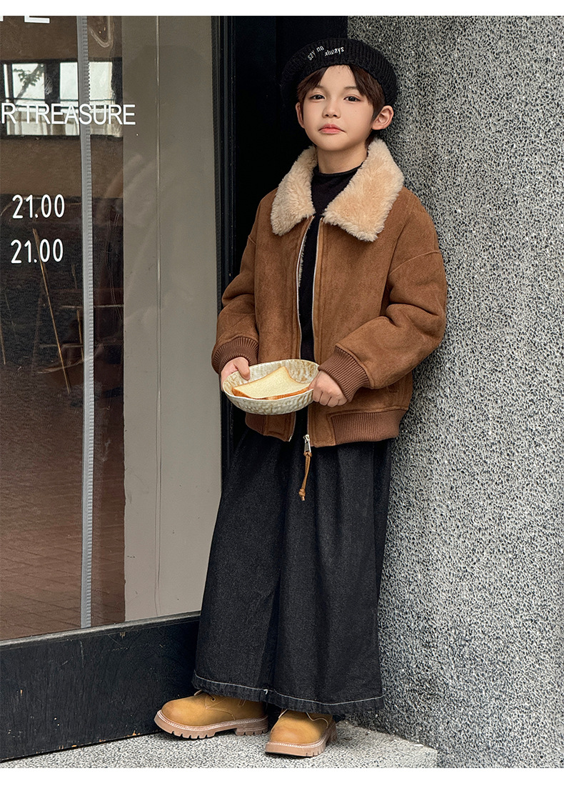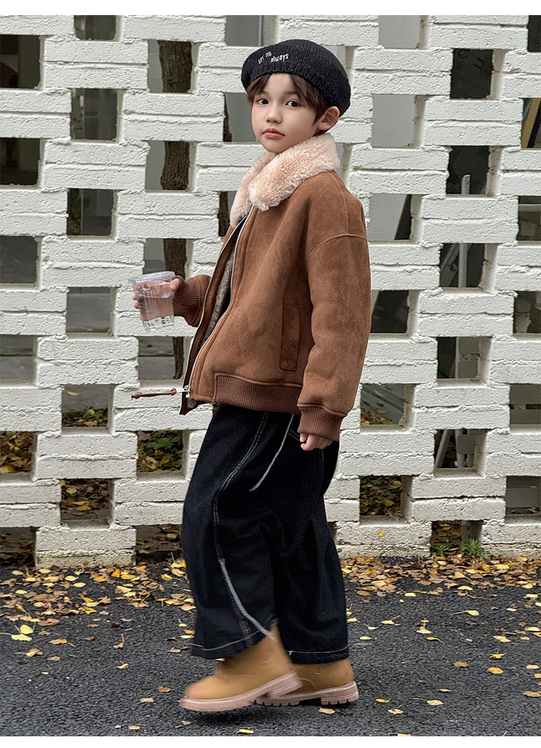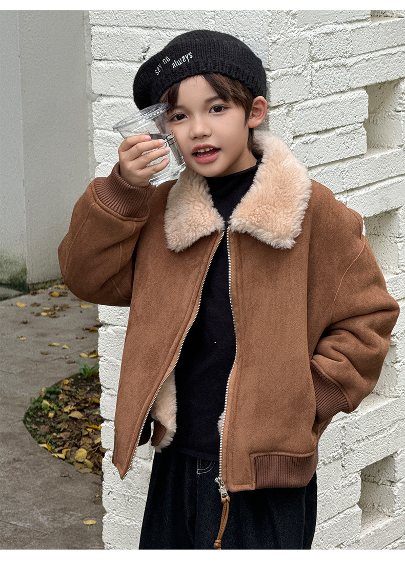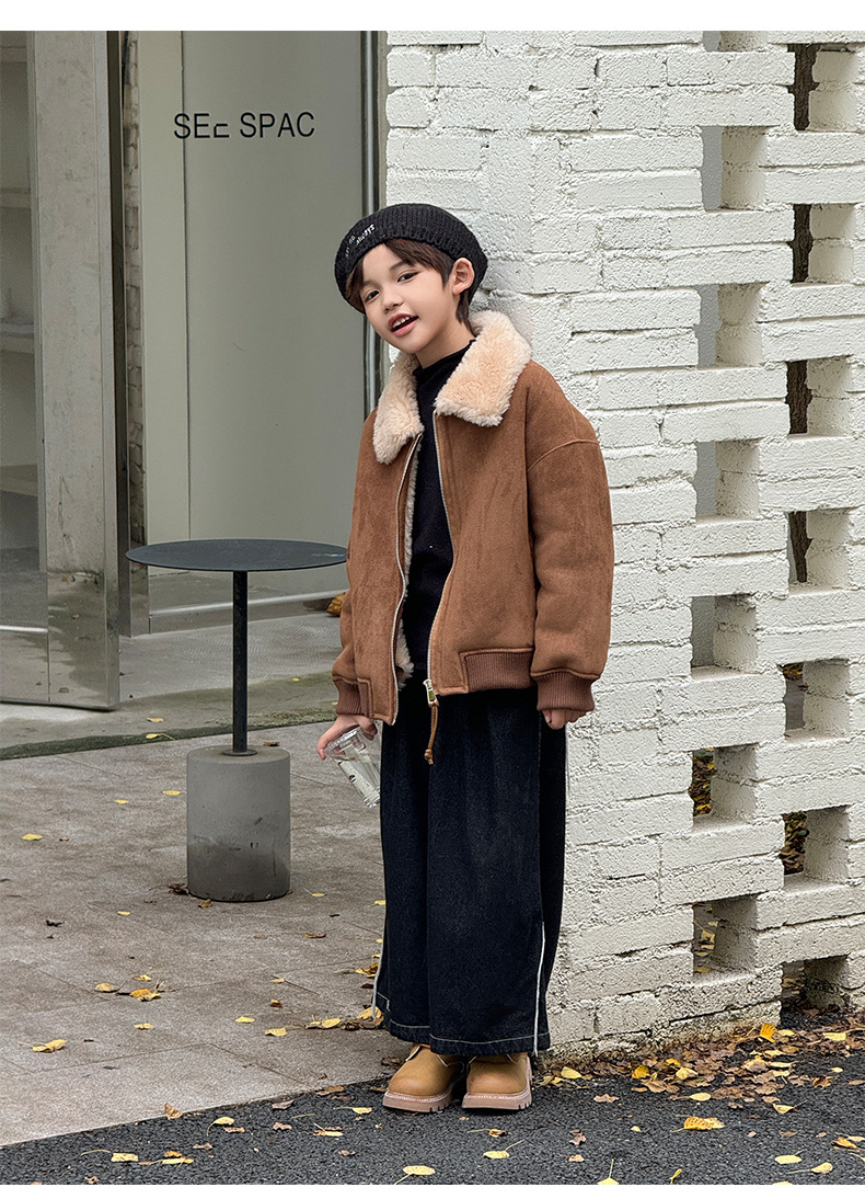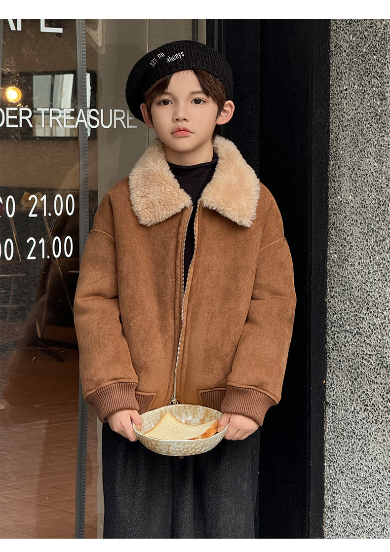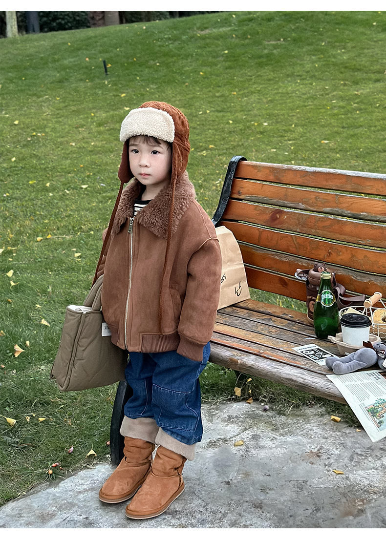 소년 코트 캐주얼 느슨한 양고기 플러시 모피 원피스 재킷 코트 겨울 소녀 어린이 모피