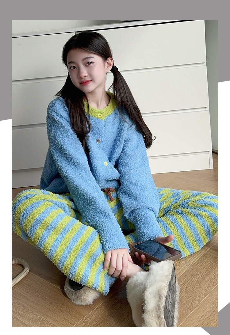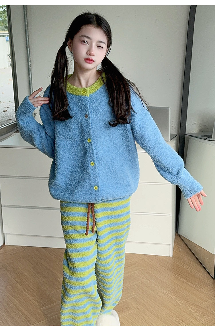 소녀의 집 옷 어린이 가을 겨울 2024 새로운 플란넬 아동복 따뜻한 큰 어린이 산호 양털 겨울 세트