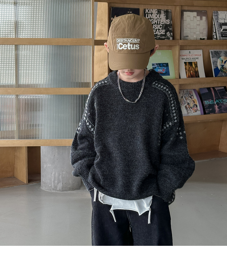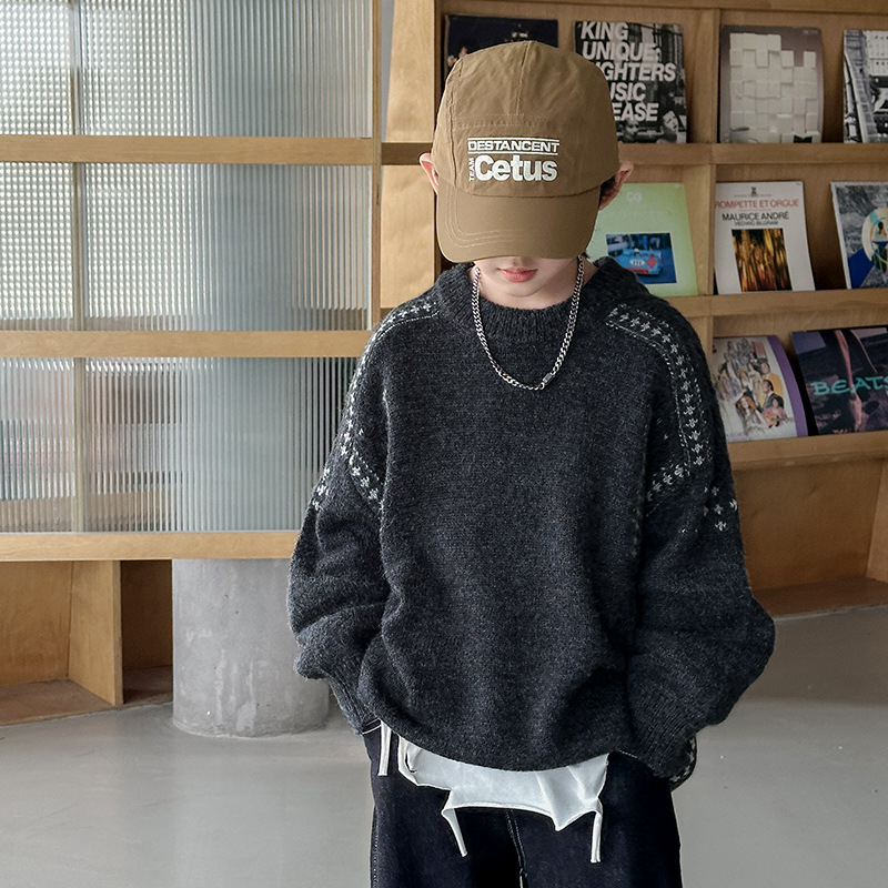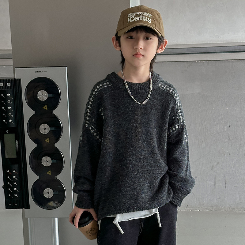 겨울 중다 소년 스웨터 겨울 새 아동복 어린이 소년의 독특한 크루 넥 풀오버 올 매치 스웨터 트렌디 브랜드스토어 가기