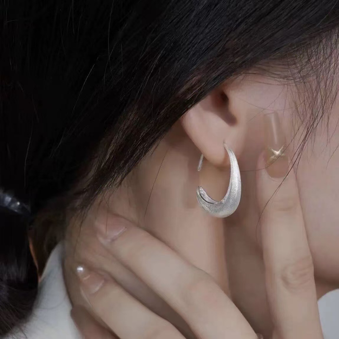 와이어 드로잉 곡선 후크 귀걸이 빛 고급 가을과 겨울 우아한 패션 하이 엔드 타원형 워터 드롭 귀걸이 여성