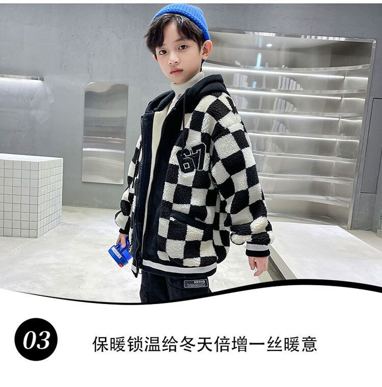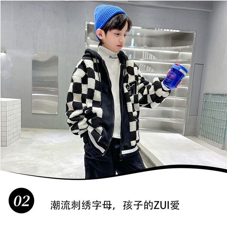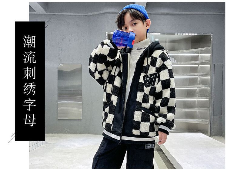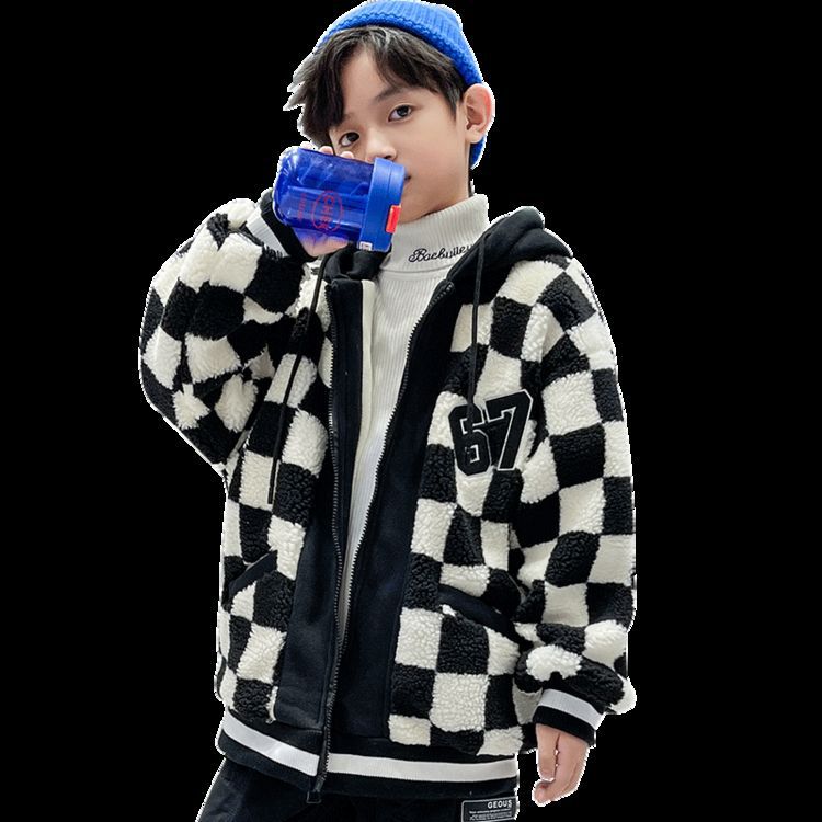 소년의 두꺼운 체석판 양모 스웨터 코트 겨울 어린이 중 · 대형 어린이 두꺼운 중간 길이 한국식 면패딩 재킷 따뜻한
