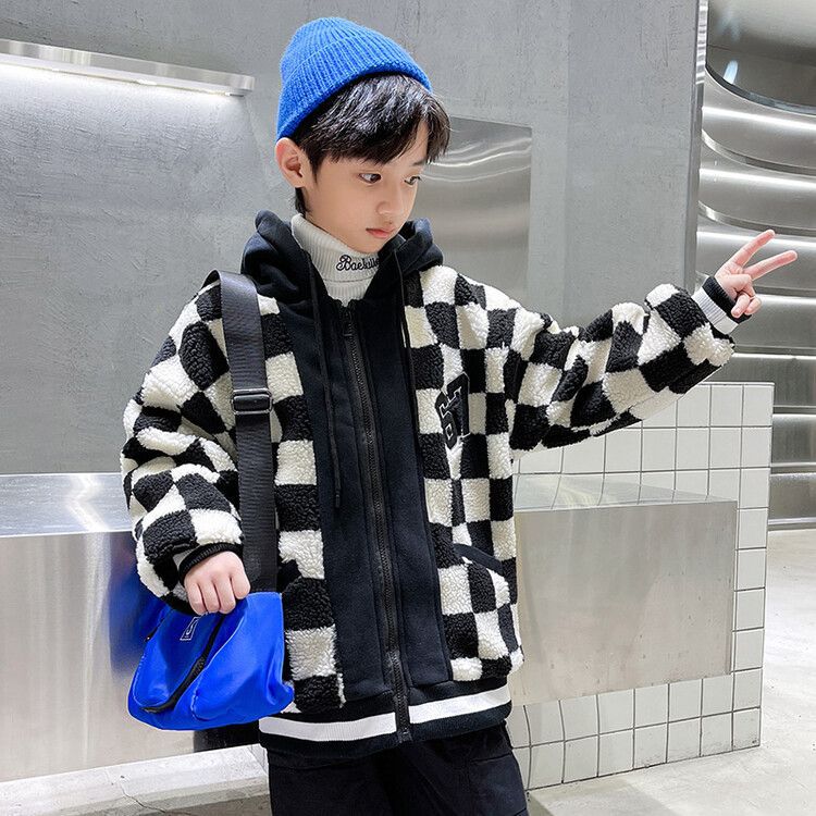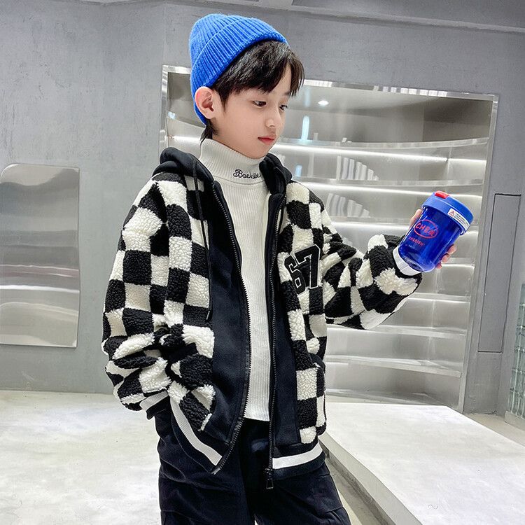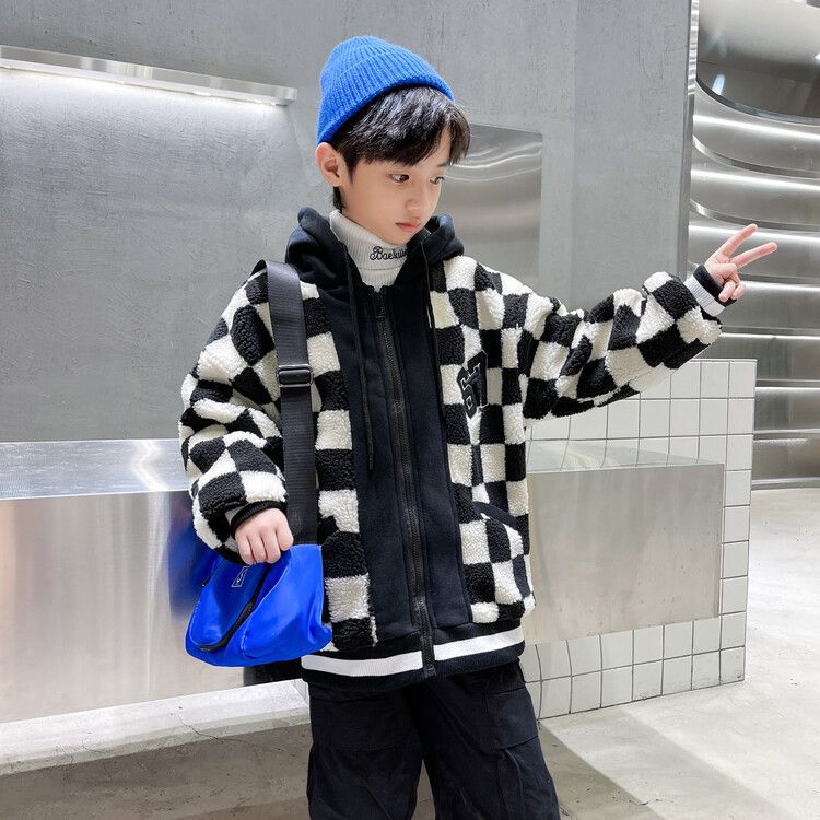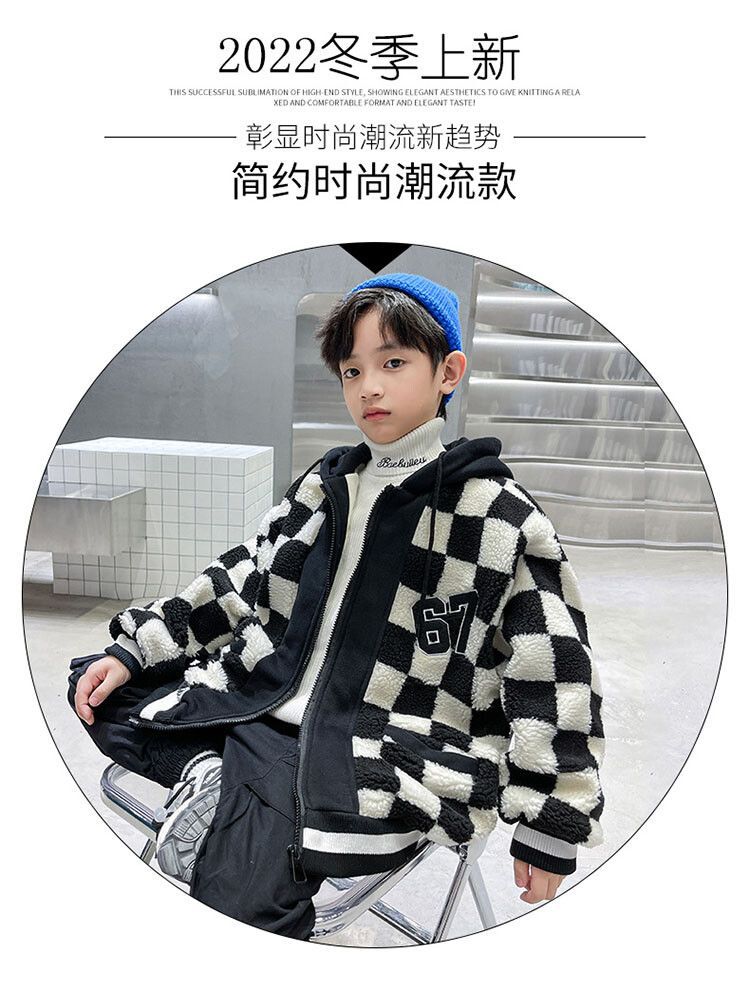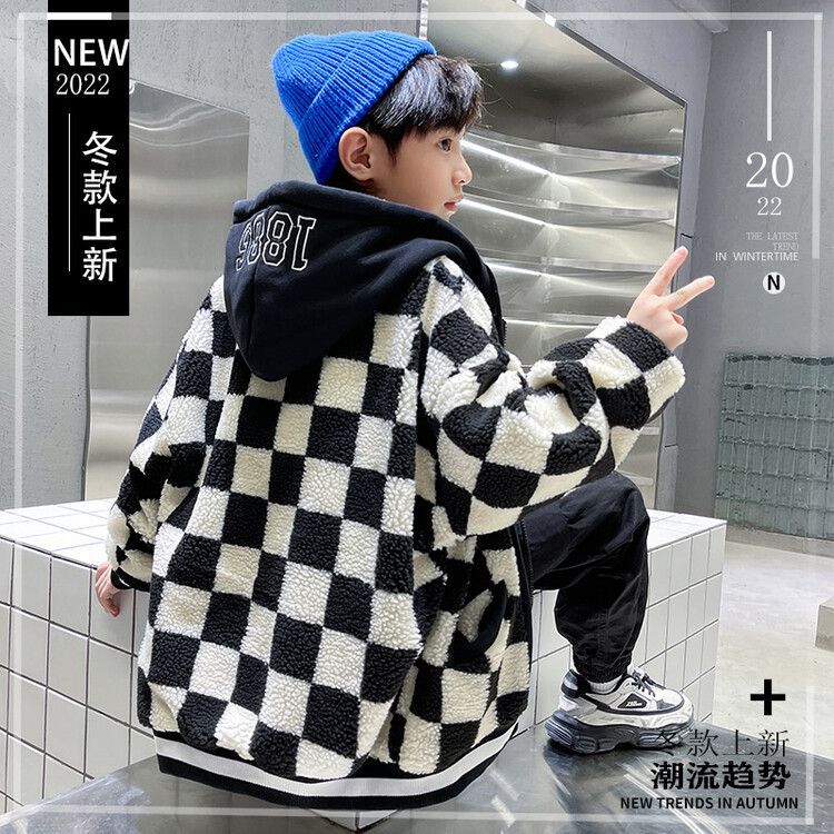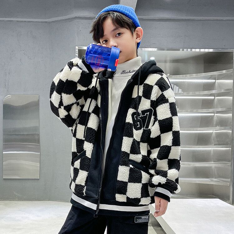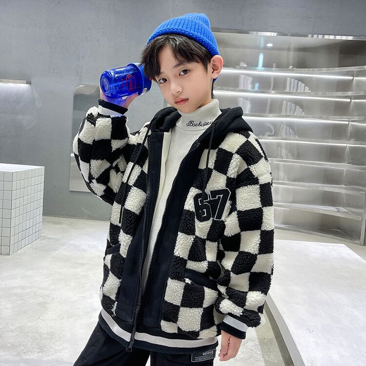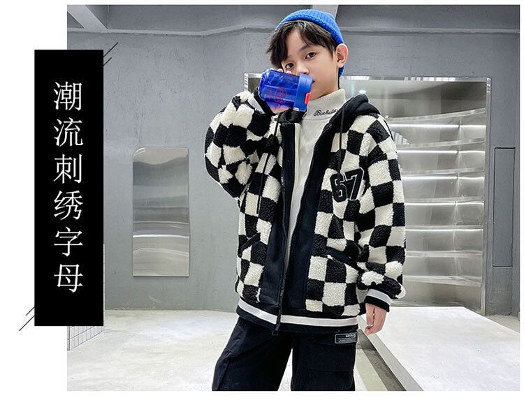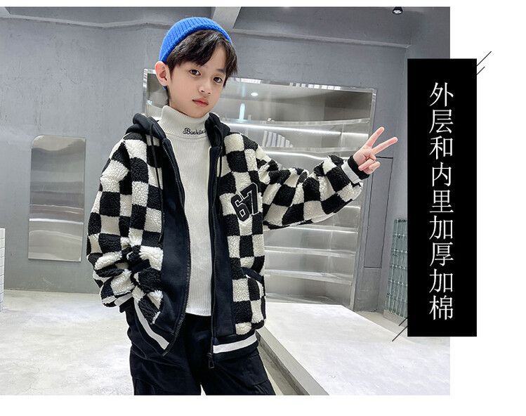 소년의 두꺼운 체석판 양모 스웨터 코트 겨울 어린이 중 · 대형 어린이 두꺼운 중간 길이 한국식 면패딩 재킷 따뜻한스토어 가기
