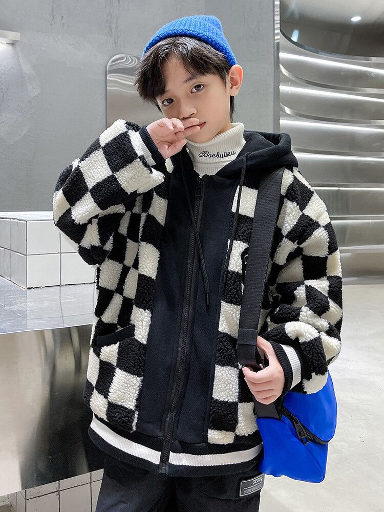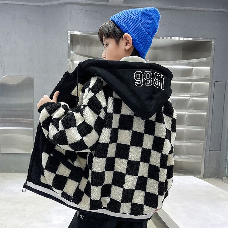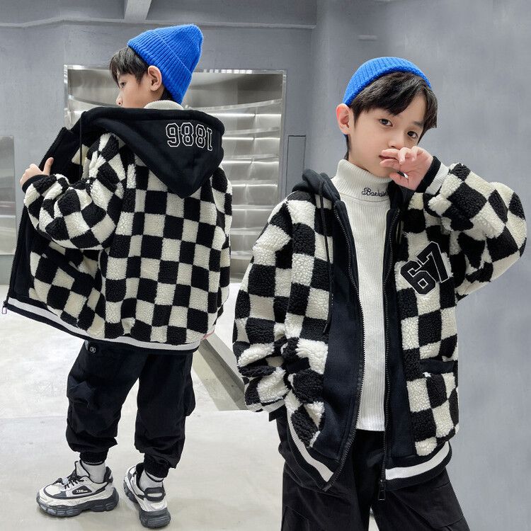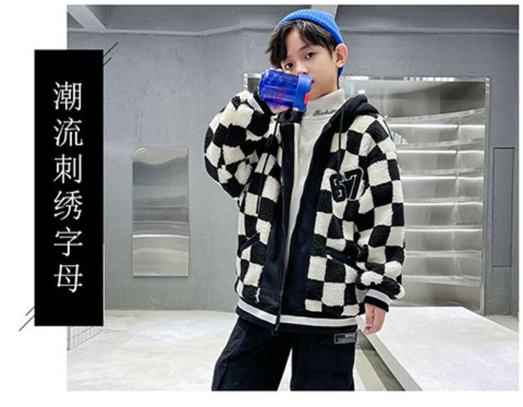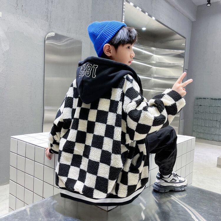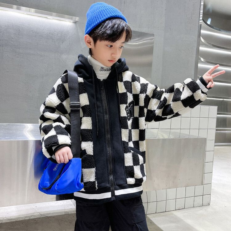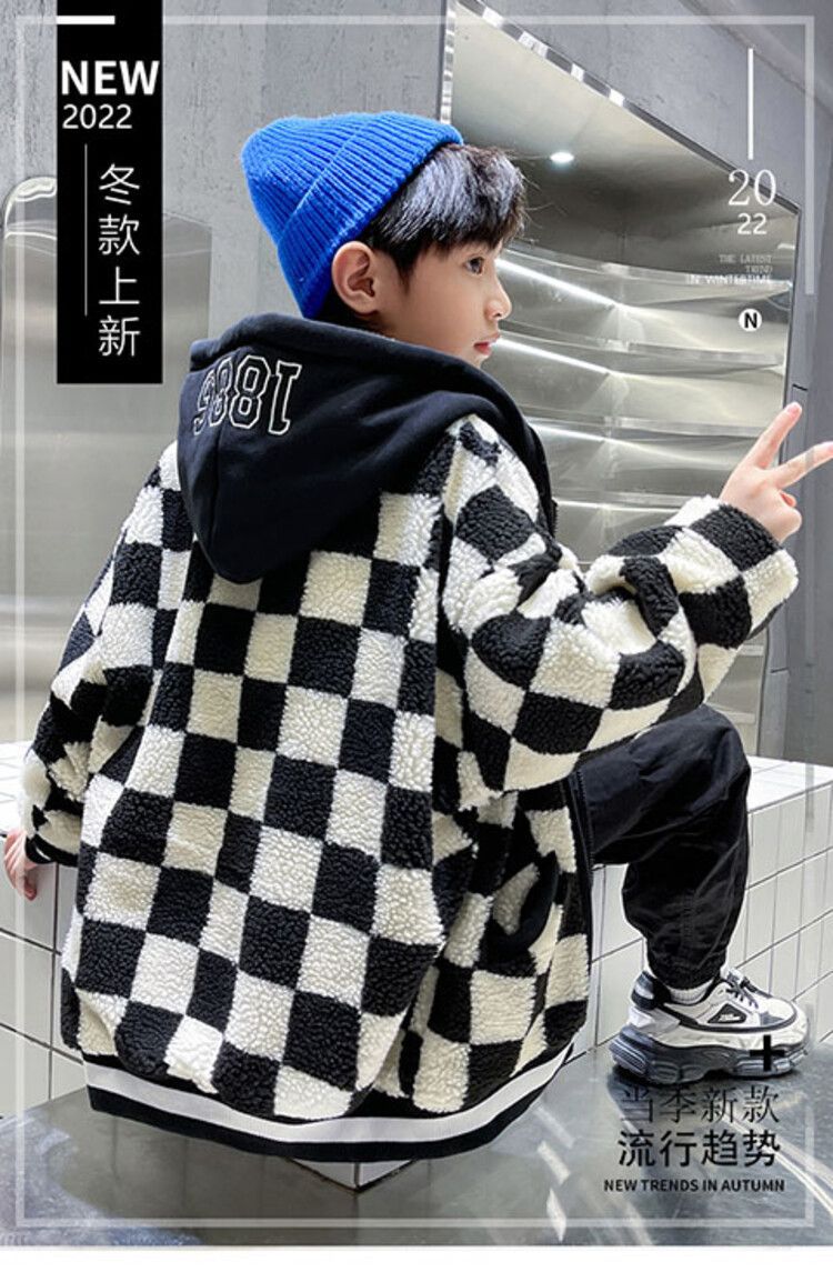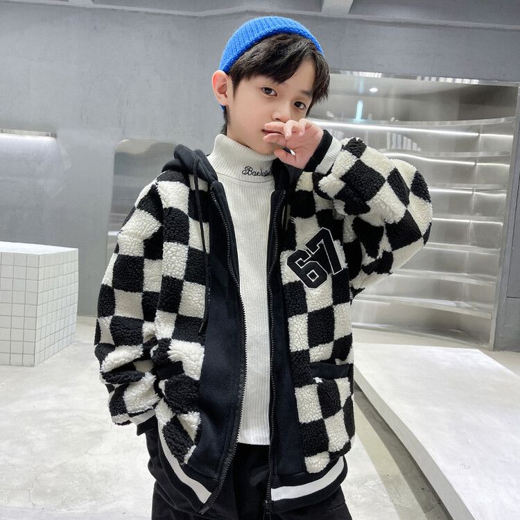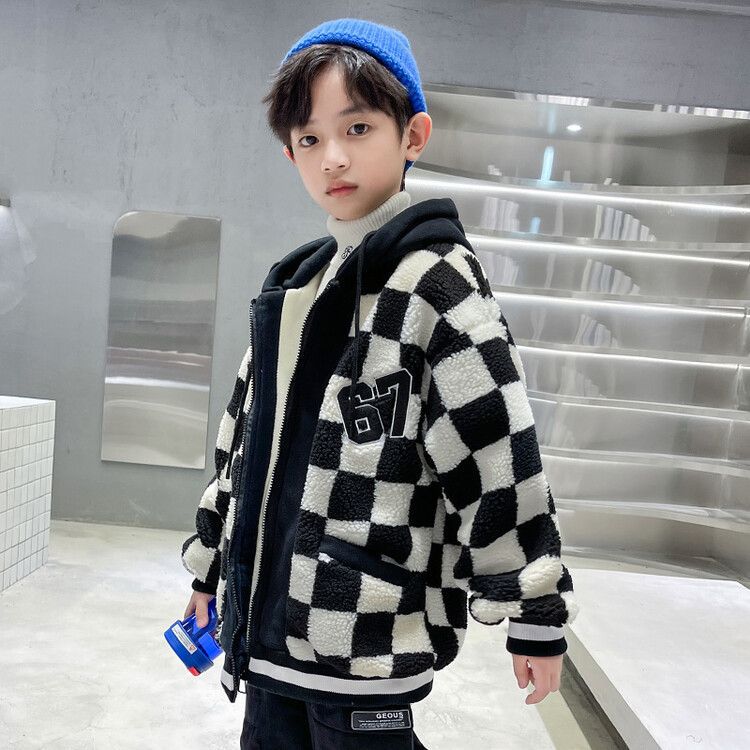 소년의 두꺼운 체석판 양모 스웨터 코트 겨울 어린이 중 · 대형 어린이 두꺼운 중간 길이 한국식 면패딩 재킷 따뜻한스토어 가기
