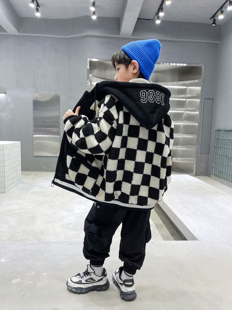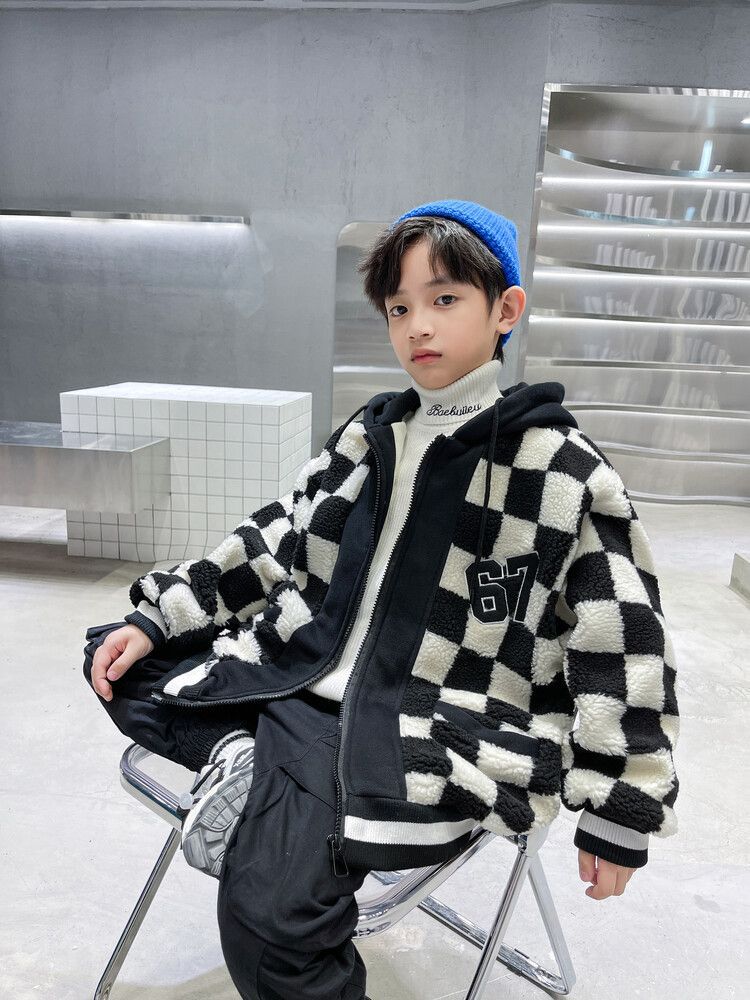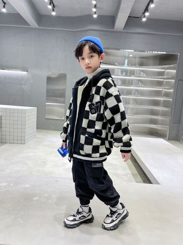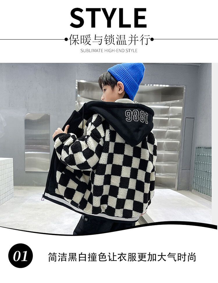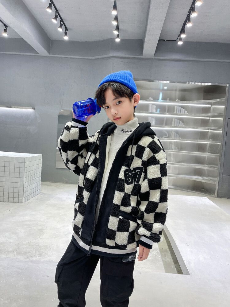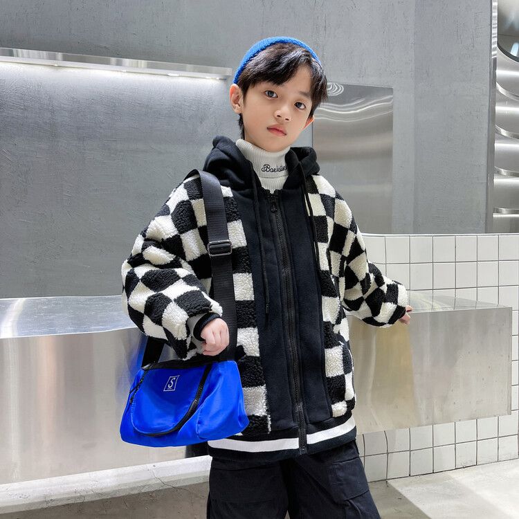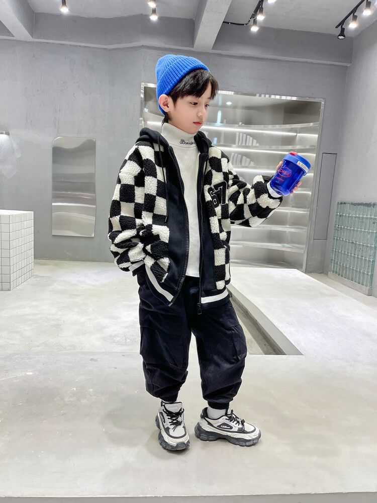 소년의 두꺼운 체석판 양모 스웨터 코트 겨울 어린이 중 · 대형 어린이 두꺼운 중간 길이 한국식 면패딩 재킷 따뜻한스토어 가기