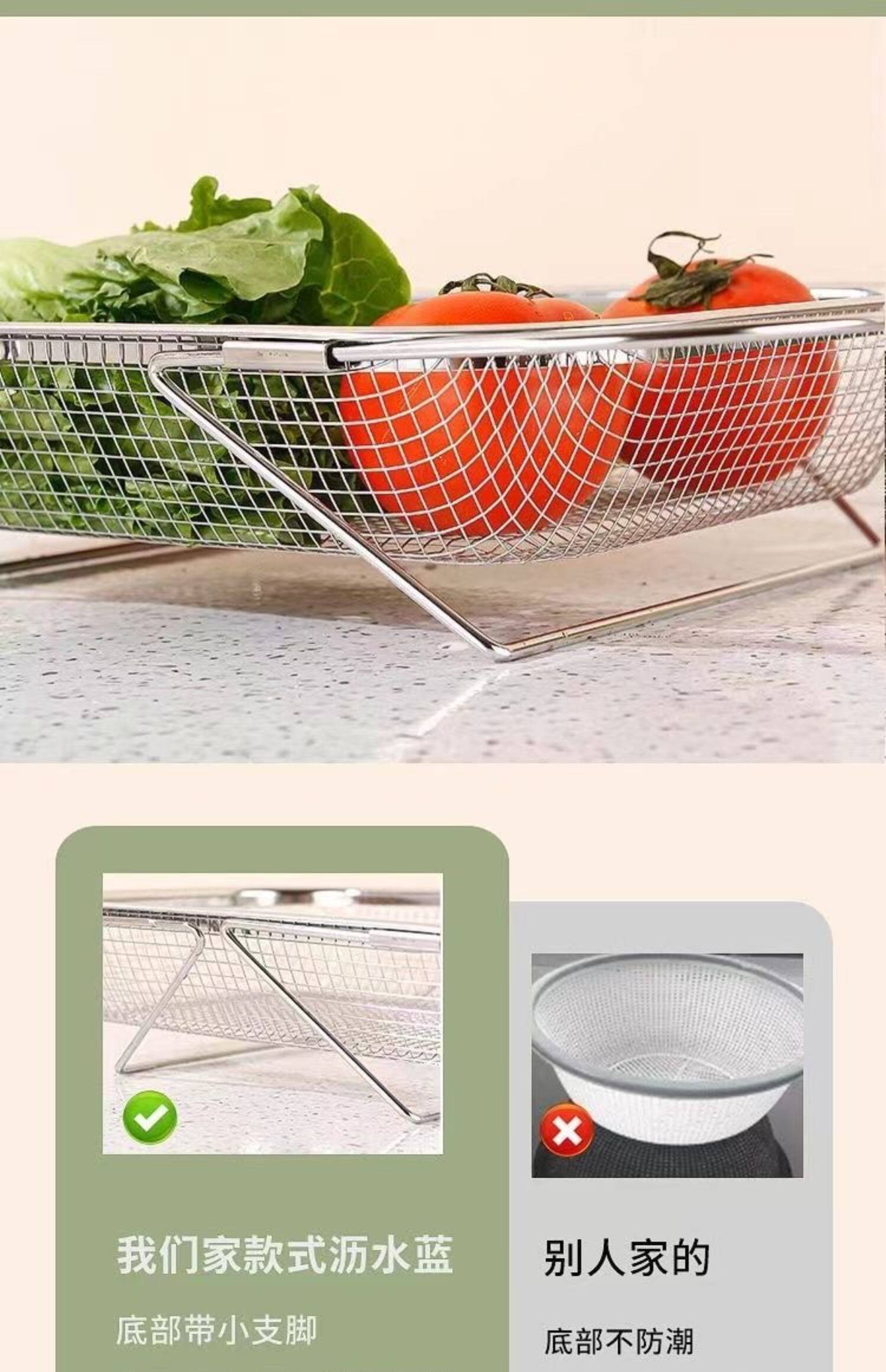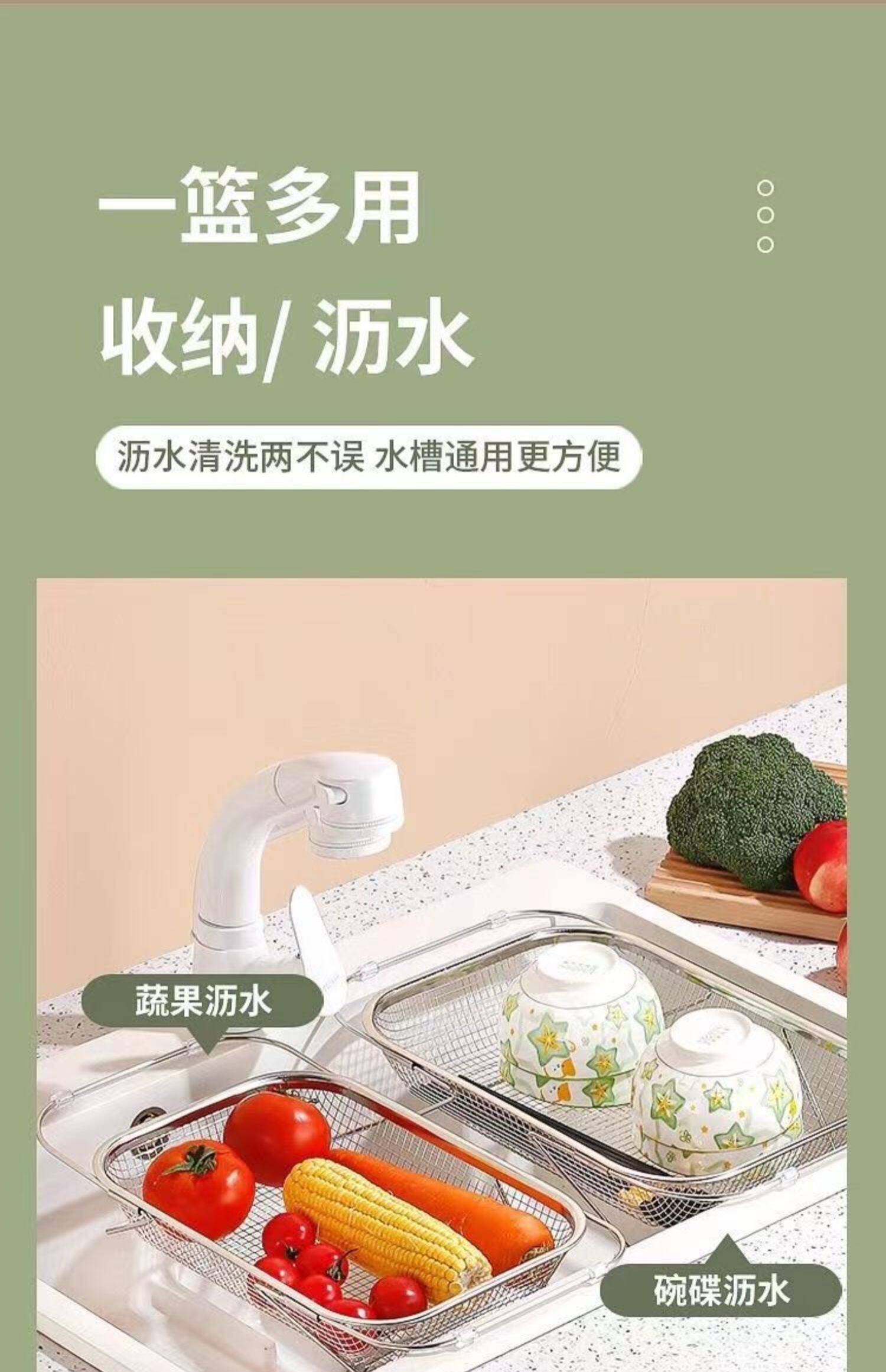 스테인레스 스틸 추출 가능한 배수 바구니 야채 분지 저장 랙 주방 요리 접시 드레인 랙 싱크 랙스토어 가기