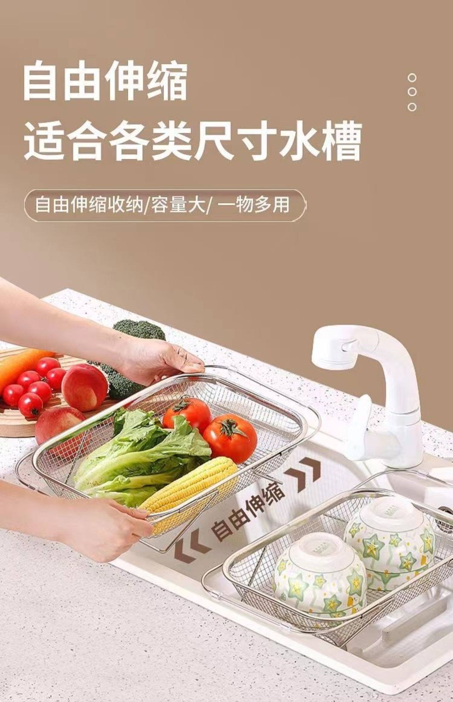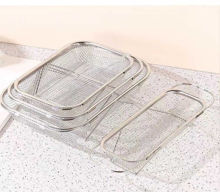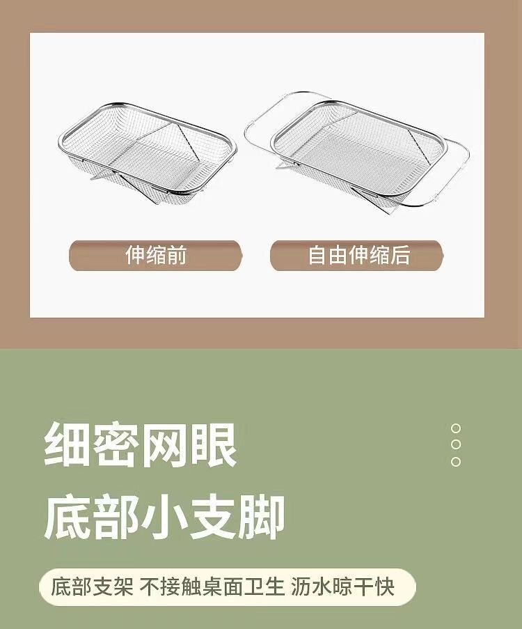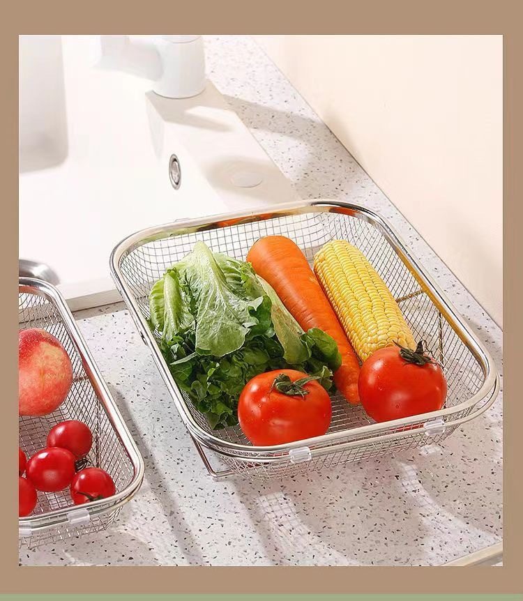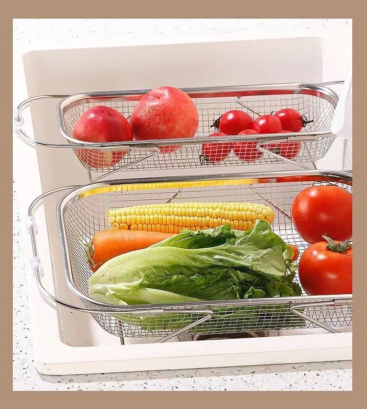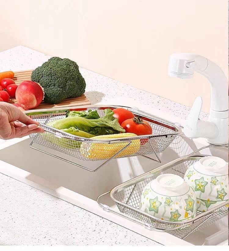 스테인레스 스틸 추출 가능한 배수 바구니 야채 분지 저장 랙 주방 요리 접시 드레인 랙 싱크 랙