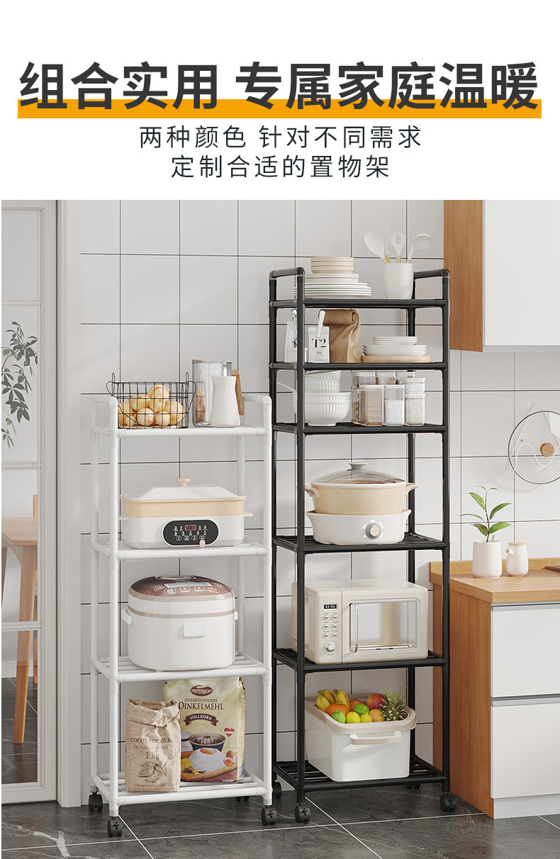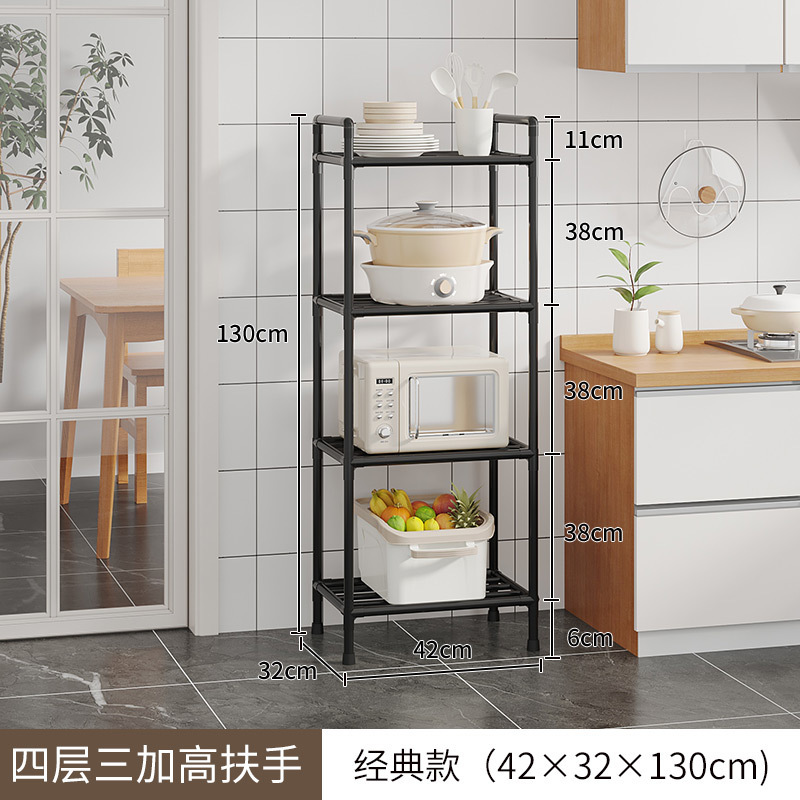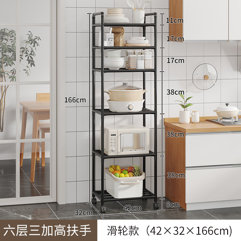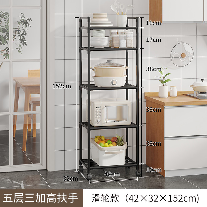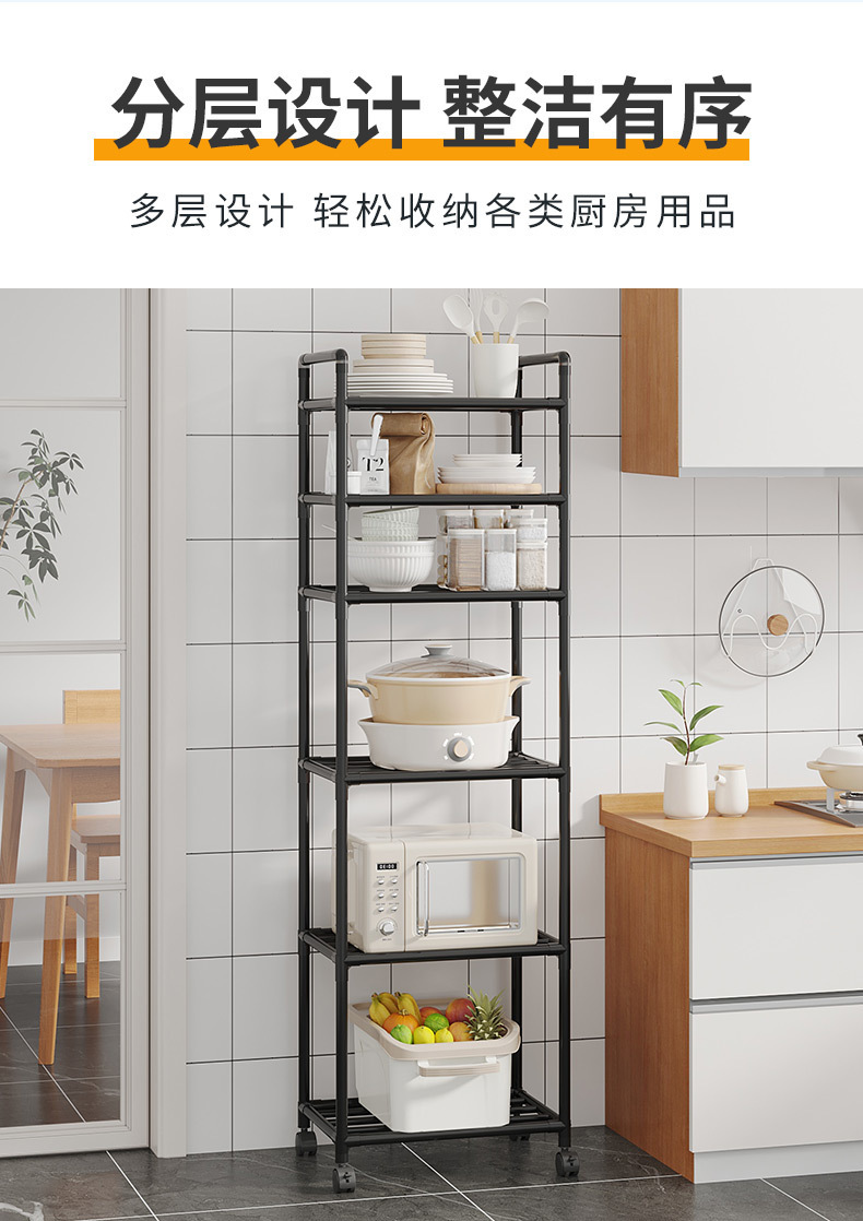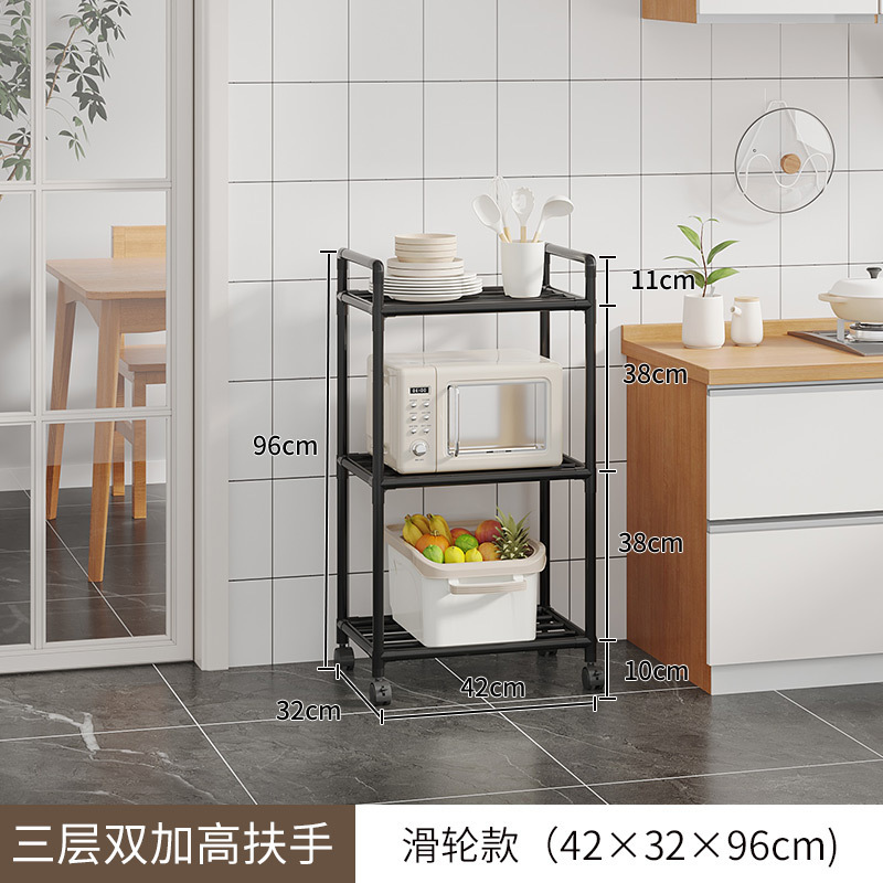 주방 보관 랙 바닥 가정용 다층 냄비 전자 레인지 스토리지 랙 펀치 프리 코너 휠 스토리지 랙