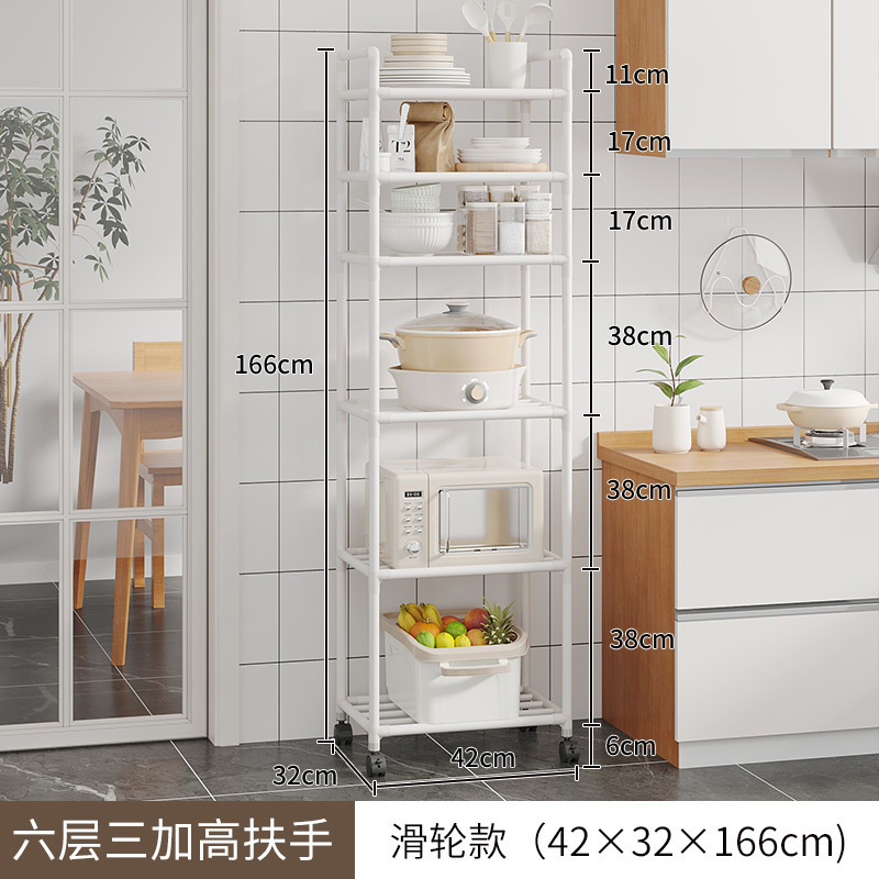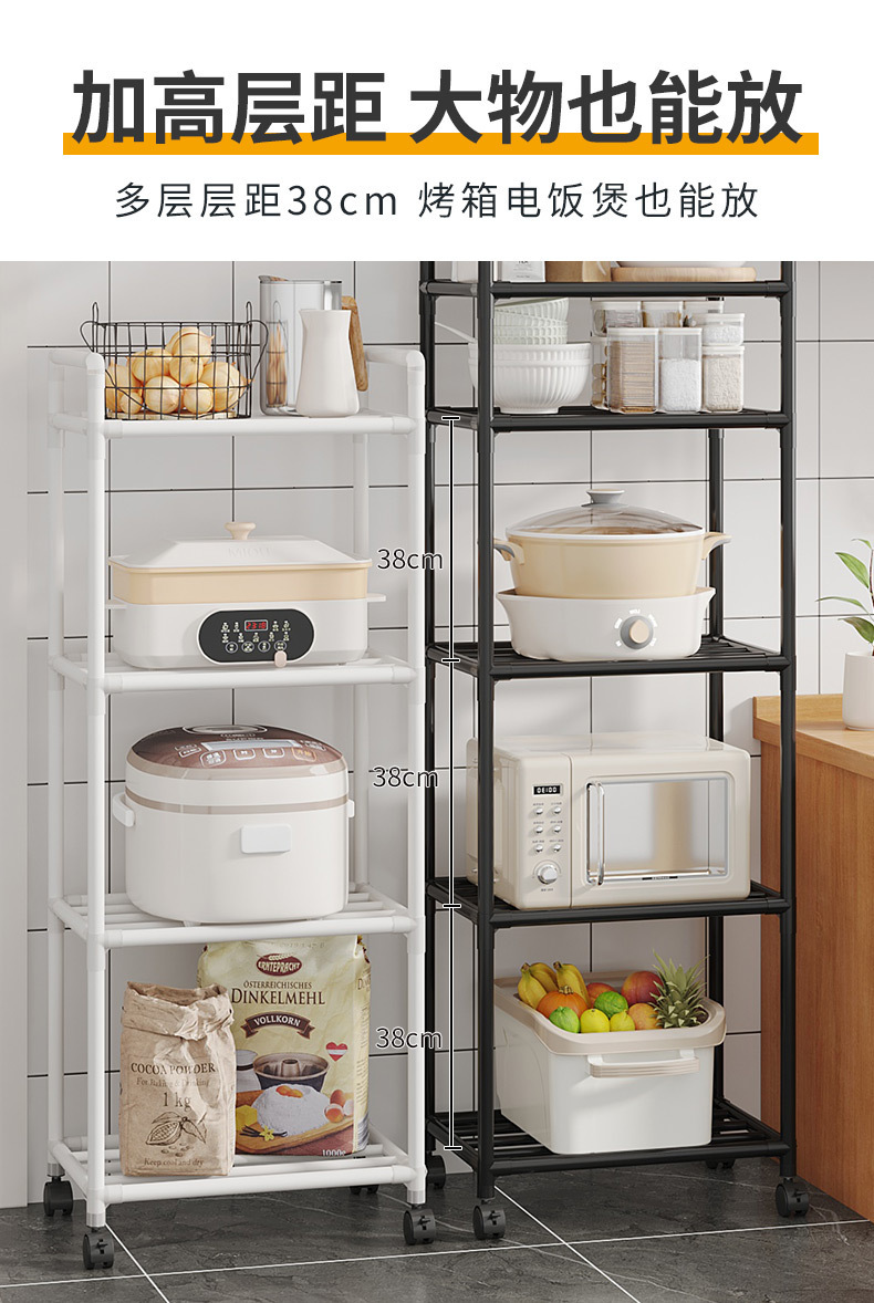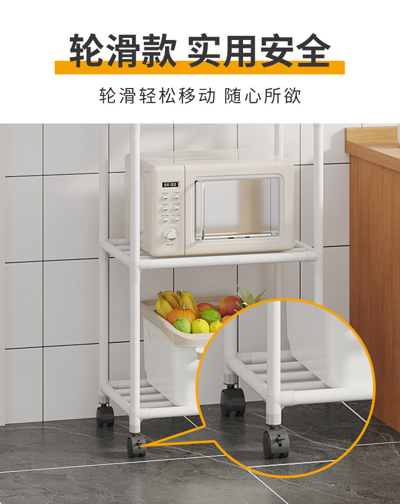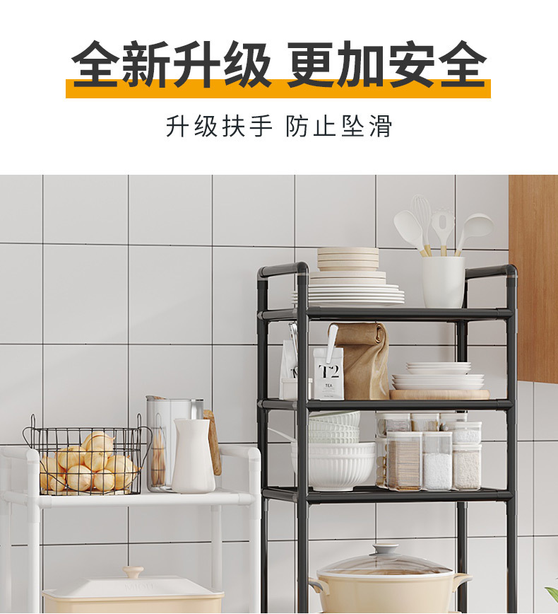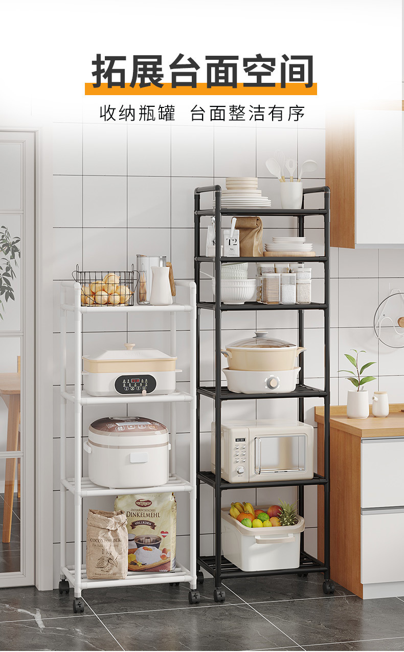 주방 보관 랙 바닥 가정용 다층 냄비 전자 레인지 스토리지 랙 펀치 프리 코너 휠 스토리지 랙