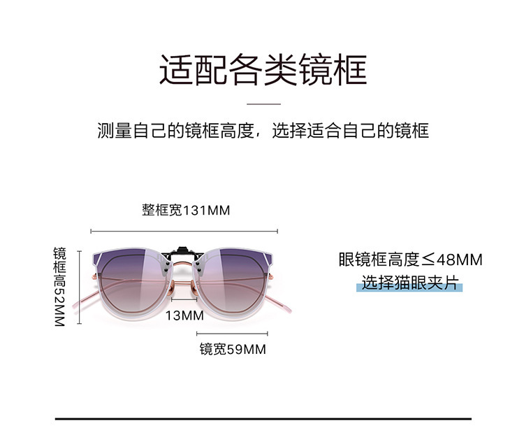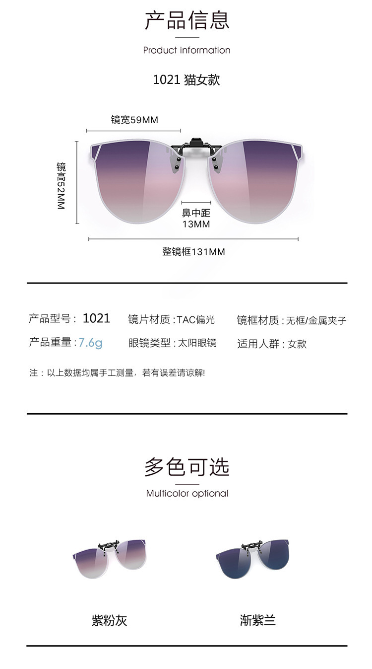 안티-UV 고양이 안구 클립 여성용 경량 편광 선글라스 근시 복고풍 운전 큰 얼굴 슬리밍 선글라스