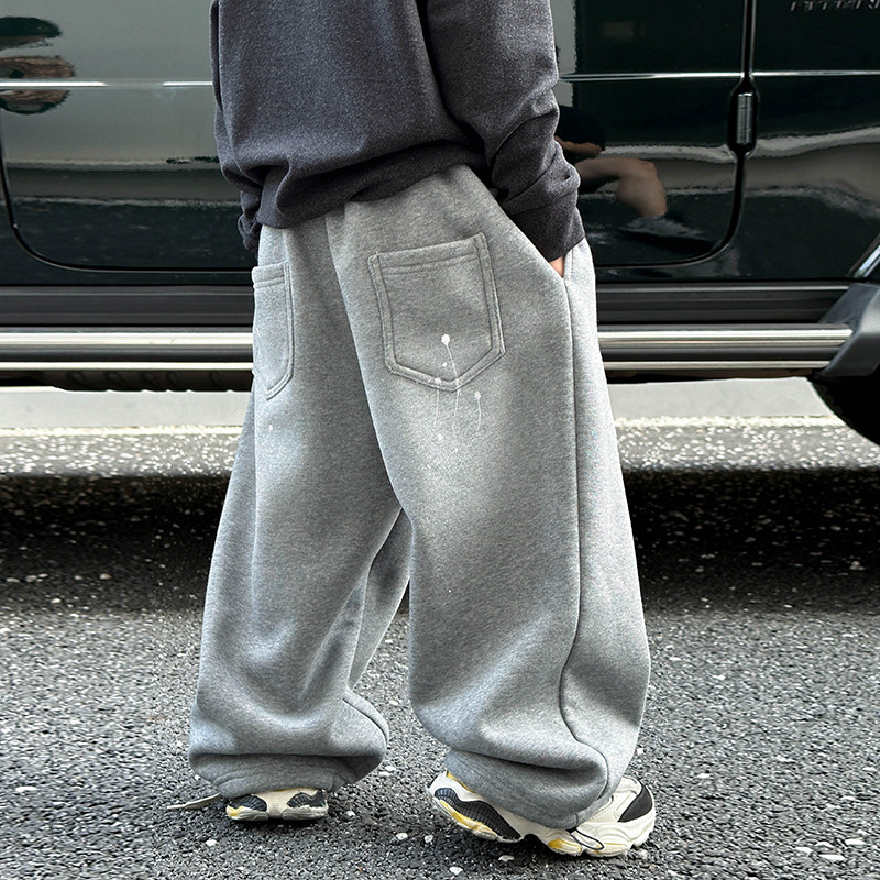 지리 아동복 남아용 기모 스웨트팬츠 2025 겨울 신상 아동 한국 스타일 두꺼운 바지 큰아이 가을 겨울 바지스토어 가기