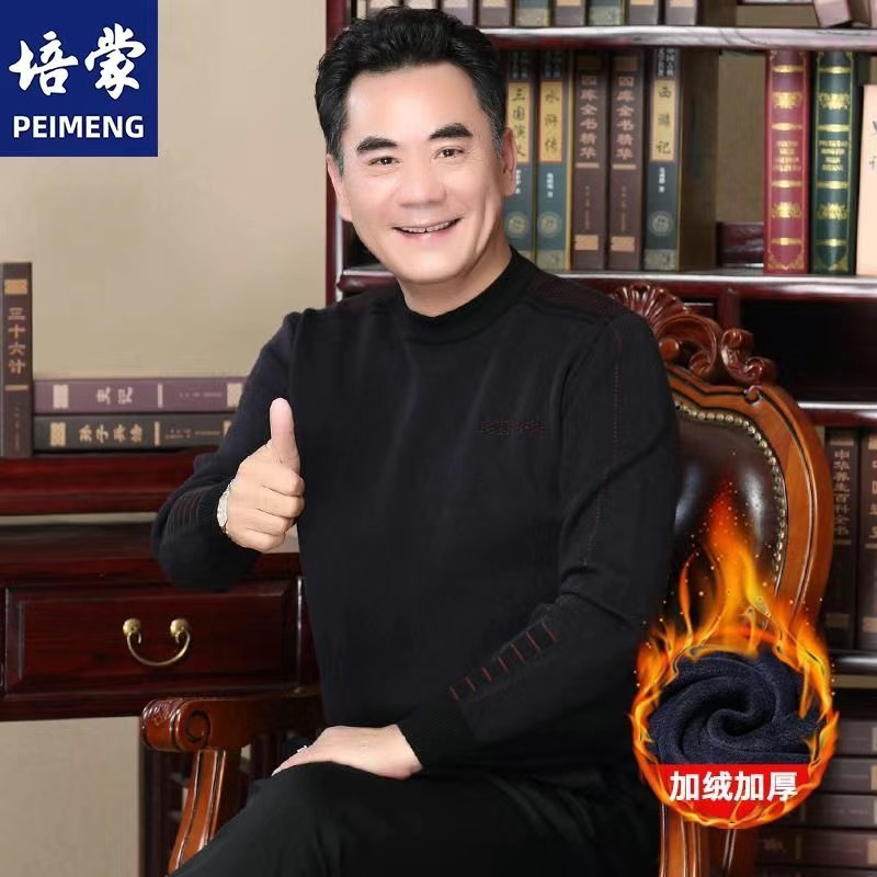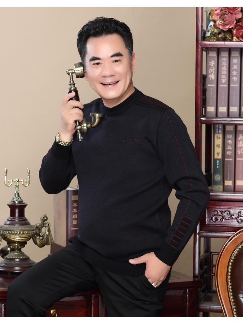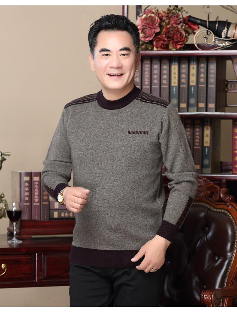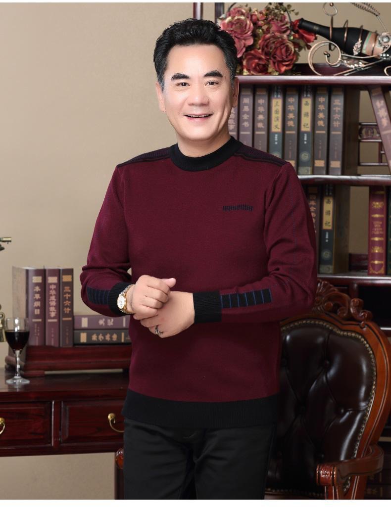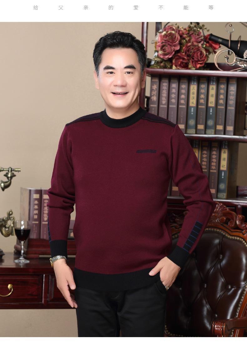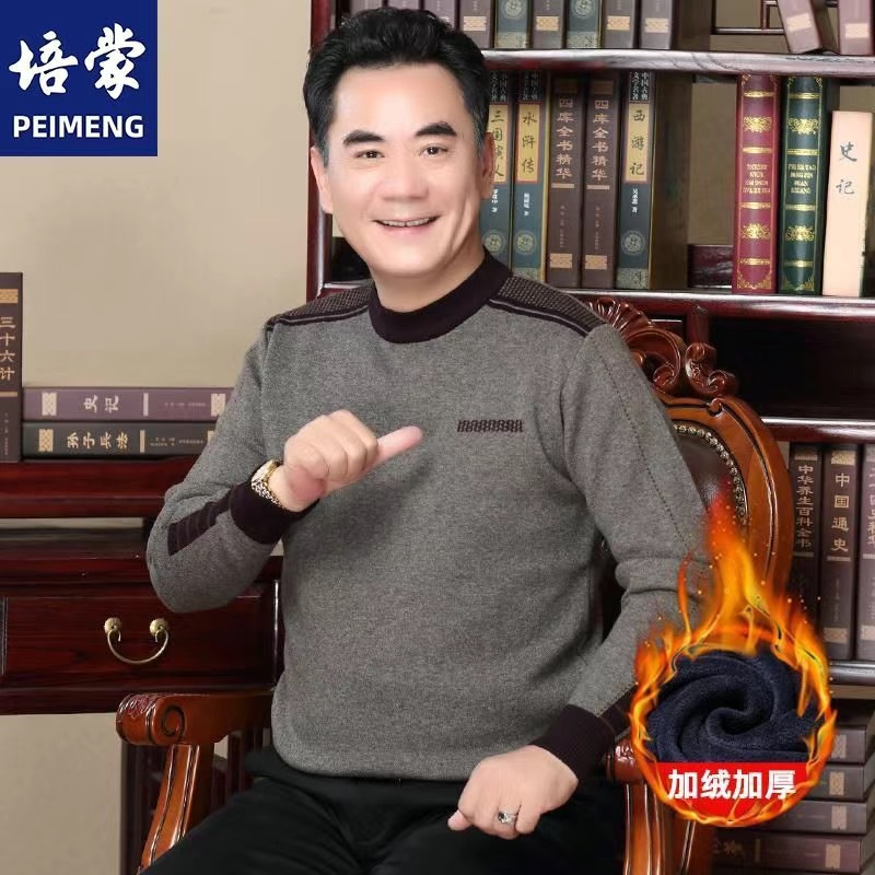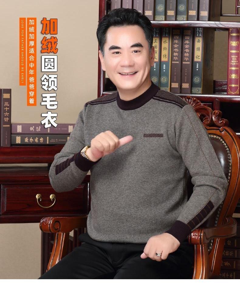 기모 아빠 겨울 스웨터 크루 넥 두꺼운 남성 니트웨어 중년 및 노인 따뜻한 탑 티셔츠 남성용 스웨터