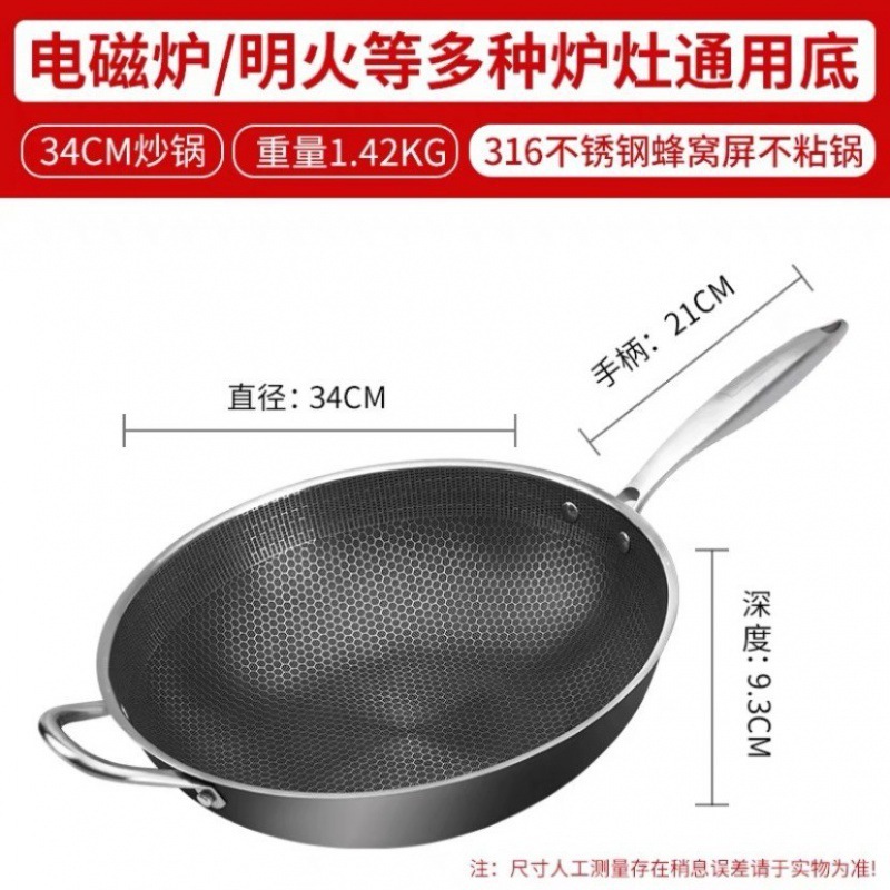 팬웍 316 스테인레스 스틸 비 스틱 팬 코팅되지 않은 가정용 냄비 플랫 바닥 가스 일반 제조업체 도매스토어 가기