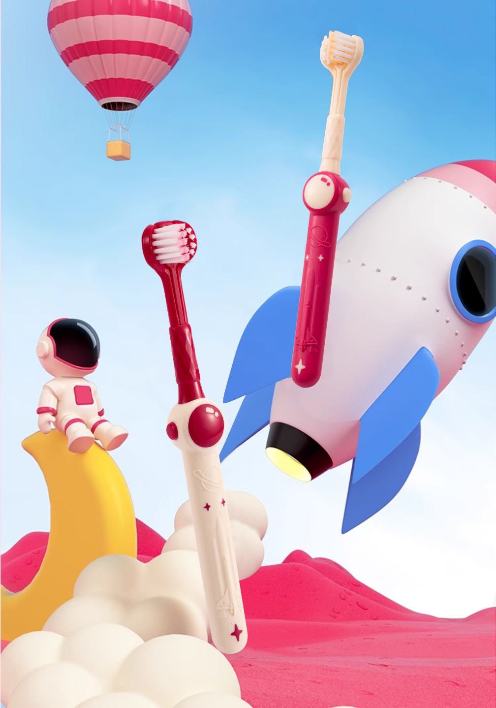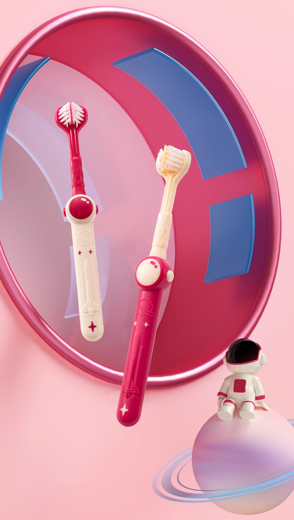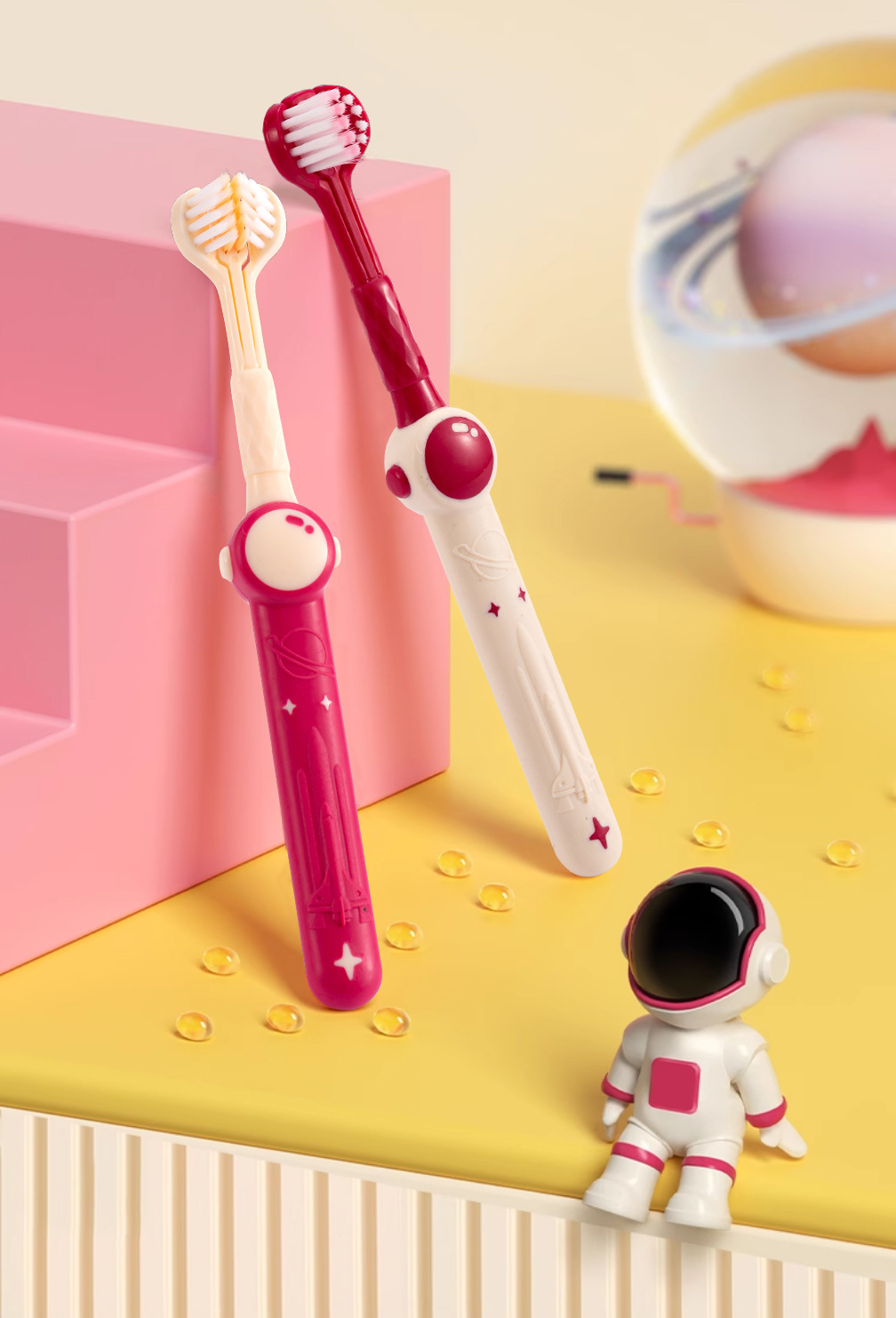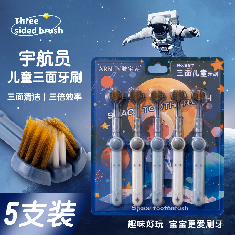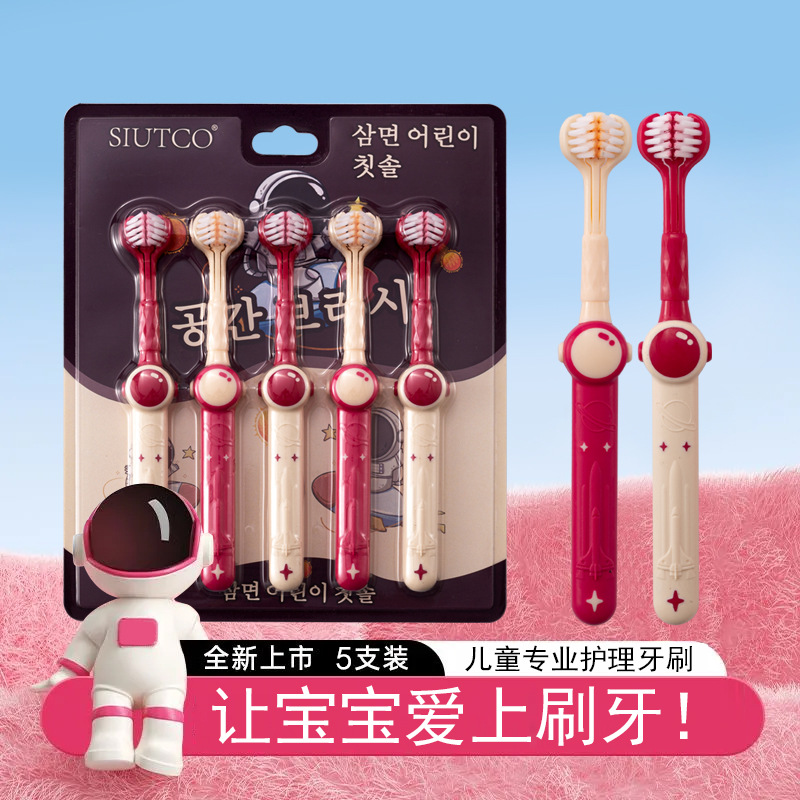 Shan Mu Ping 공간 어린이 3 면 칫솔 부드러운 헤어 가정용 교정 칫솔 도매 3-12 세 아기스토어 가기