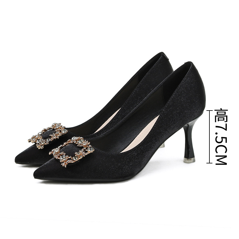 775-9 버건디 하이힐 여성 발이 피곤하지 않은 섹시한 스웨이드 뾰족한 힐 웨딩 슈즈 스퀘어 버클 라인 스톤 슈즈스토어 가기