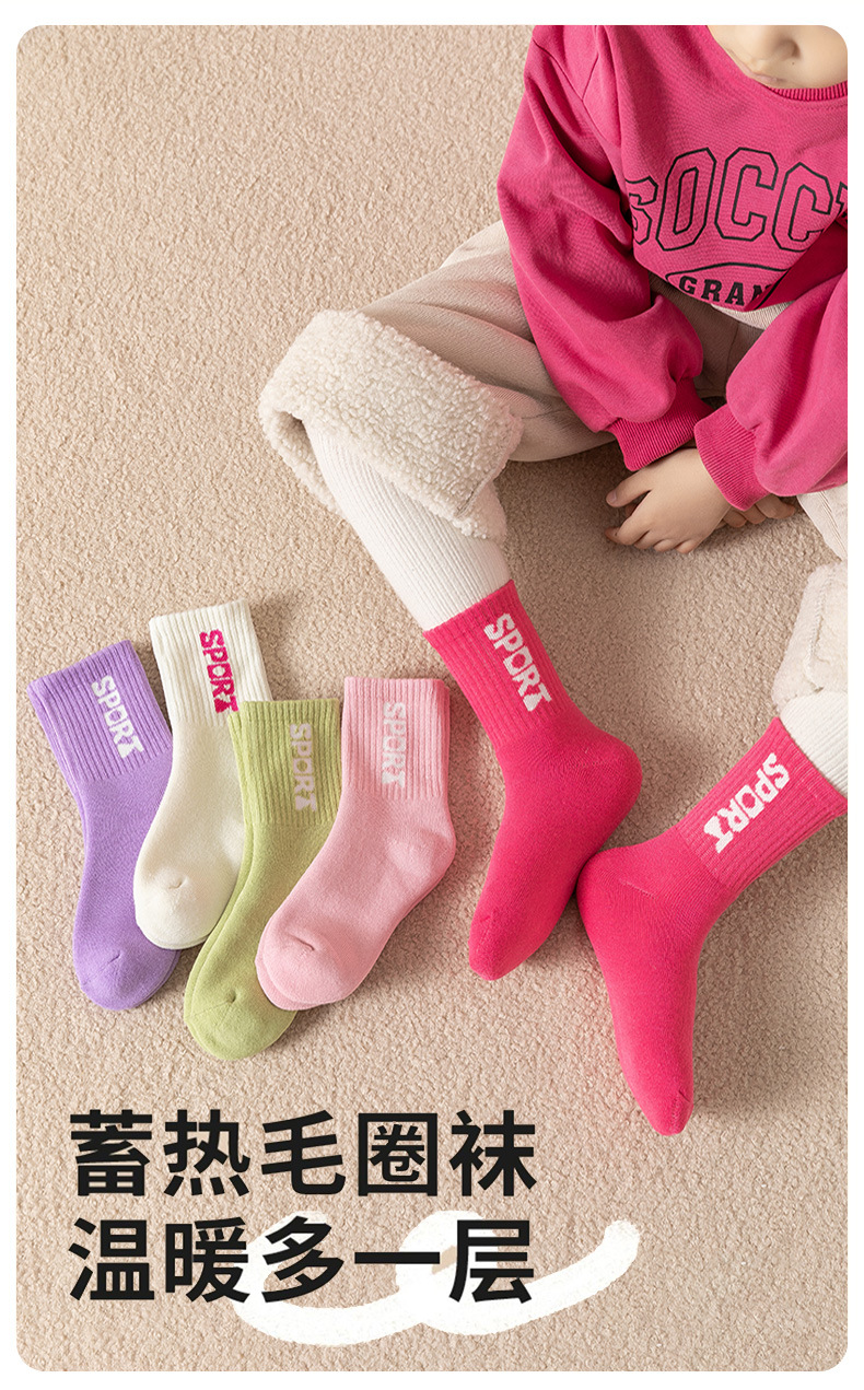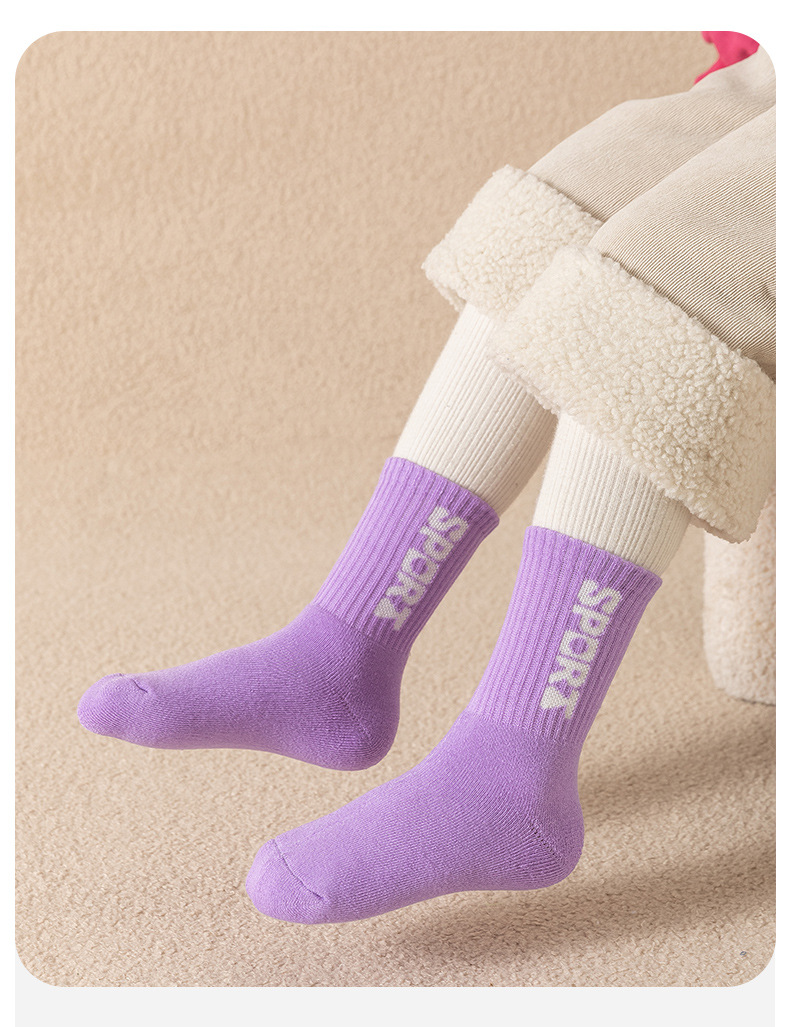 소녀 양말 가을과 겨울 어린이 테리 양말은 두꺼운 따뜻한 아기 양말 글자 캔디 컬러 스포츠 미드 튜브 스타킹