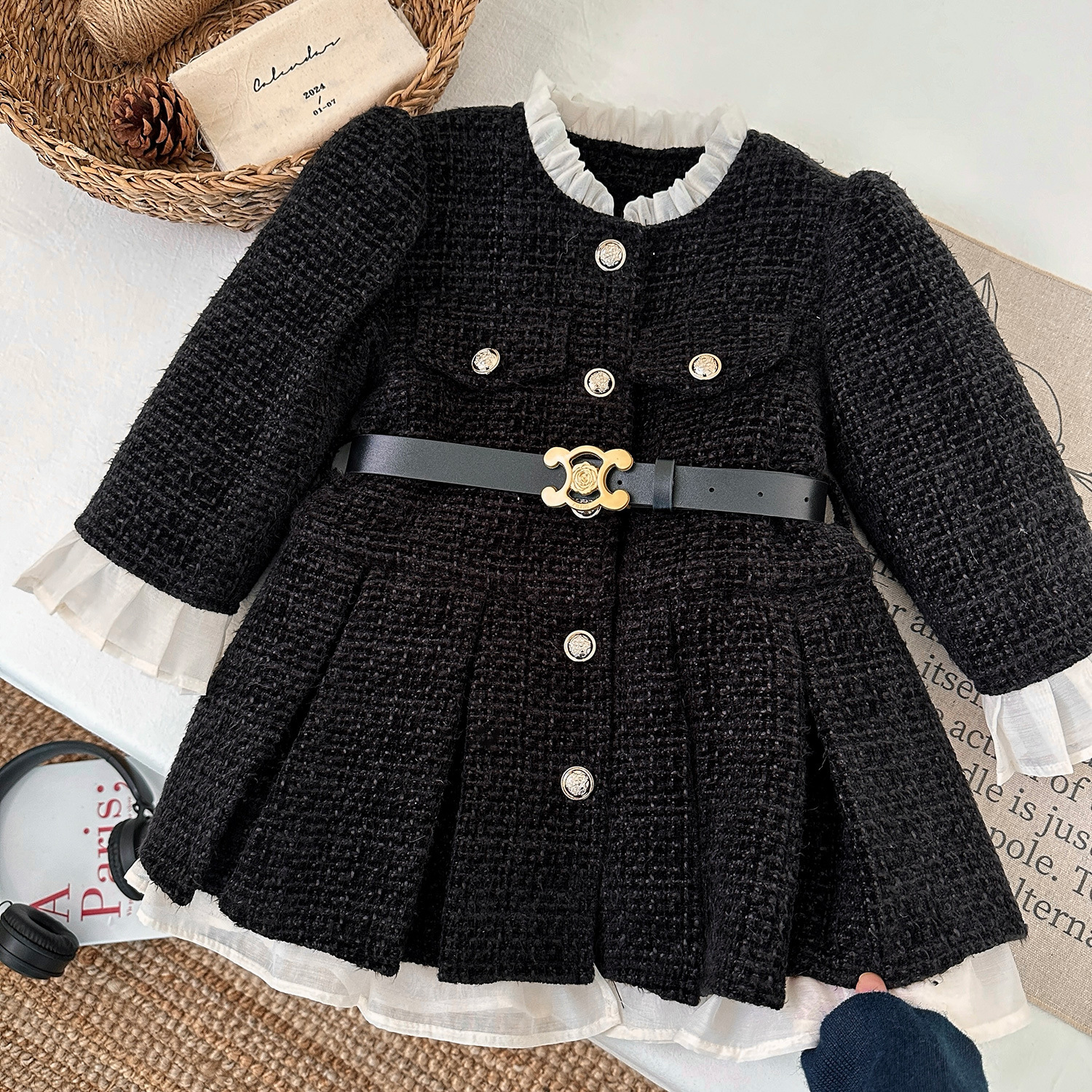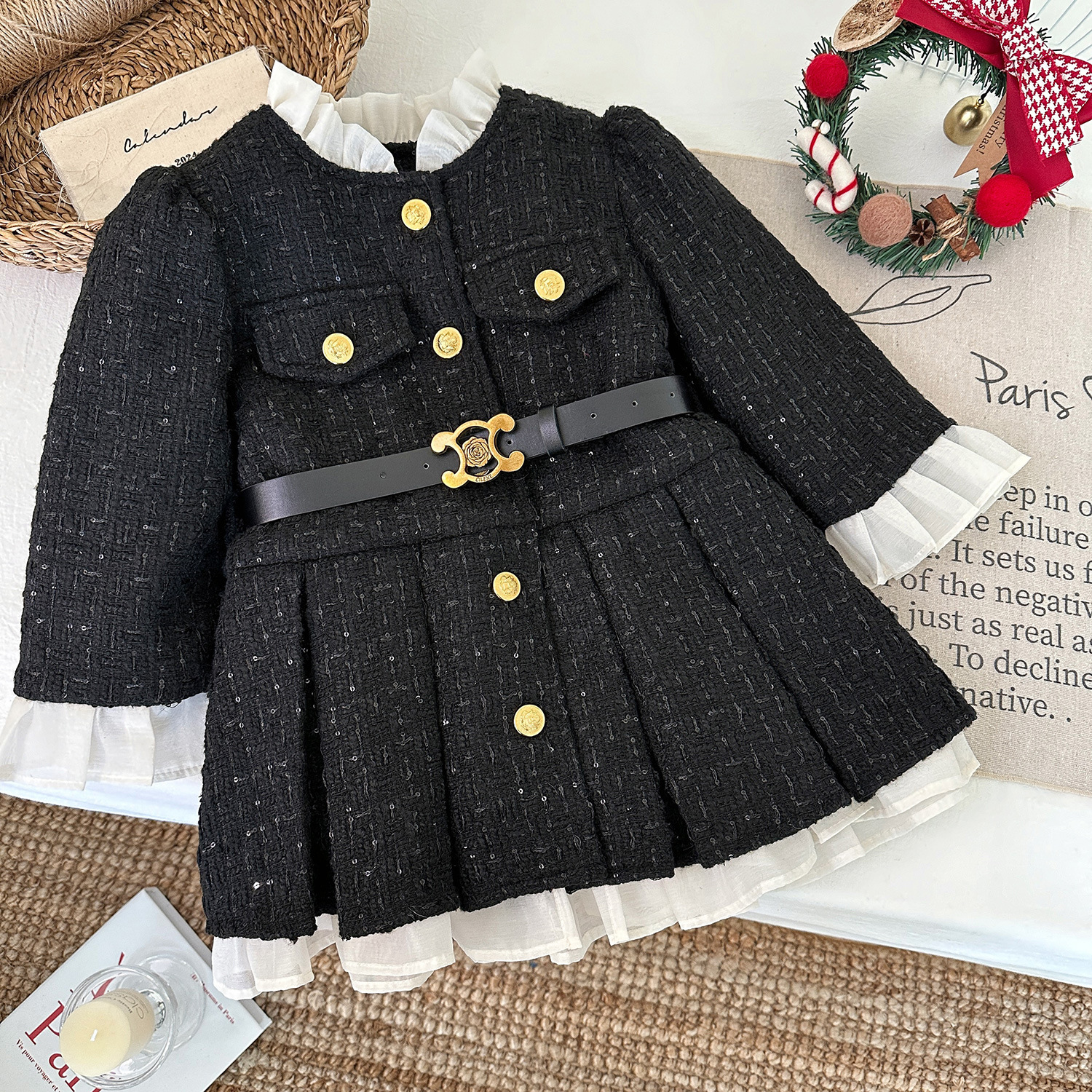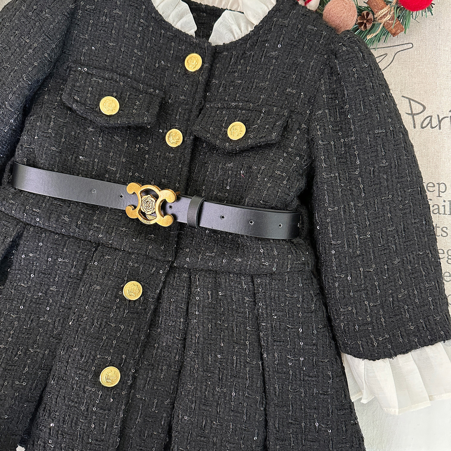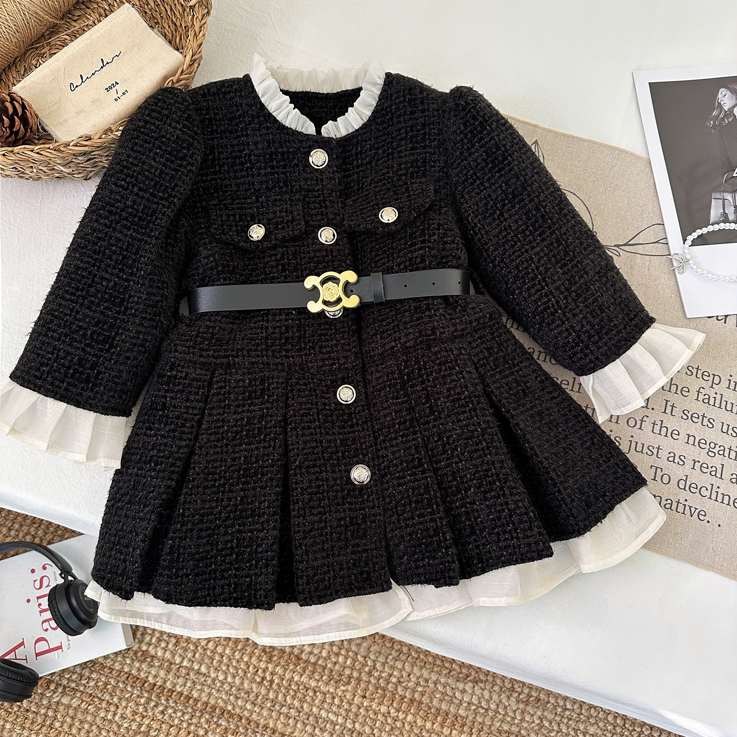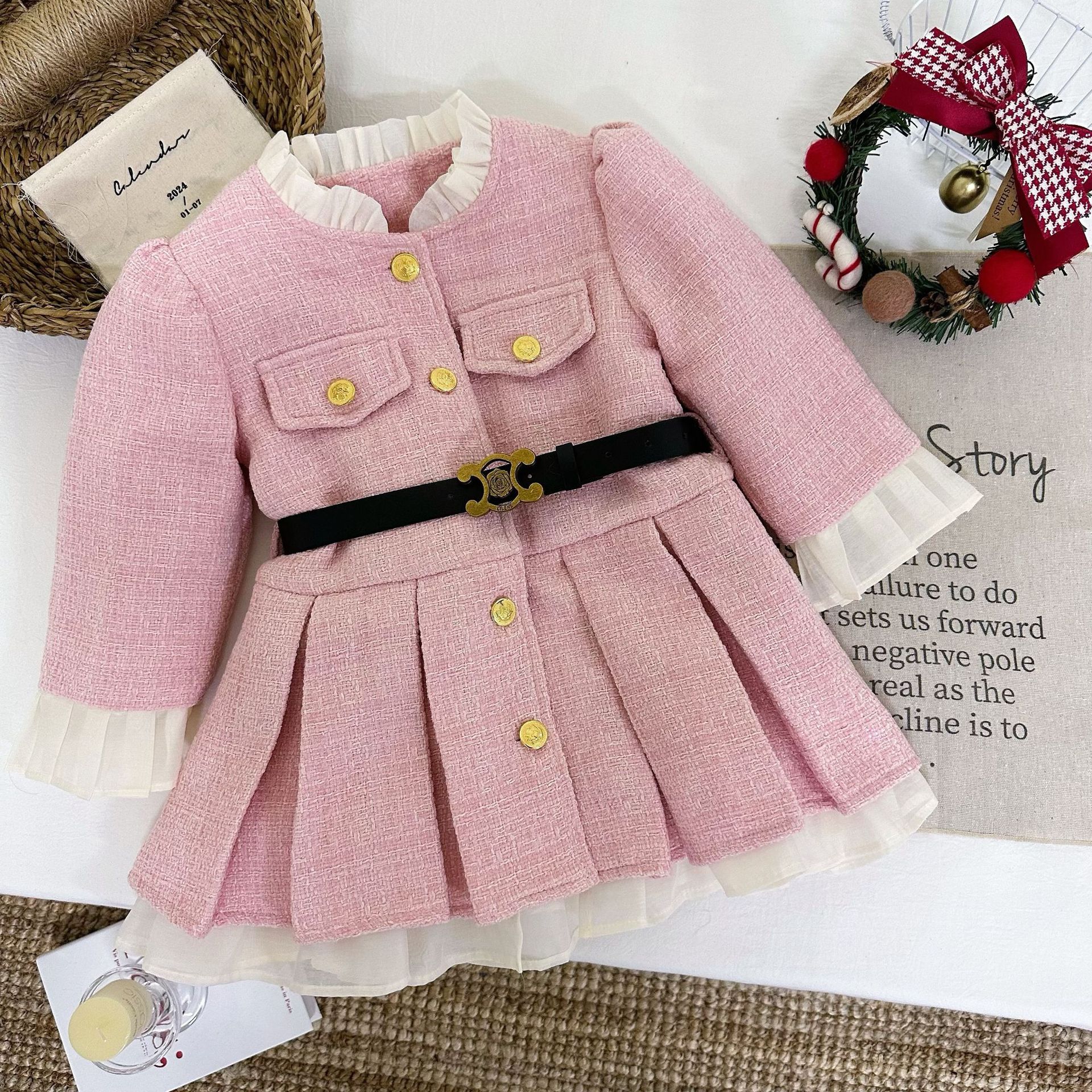2024 겨울 새 한국 여자 샤넬 스타일 프랑스 슬리밍 긴 소매 원피스 아기 면 스커트 68573
