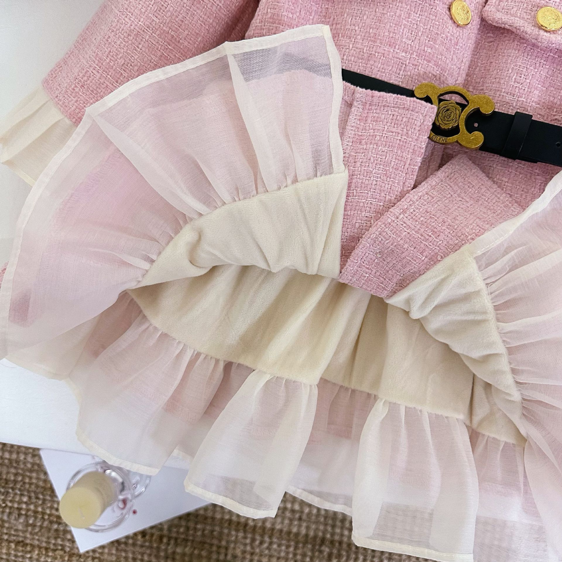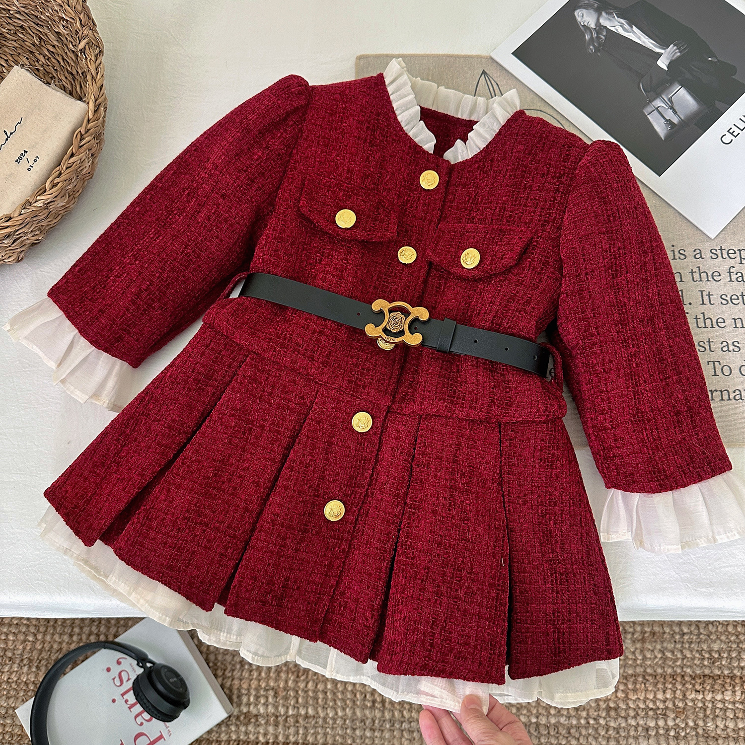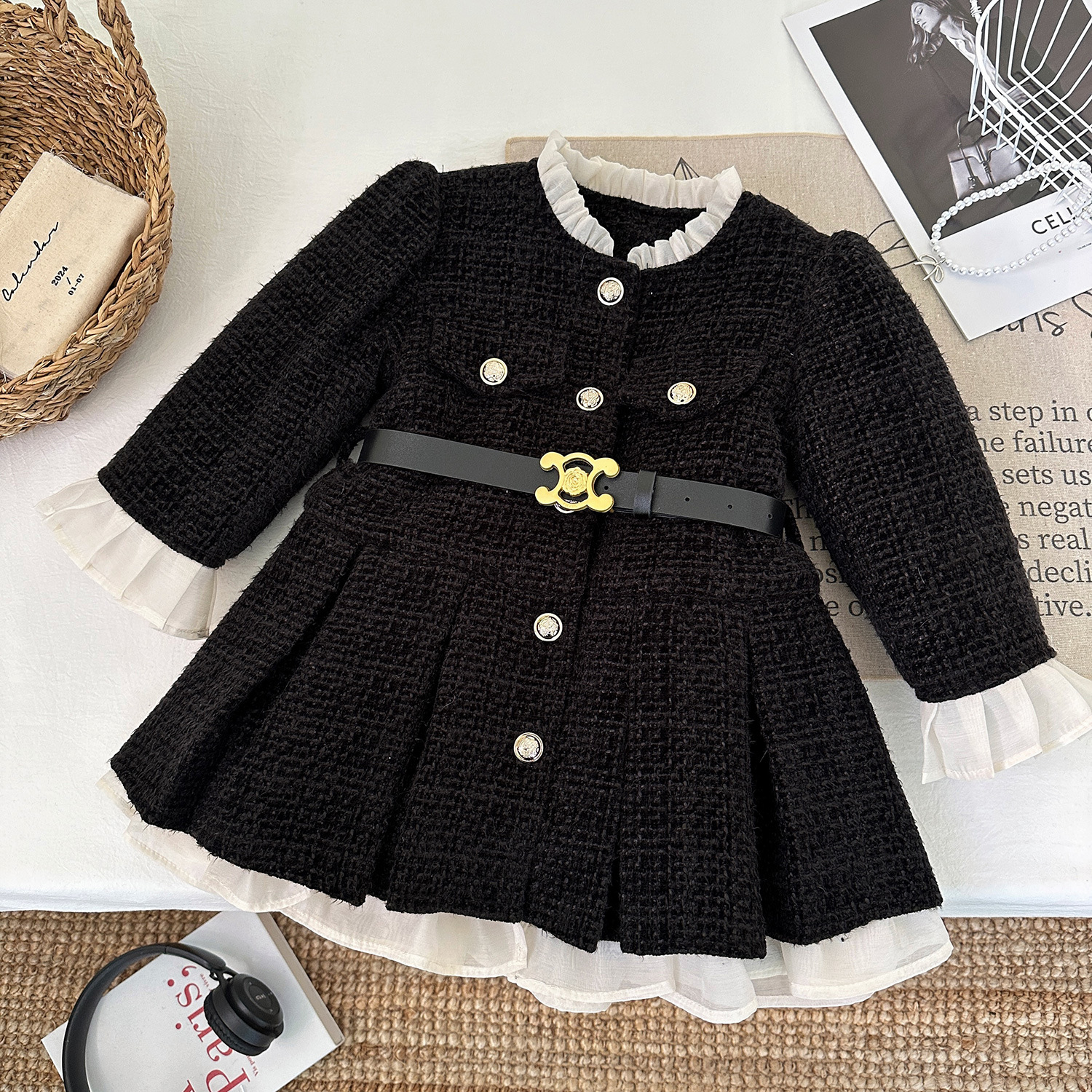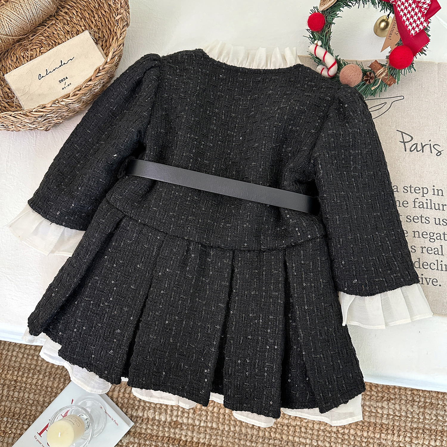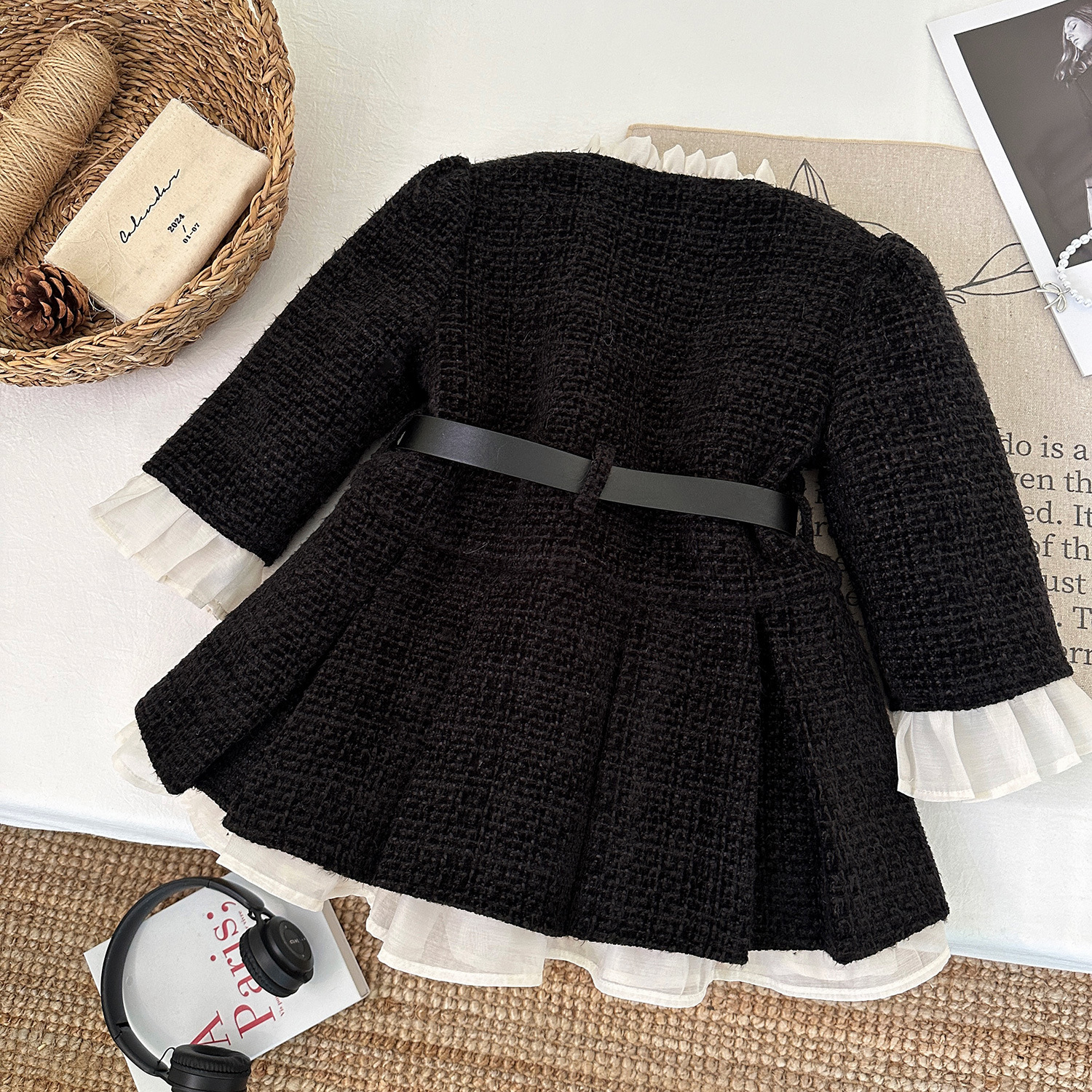 2024 겨울 새 한국 여자 샤넬 스타일 프랑스 슬리밍 긴 소매 원피스 아기 면 스커트 68573