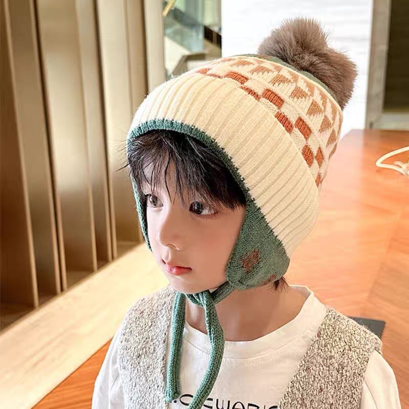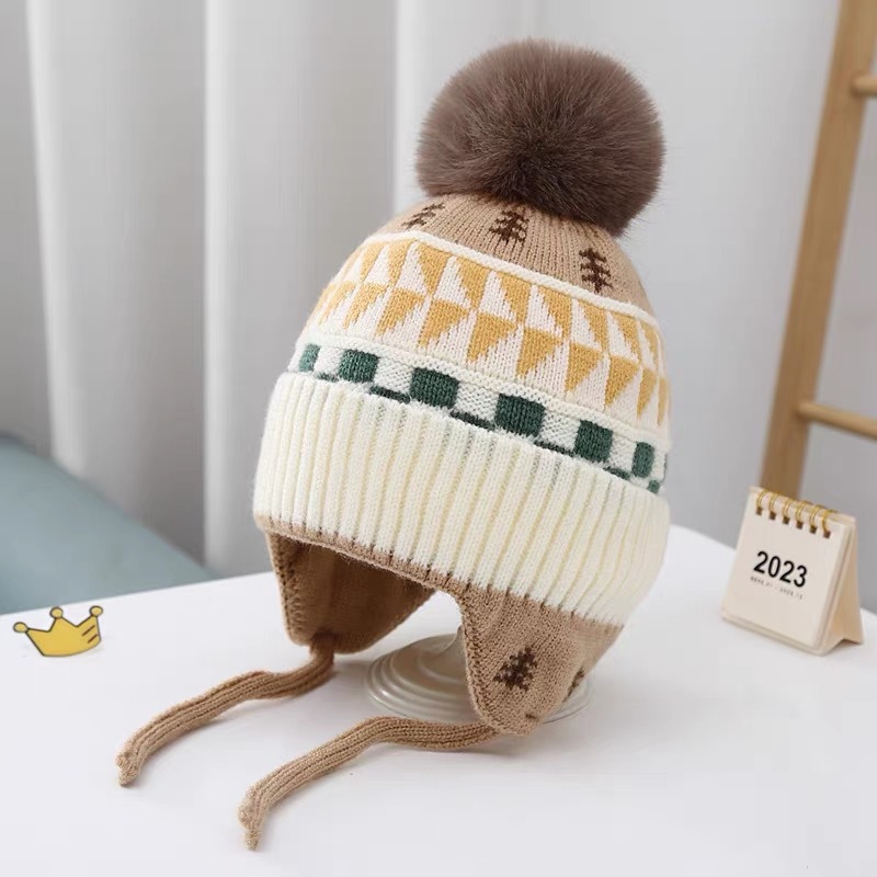 아기 모자 귀 보호 모자 가을, 겨울 새로운 귀여운 모피 공 모자 소녀와 소년을위한 두꺼운 어린이 따뜻한 모자 유행스토어 가기