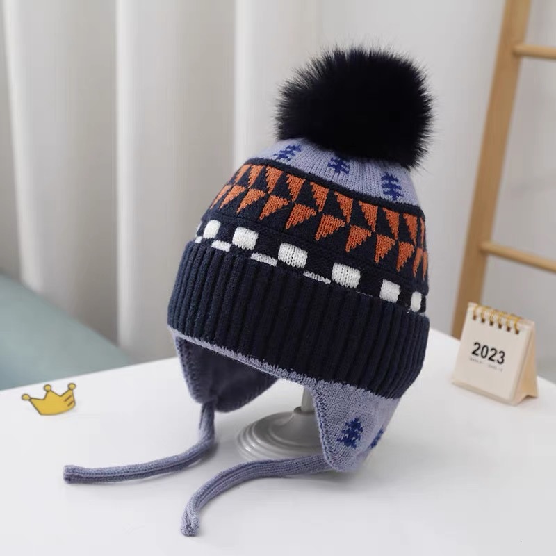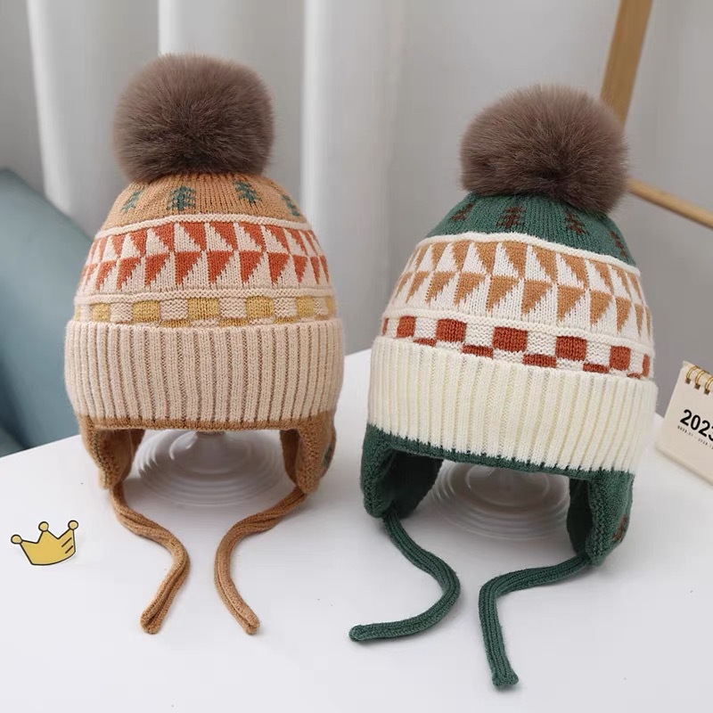 아기 모자 귀 보호 모자 가을, 겨울 새로운 귀여운 모피 공 모자 소녀와 소년을위한 두꺼운 어린이 따뜻한 모자 유행
